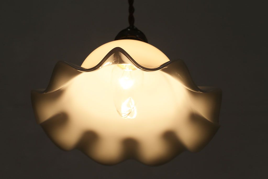 ヴィンテージ照明 イギリスビンテージ 可愛らしいフリルシェードのペンダントライト(ランプシェード、天井照明)(R-046338)