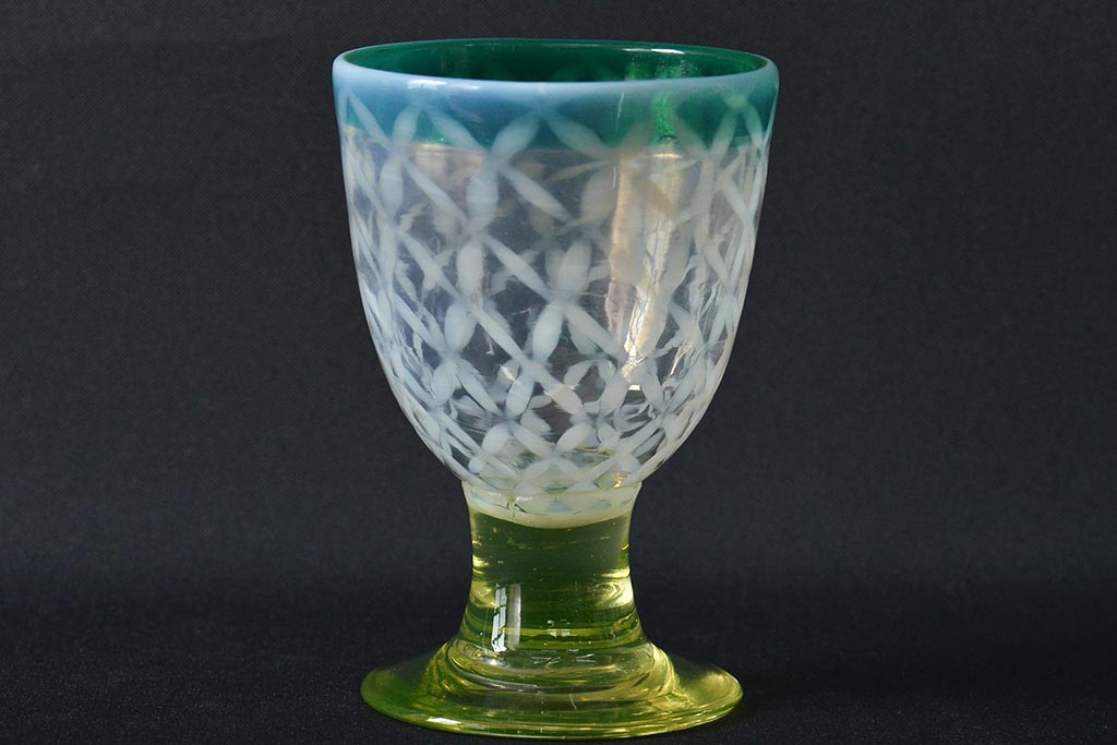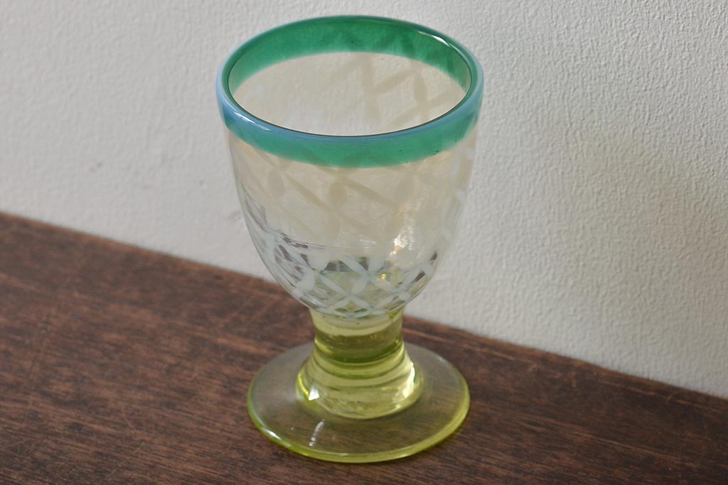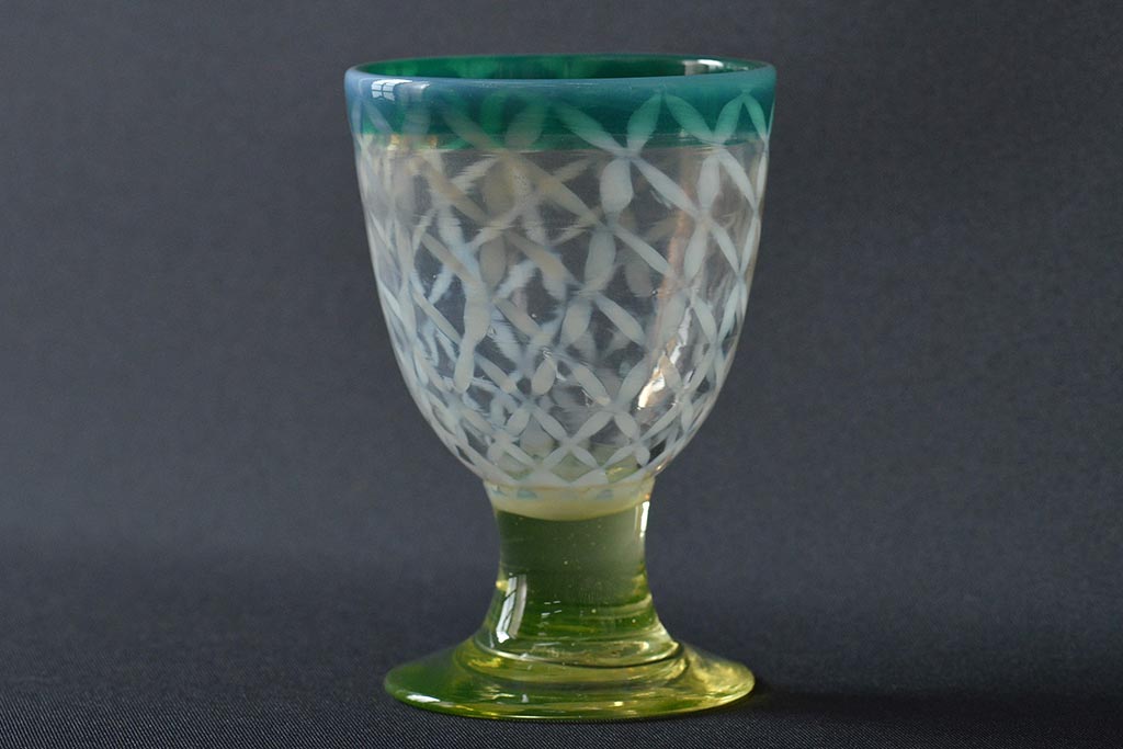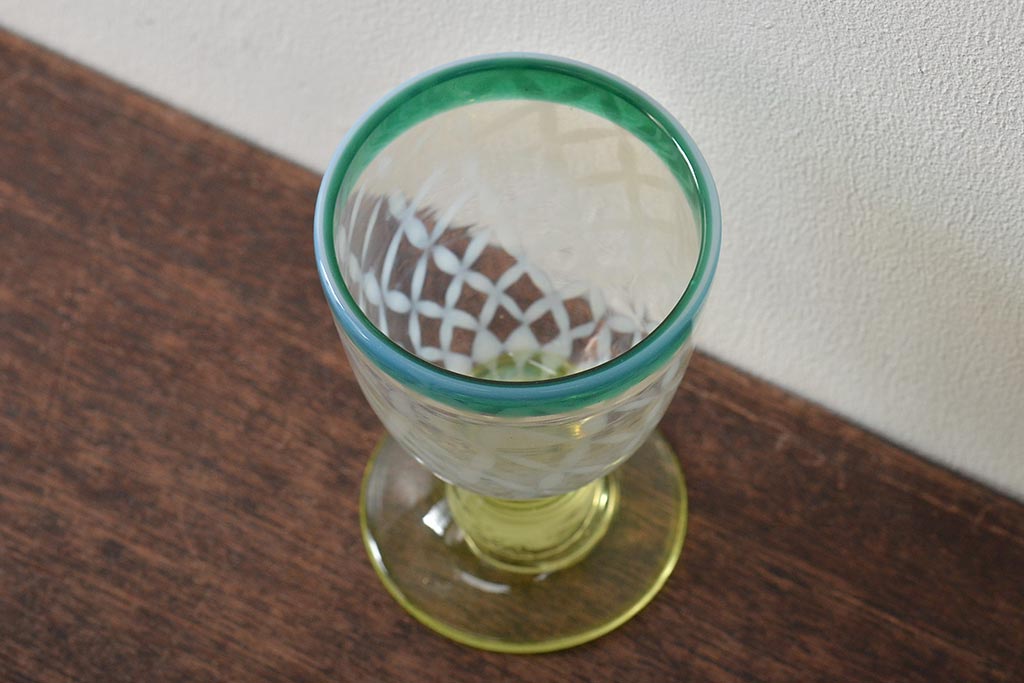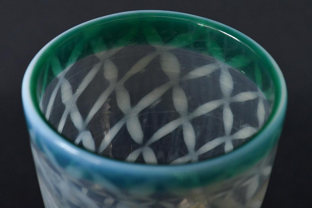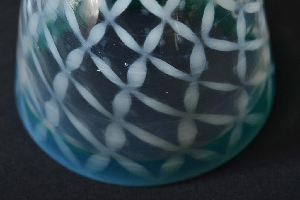 明治〜大正 青縁暈し七宝繋ぎ文ウラン足 氷コップ(R-046104)