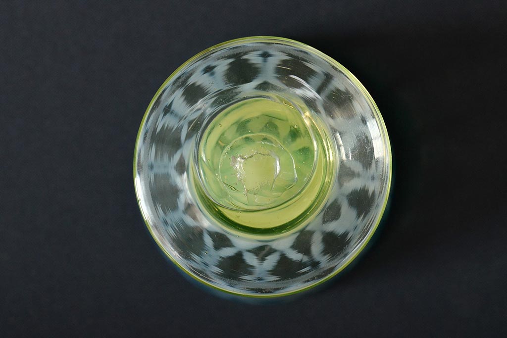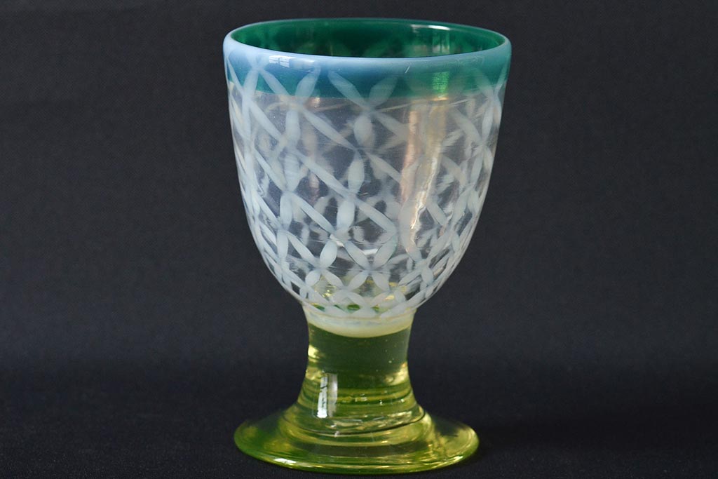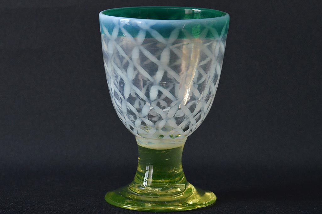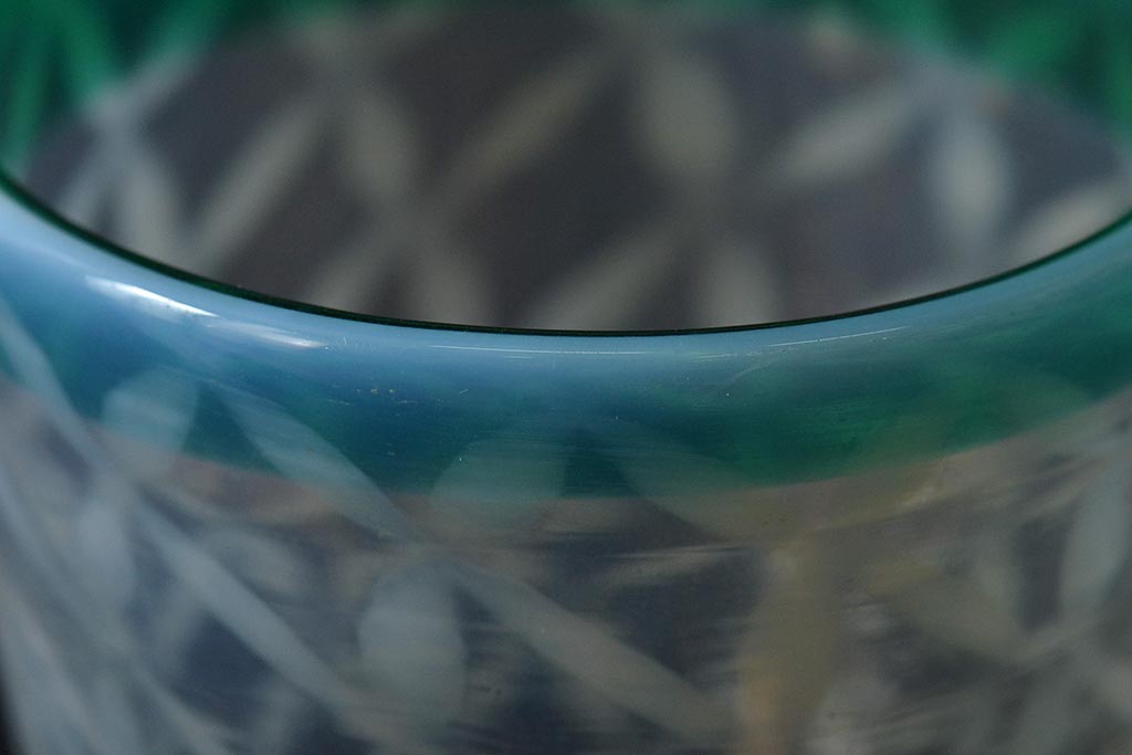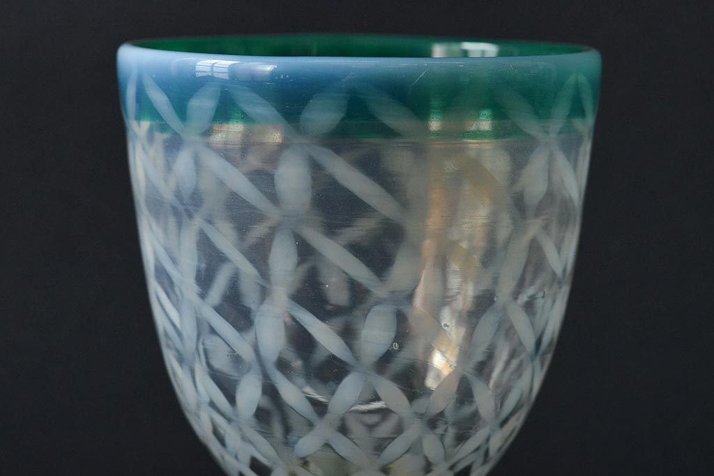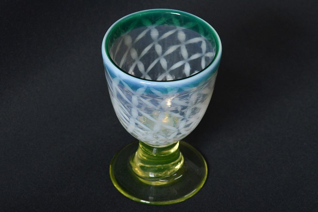 明治〜大正 青縁暈し七宝繋ぎ文ウラン足 氷コップ(R-046104)
