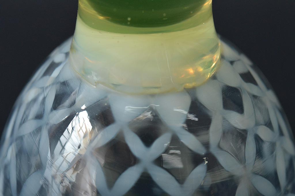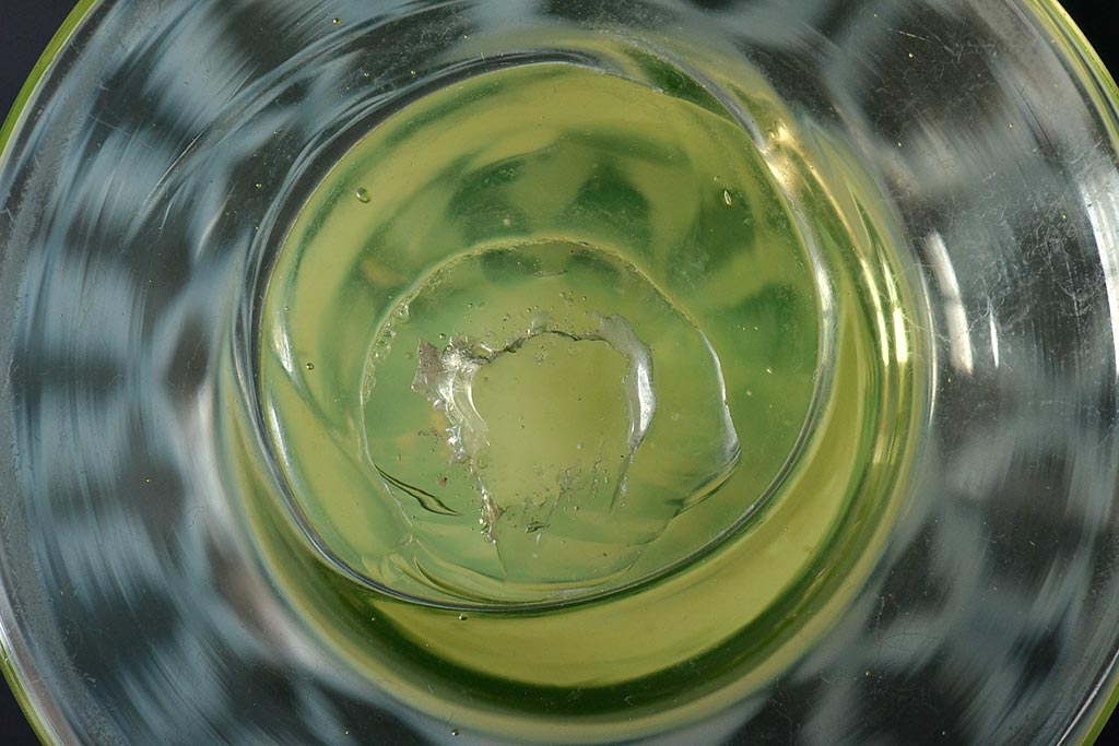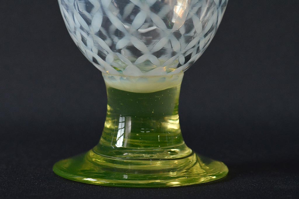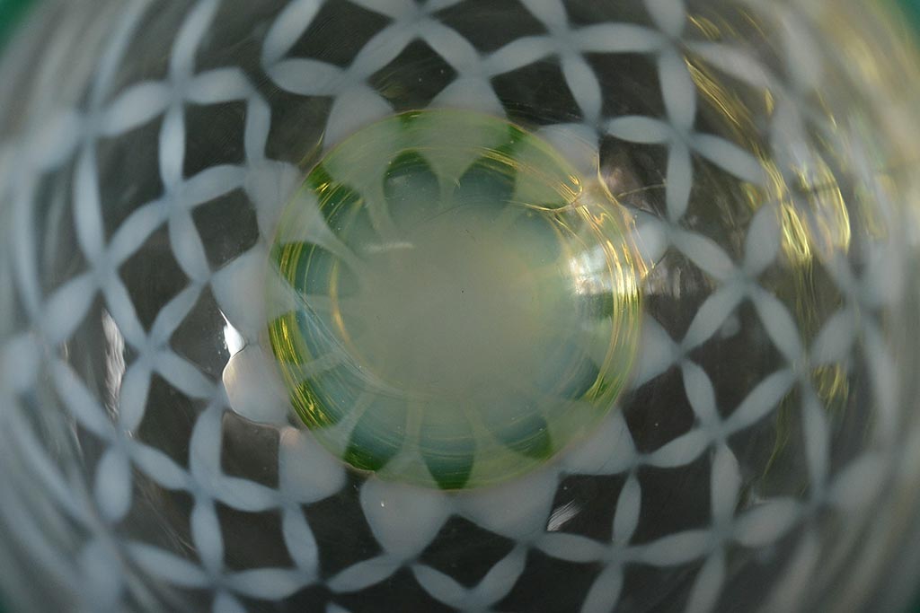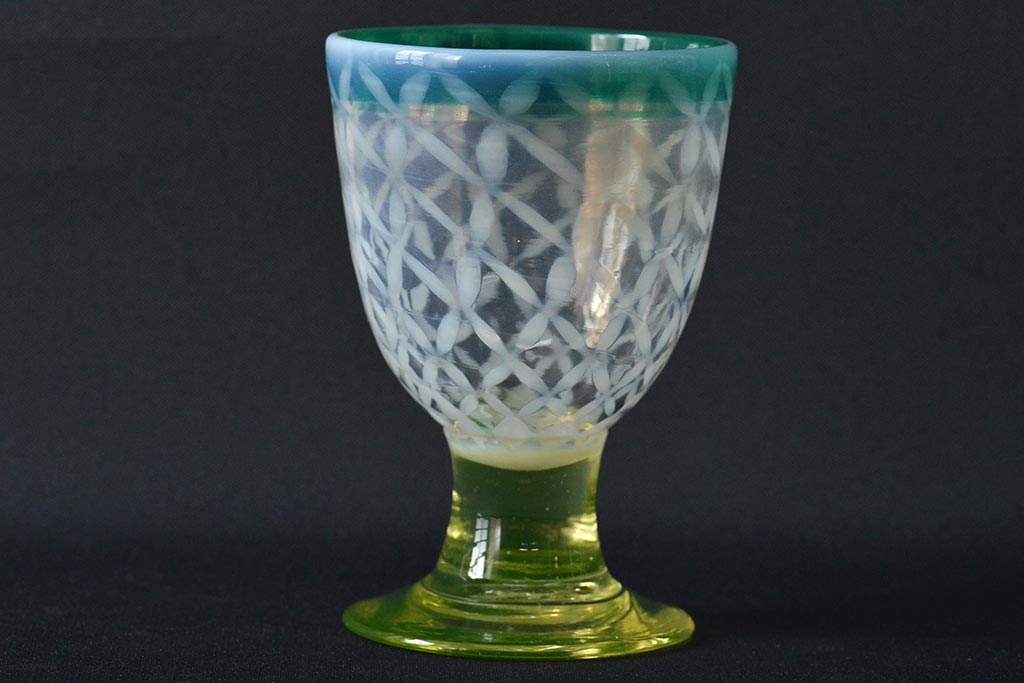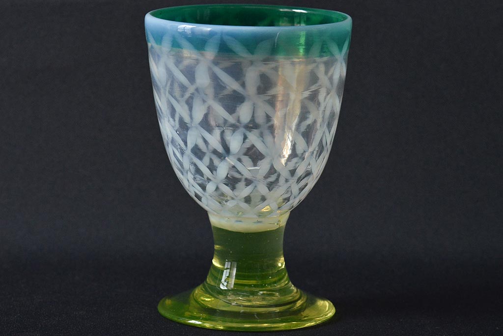 明治〜大正 青縁暈し七宝繋ぎ文ウラン足 氷コップ(R-046104)