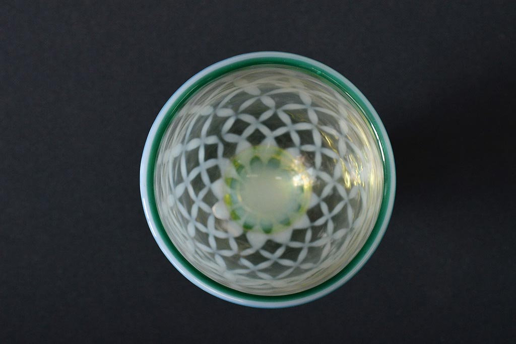 ラフジュ工房> 和食器・茶道具 > 明治〜大正 青縁暈し七宝繋ぎ文ウラン足 氷コップ(R-046104)