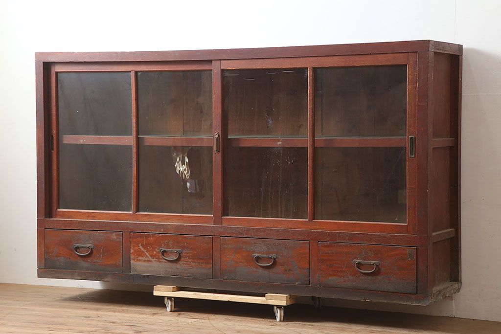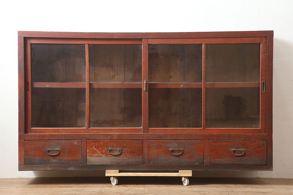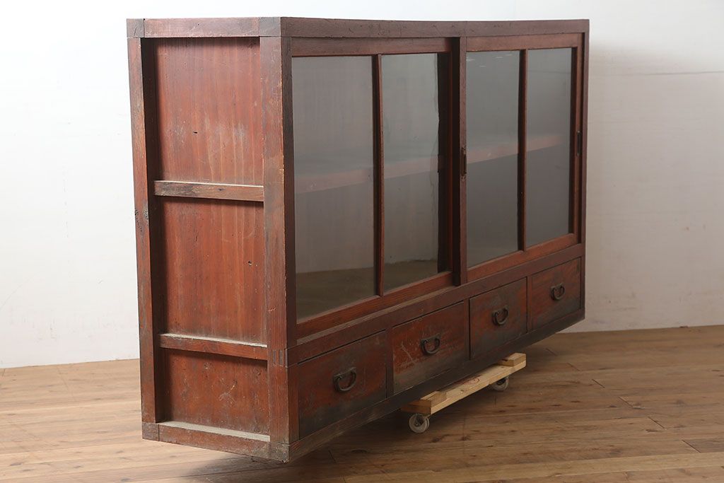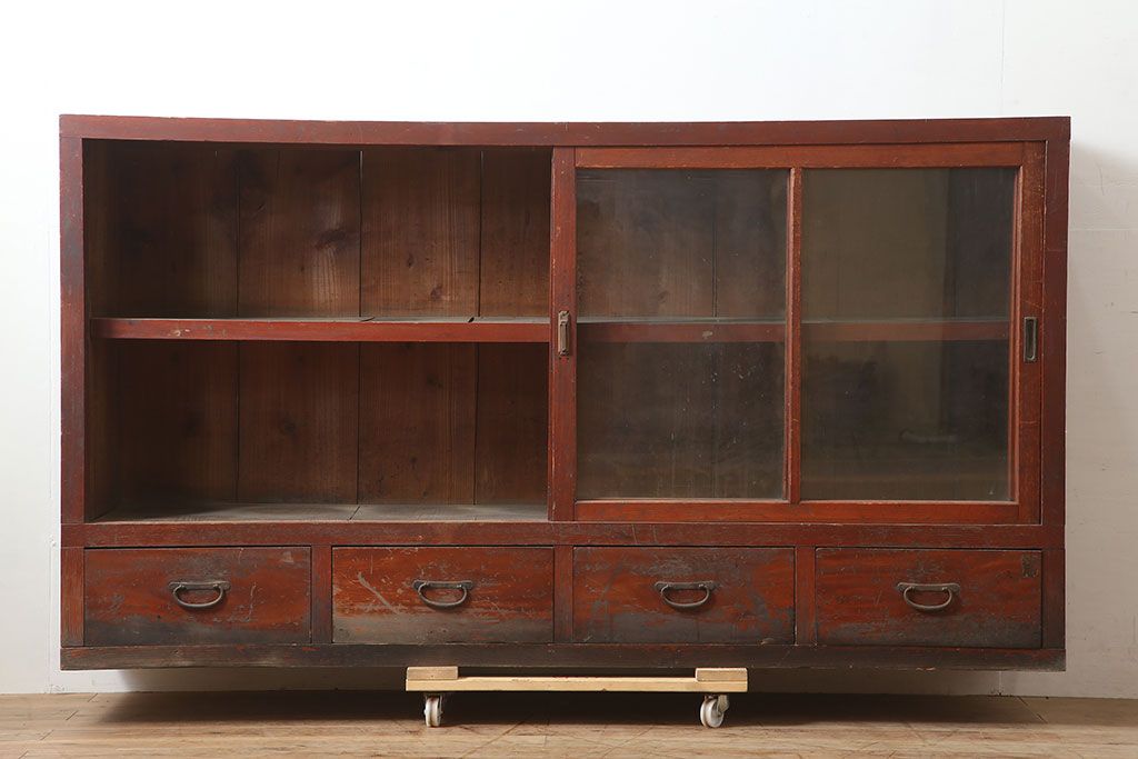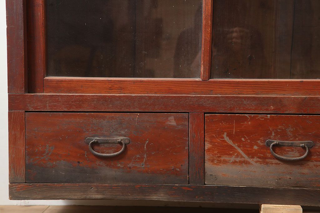 キャビネット・戸棚 > アンティーク家具 昭和初期 前面ヒノキ 赤みがかった木肌が美しい戸棚・下段(収納棚、キャビネット)(R-046257)