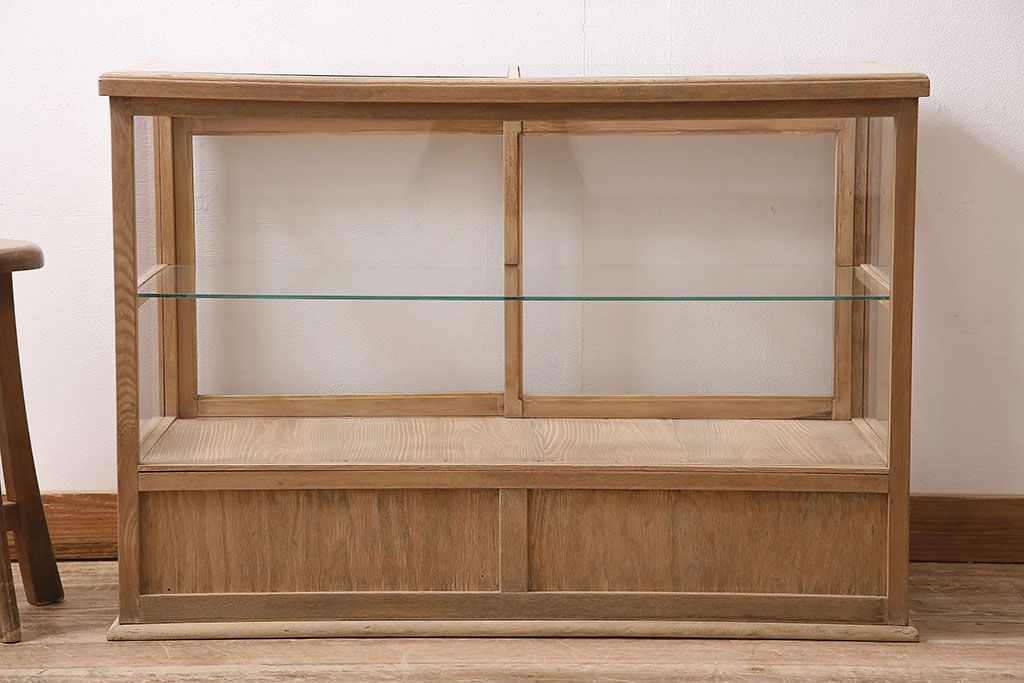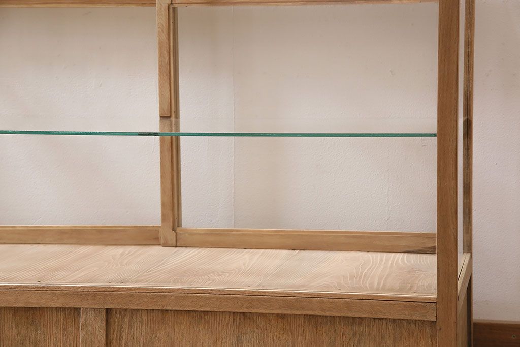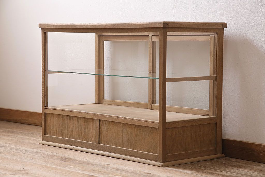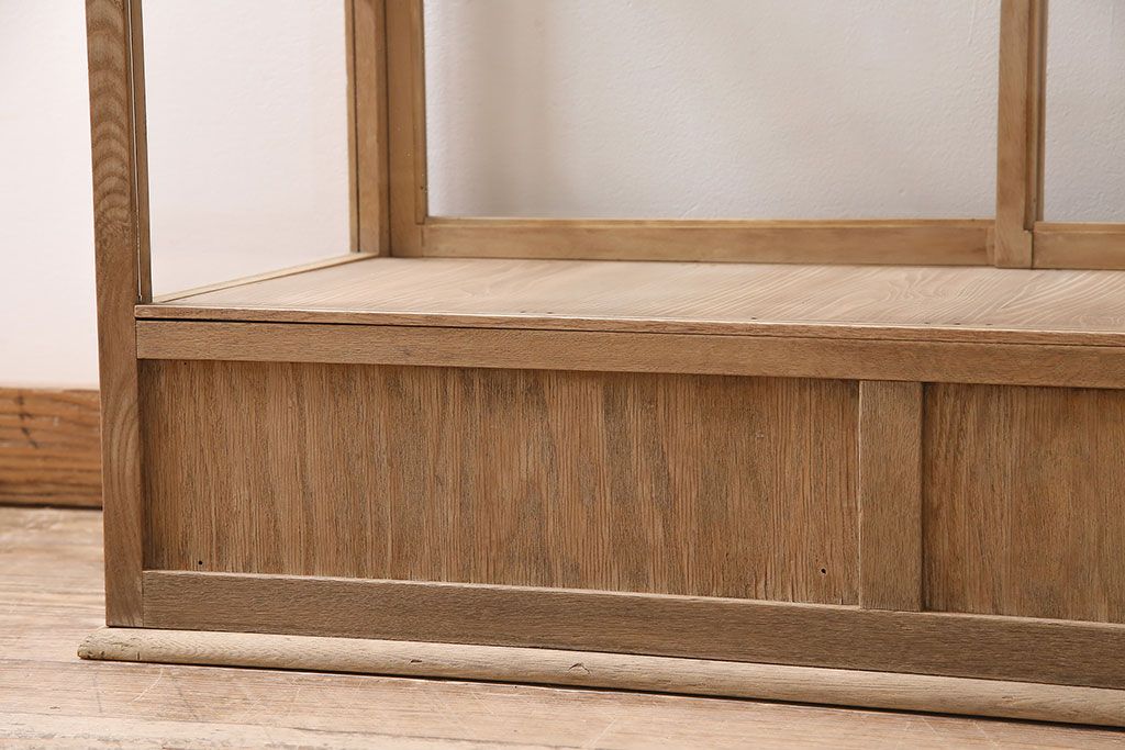 店舗什器 > アンティーク家具 昭和初期 ストリップド(剥離) ナラ材 素朴な木味が魅力のレトロなガラスケース(ショーケース、飾り棚、陳列棚)(R-046300)