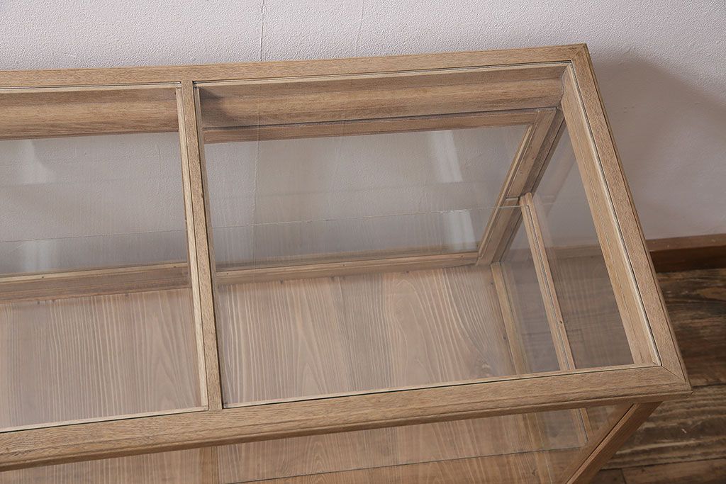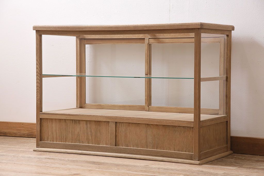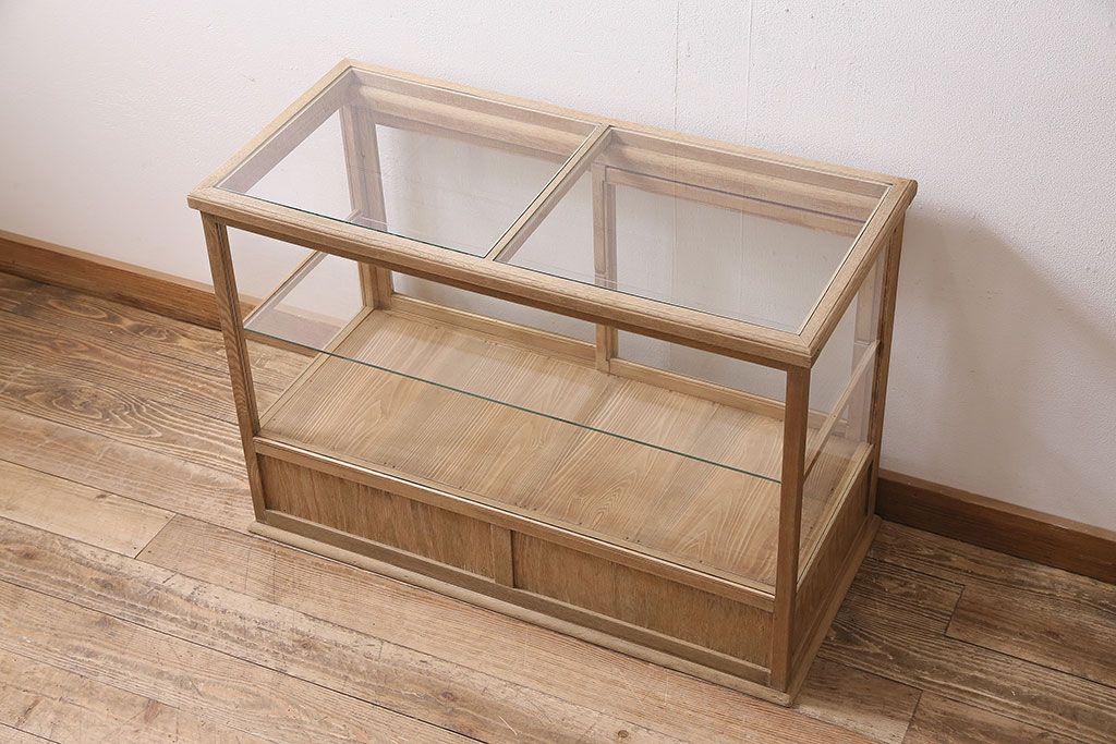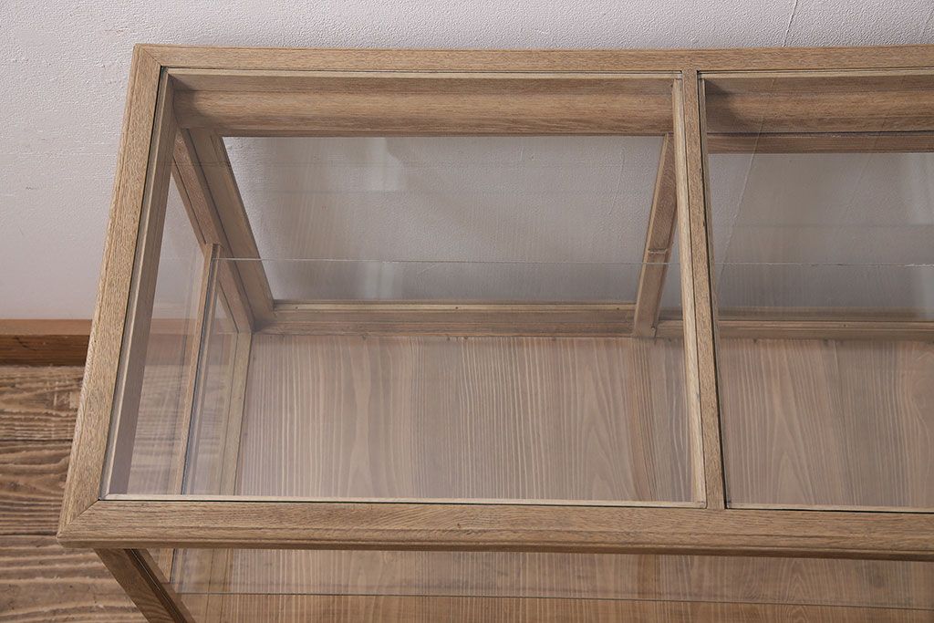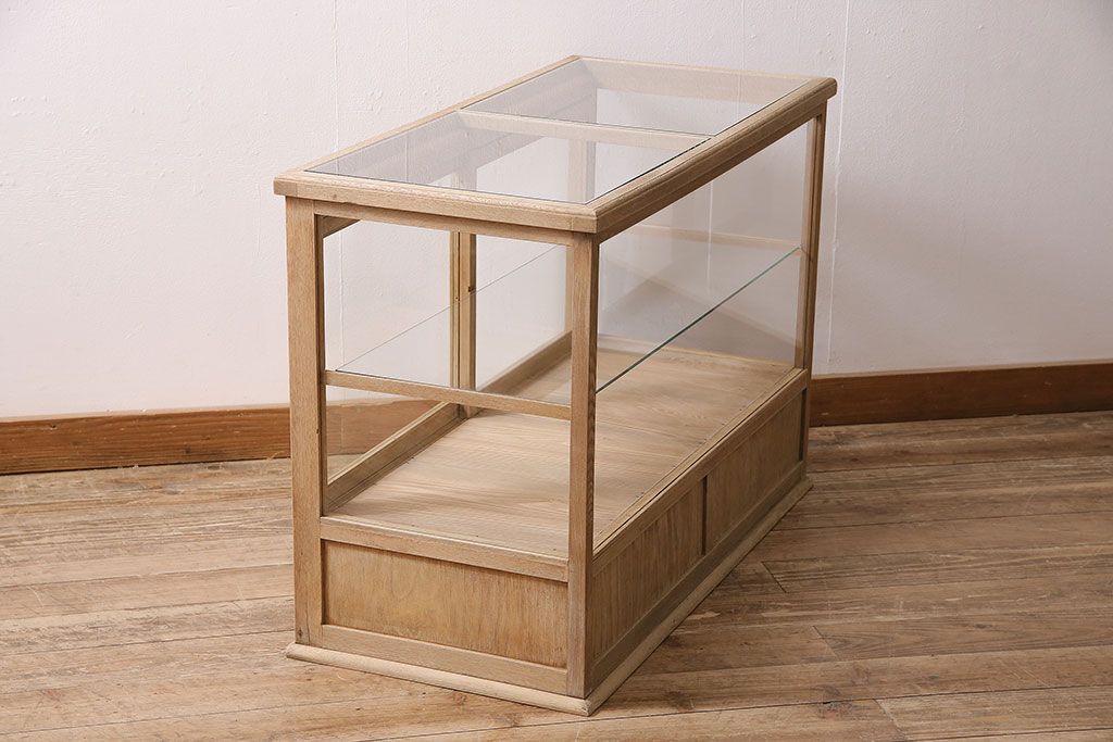 店舗什器 > アンティーク家具 昭和初期 ストリップド(剥離) ナラ材 素朴な木味が魅力のレトロなガラスケース(ショーケース、飾り棚、陳列棚)(R-046300)
