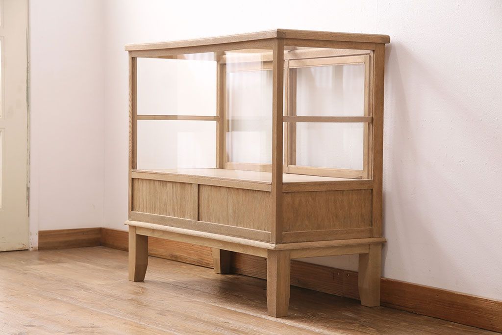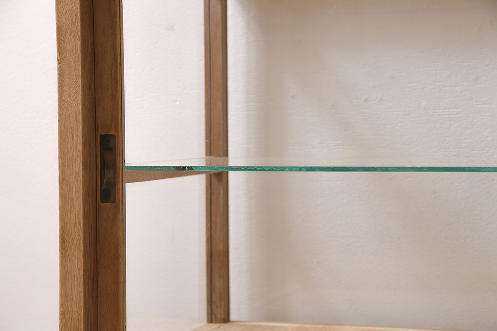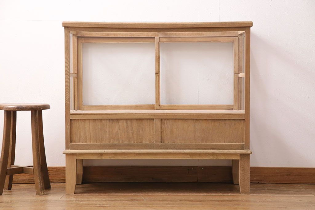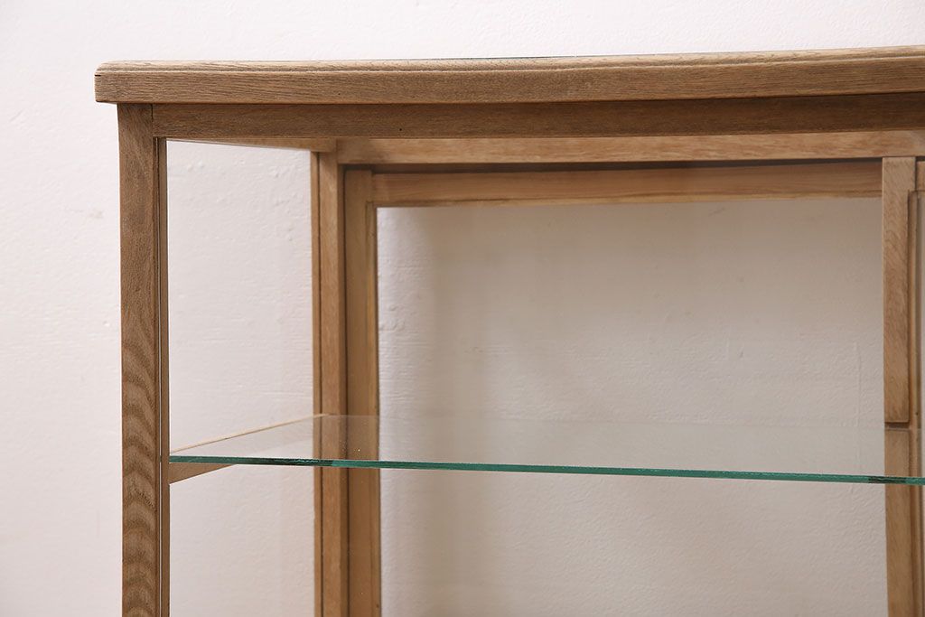 ガラスケース・ショーケース > アンティーク家具 昭和初期 ストリップド(剥離) ナラ材 素朴な木味が魅力のレトロなガラスケース(ショーケース、飾り棚、陳列棚)(R-046300)
