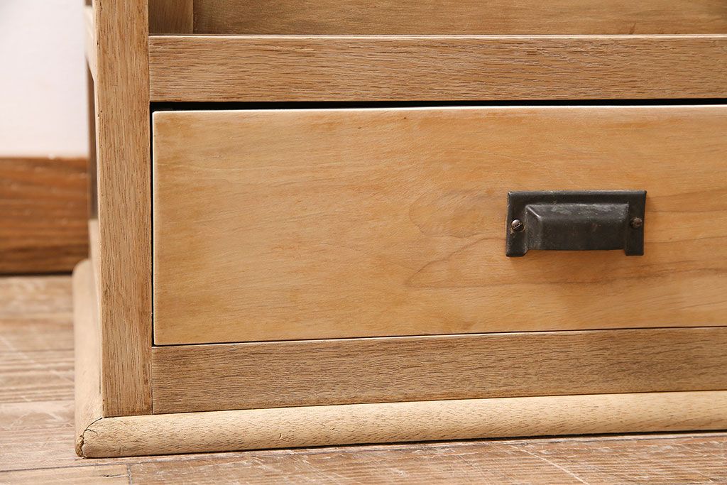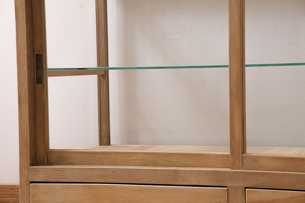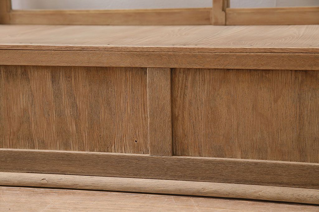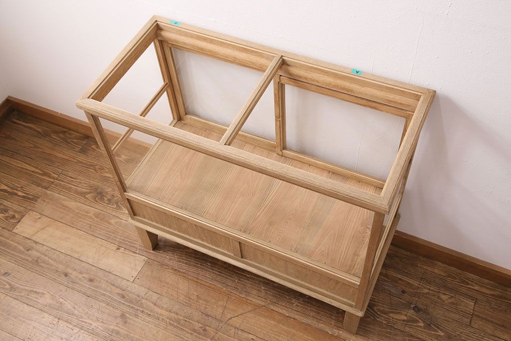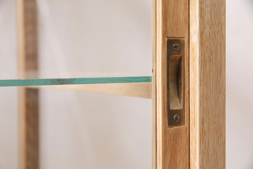 ガラスケース・ショーケース > アンティーク家具 昭和初期 ストリップド(剥離) ナラ材 素朴な木味が魅力のレトロなガラスケース(ショーケース、飾り棚、陳列棚)(R-046300)