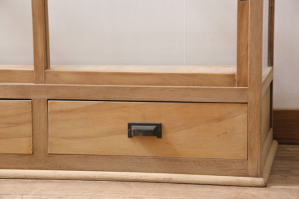 ストリップド(剥離)家具 > アンティーク家具 昭和初期 ストリップド(剥離) ナラ材 素朴な木味が魅力のレトロなガラスケース(ショーケース、飾り棚、陳列棚)(R-046300)