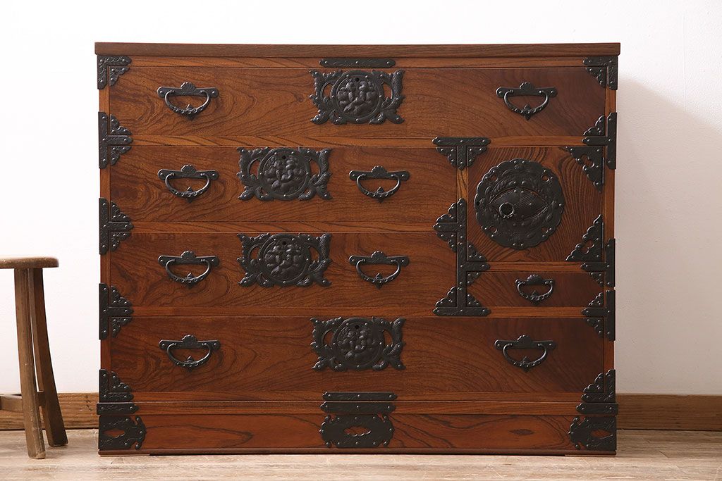 和箪笥 > 中古 伝統民芸家具 岩谷堂箪笥 天板リメイク・栗材 上品な和の雰囲気を感じさせる衣装箪笥(和タンス、チェスト、引き出し)(R-046301)