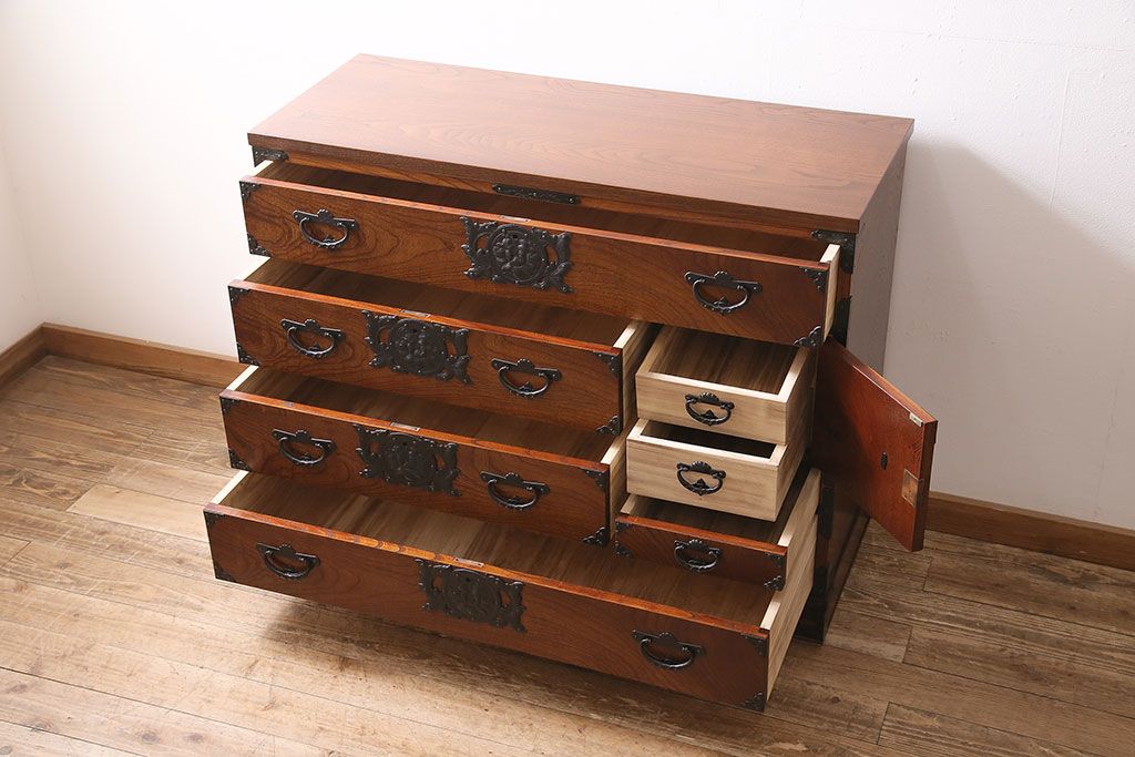 中古 伝統民芸家具 岩谷堂箪笥 天板リメイク・栗材 上品な和の雰囲気を感じさせる衣装箪笥(和タンス、チェスト、引き出し)(R-046301)