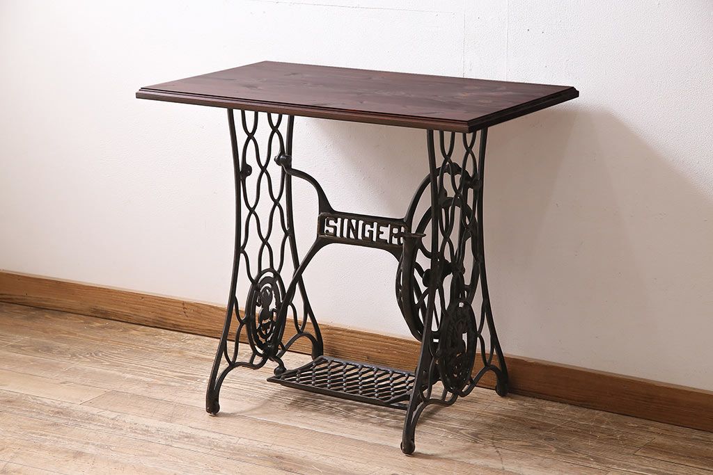 テーブル> ミシンテーブル > シンガー社(SINGER) ヒノキ材 リメイク お洒落なインテリアにおすすめなミシンテーブル(シンガーミシン、サイドテーブル、カフェテーブル、ミシン台)(R-046347)