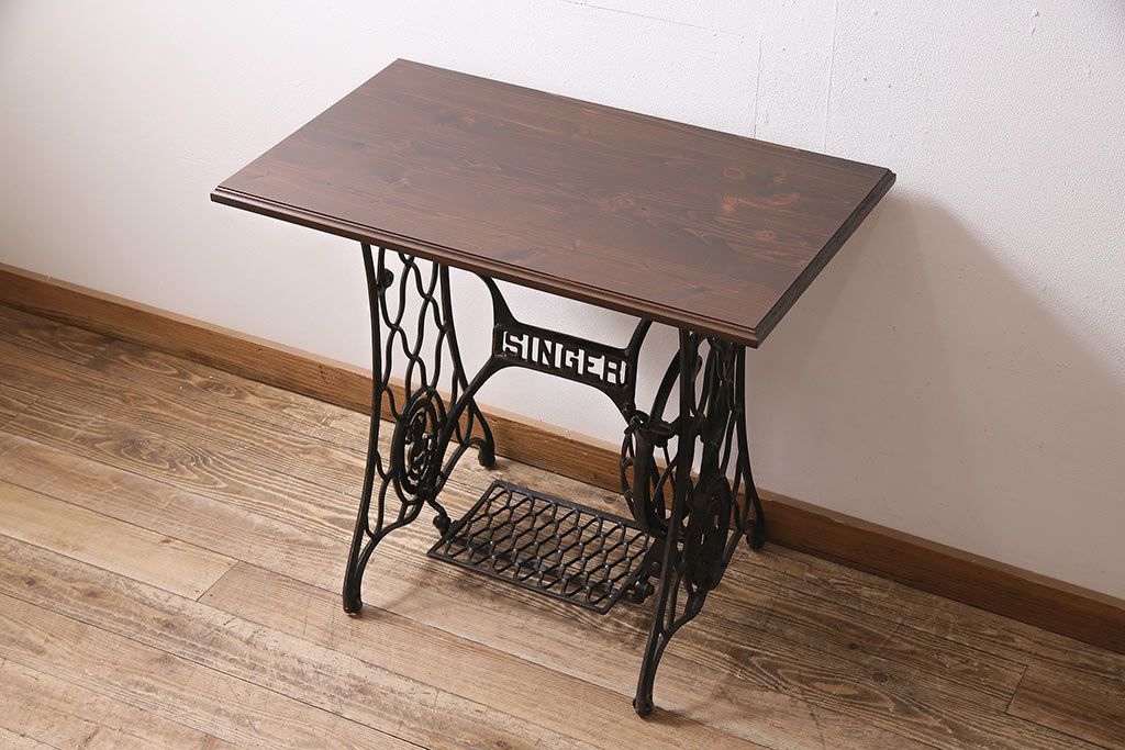 デスク> ワークデスク > シンガー社(SINGER) ヒノキ材 リメイク お洒落なインテリアにおすすめなミシンテーブル(シンガーミシン、サイドテーブル、カフェテーブル、ミシン台)(R-046347)