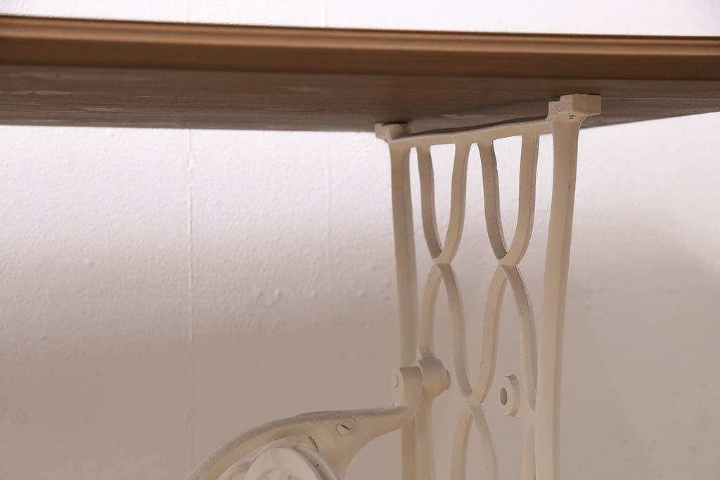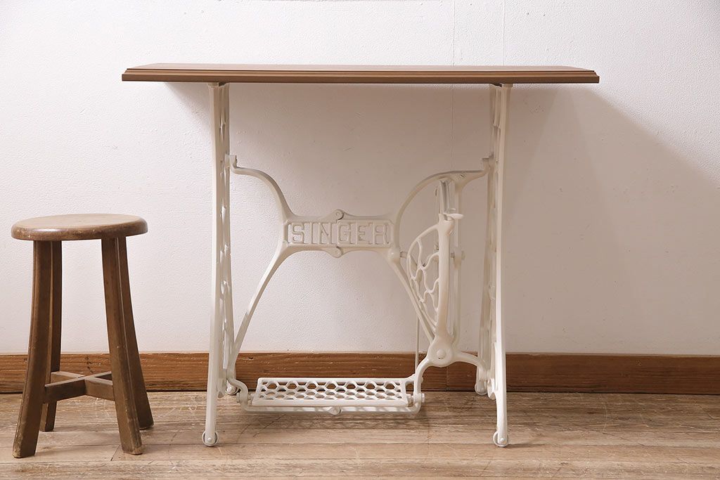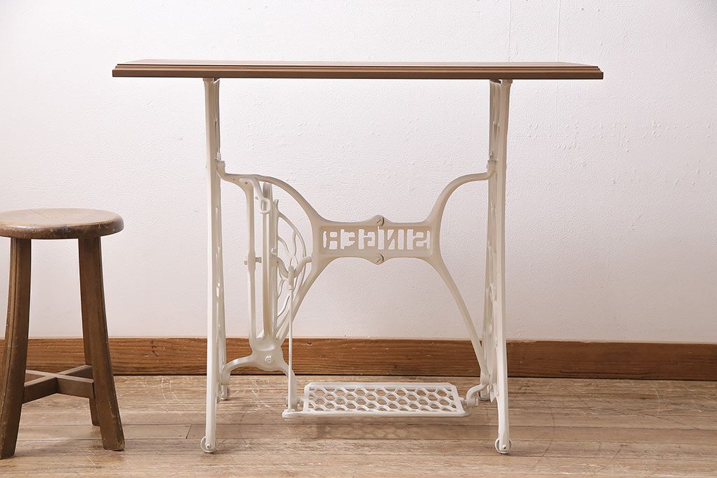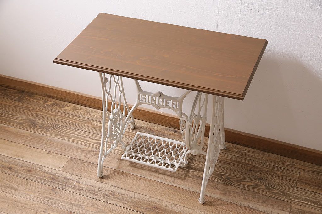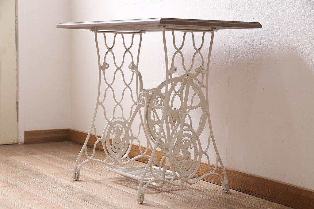 デスク> ワークデスク > シンガー社(SINGER) ヒノキ材 リメイク ナチュラルなペイントミシンテーブル(シンガーミシン、サイドテーブル、カフェテーブル、ミシン台)(R-046350)