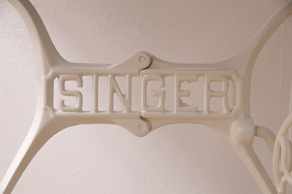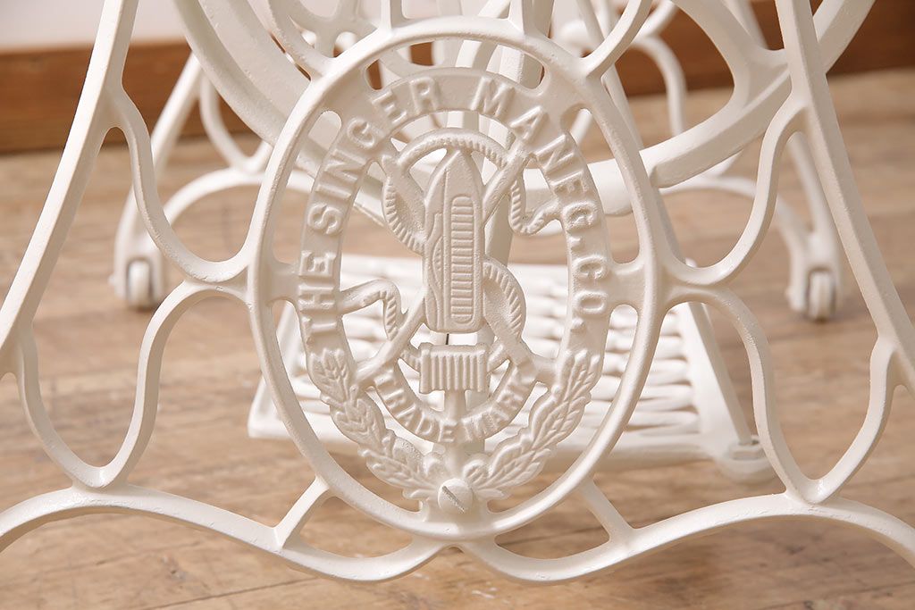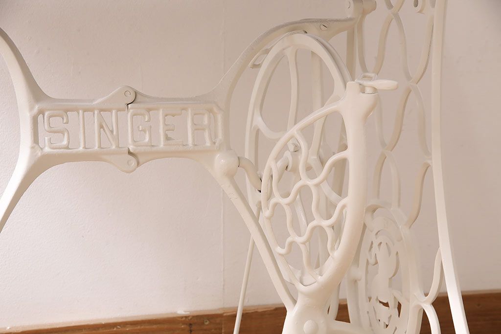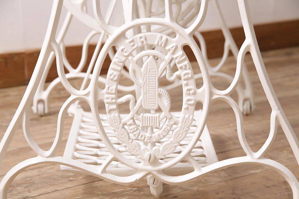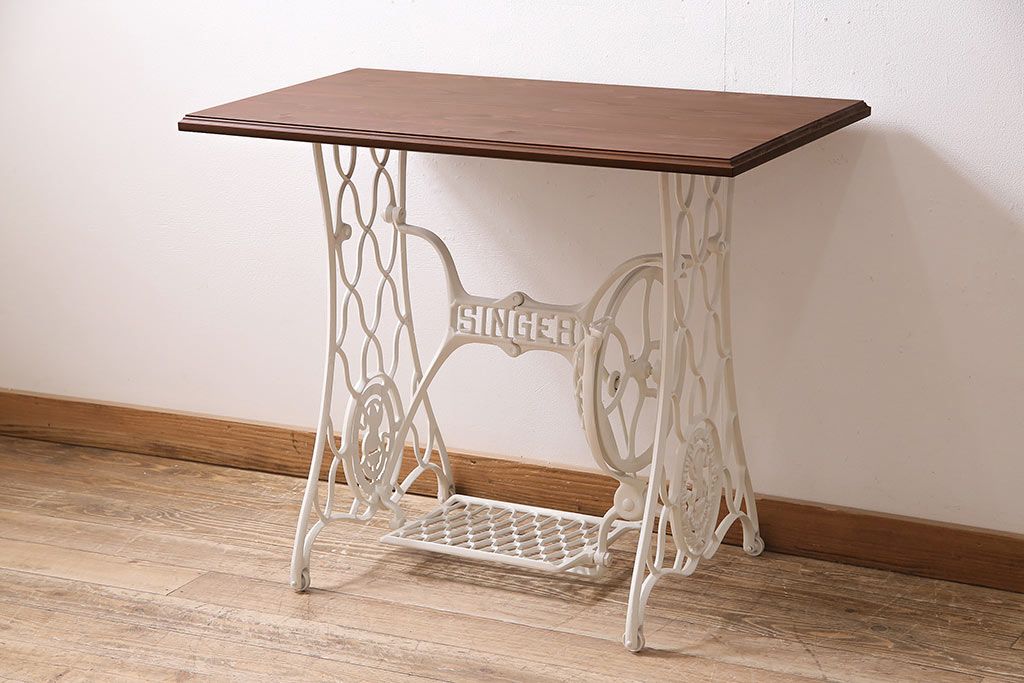デスク> ワークデスク > シンガー社(SINGER) ヒノキ材 リメイク ナチュラルなペイントミシンテーブル(シンガーミシン、サイドテーブル、カフェテーブル、ミシン台)(R-046350)