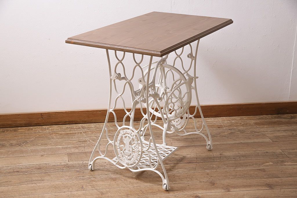 テーブル> ミシンテーブル > シンガー社(SINGER) ヒノキ材 リメイク ナチュラルなペイントミシンテーブル(シンガーミシン、サイドテーブル、カフェテーブル、ミシン台)(R-046350)