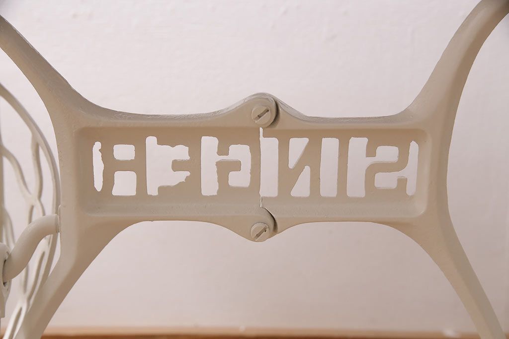 テーブル> カフェテーブル・コーヒーテーブル > シンガー社(SINGER) ヒノキ材 リメイク ナチュラルなペイントミシンテーブル(シンガーミシン、サイドテーブル、カフェテーブル、ミシン台)(R-046350)