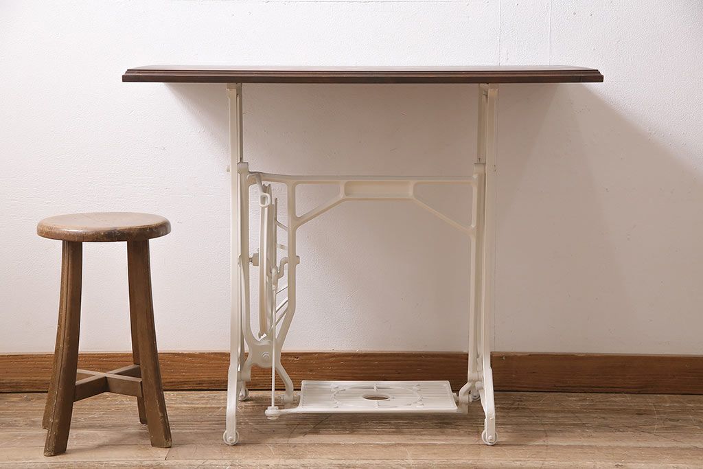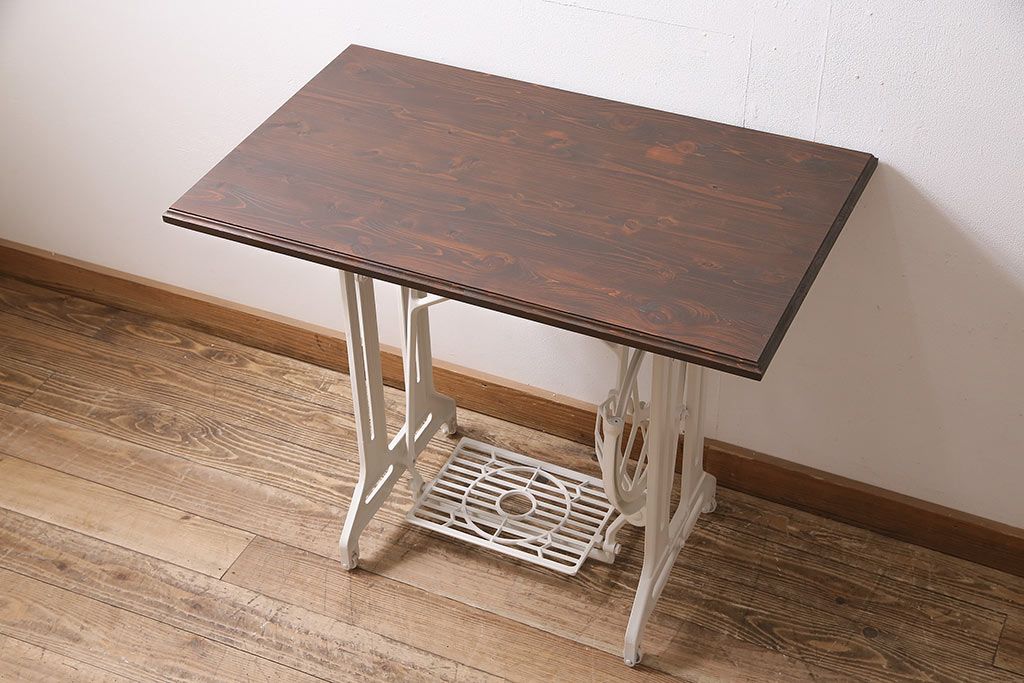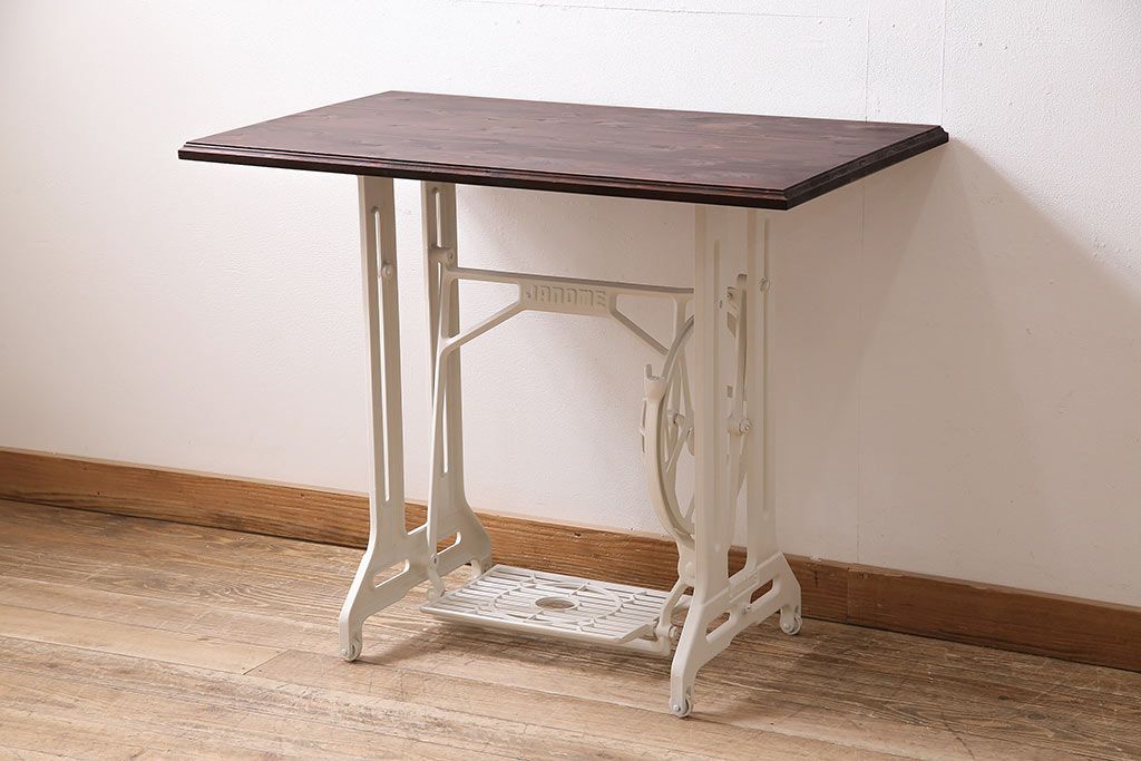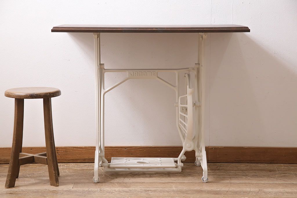 JANOME(ジャノメ) ヒノキ材 リメイク ペイントミシンテーブル(サイドテーブル、カフェテーブル、ミシン台)(R-046351)