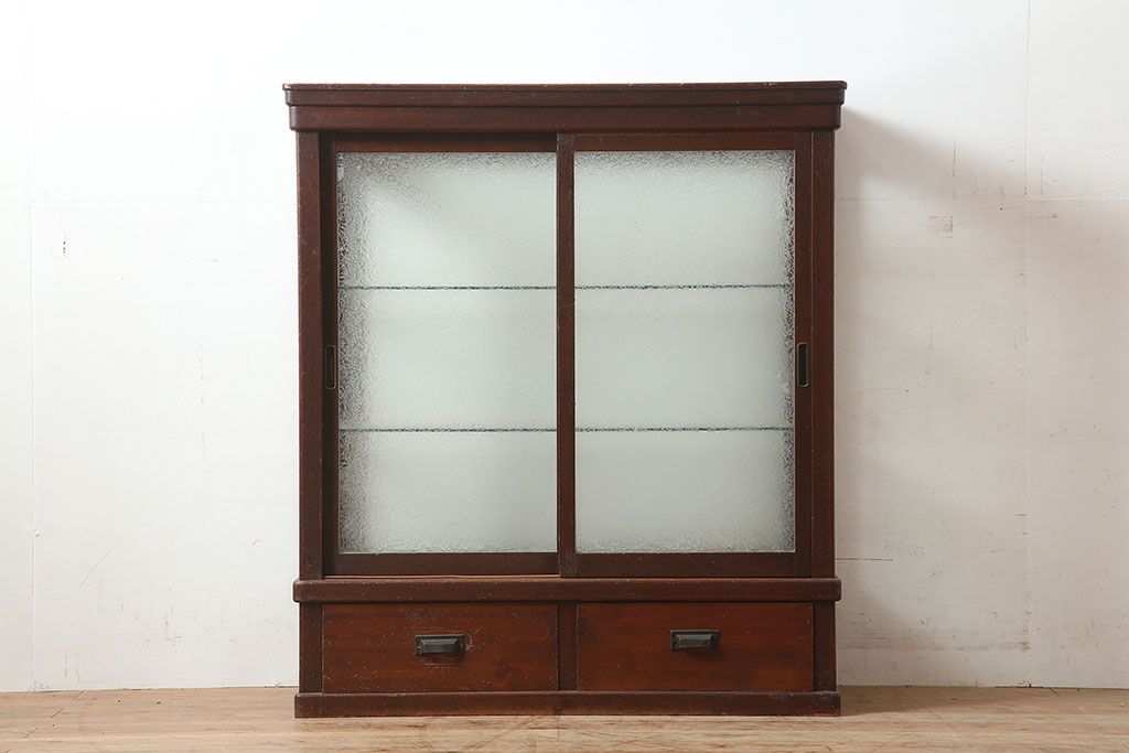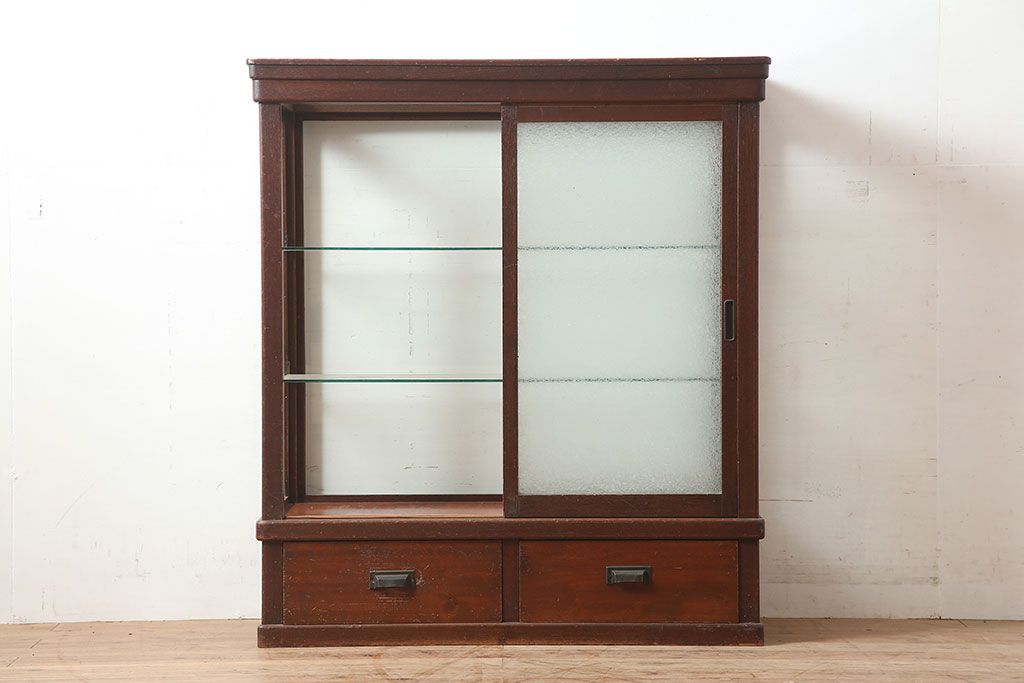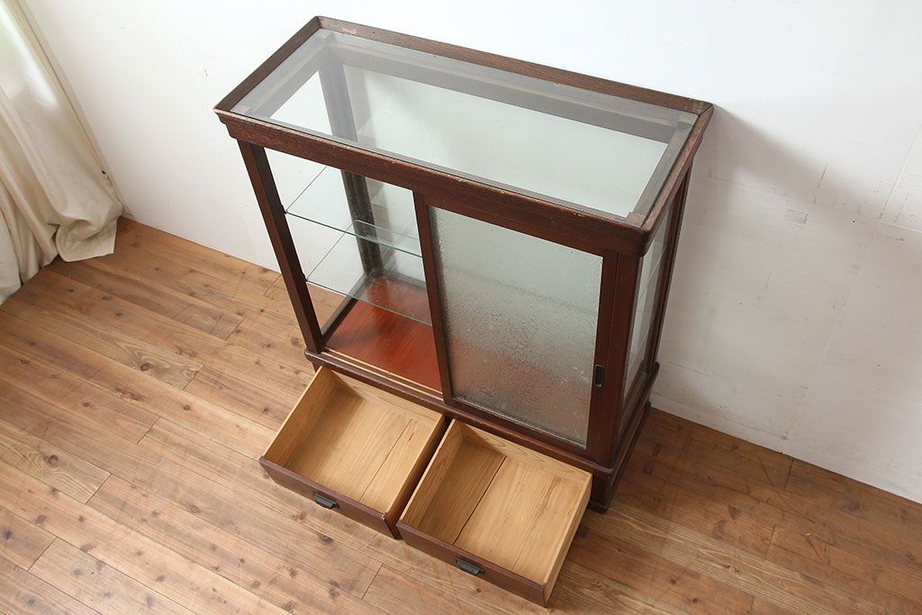 アンティーク家具 大正ロマン ケヤキ材 クラシカルな雰囲気漂うガラスケース(ショーケース、飾り棚、陳列棚)(R-046273)です。