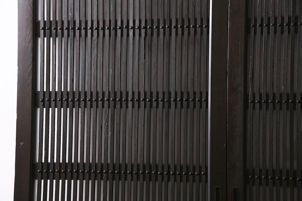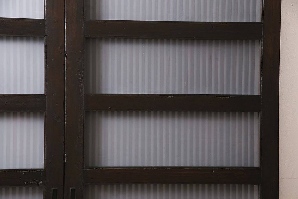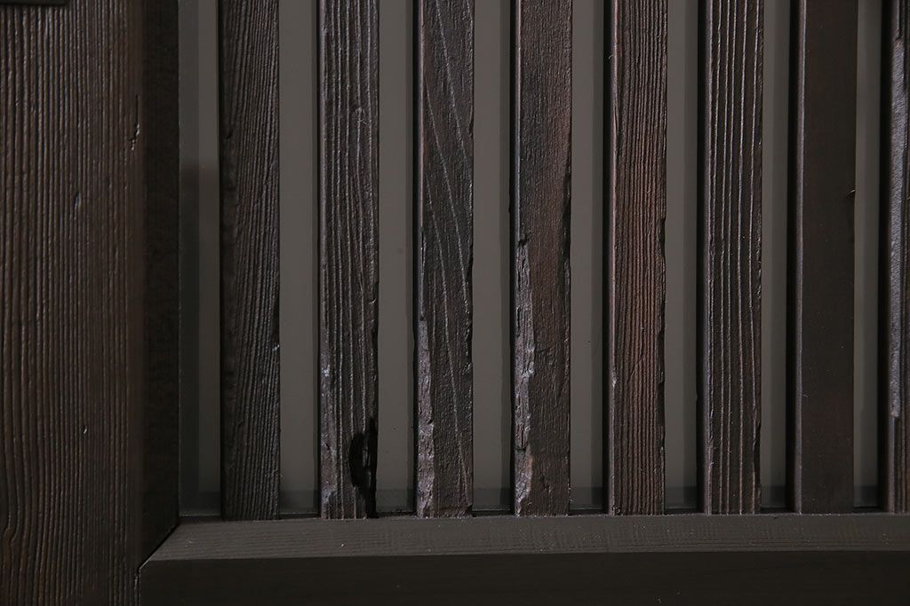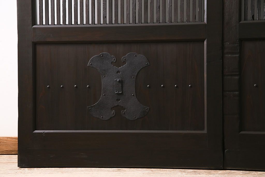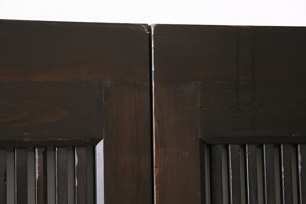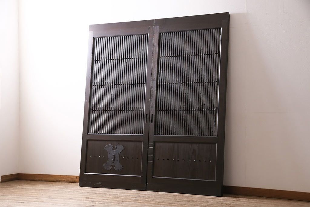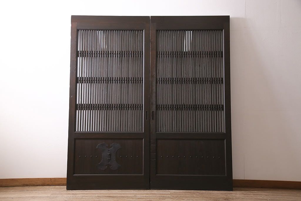 ドア・建具> 格子戸 > 明治大正期の蔵戸をリペア&カスタム!2枚に分割。設置場所に合わせてリサイズ。戸車、引き手を取り付け。すりガラスを組み入れ。外部用塗装で仕上げ。(玄関戸、引き戸、建具)