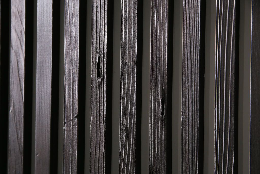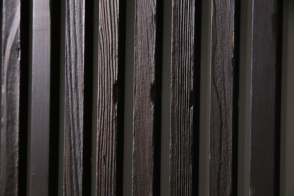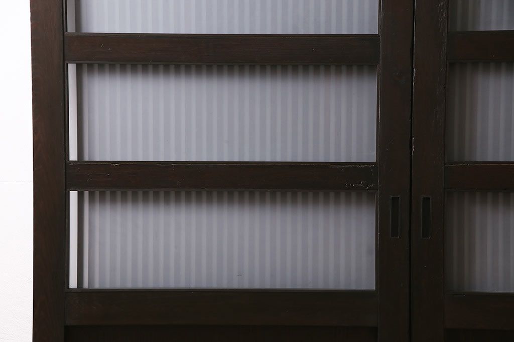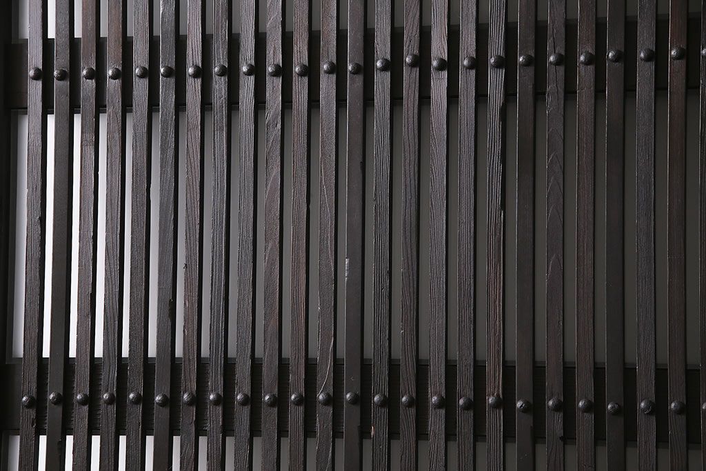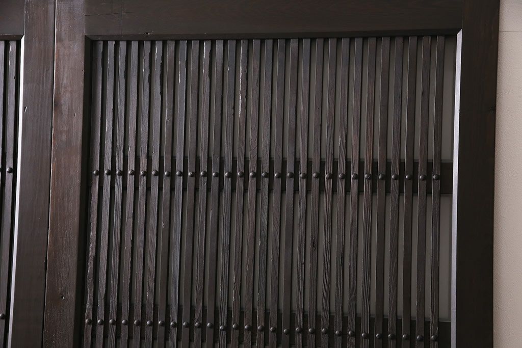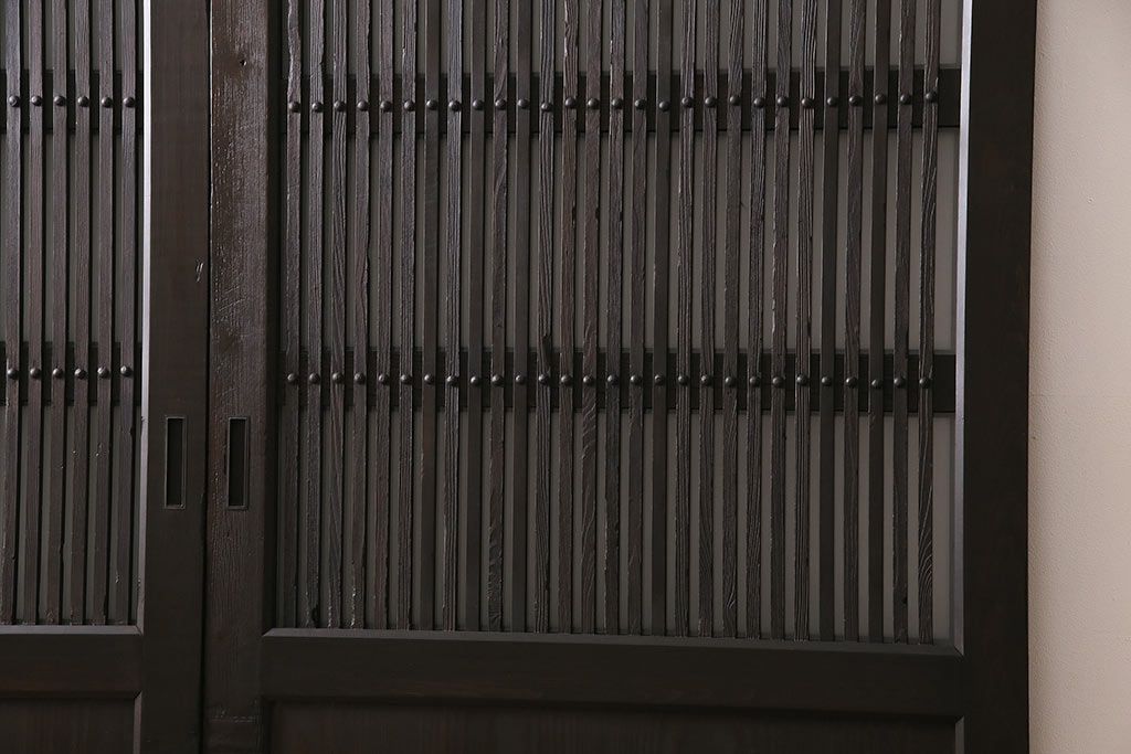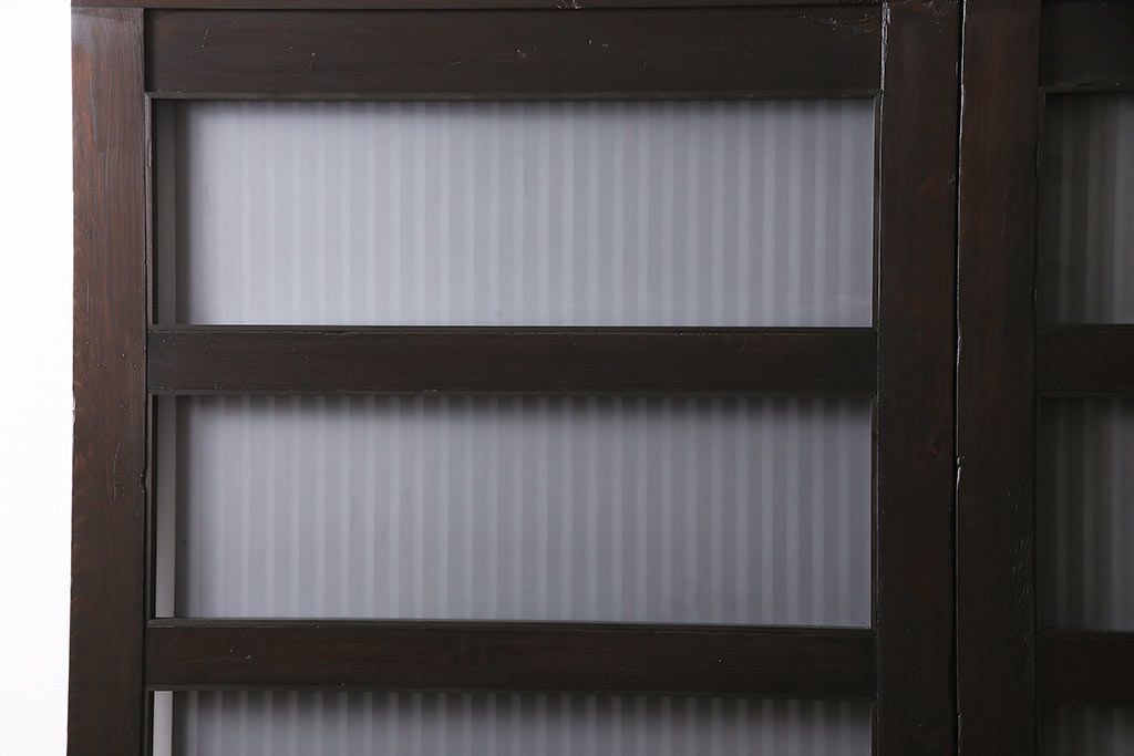 ドア・建具> 格子戸 > 明治大正期の蔵戸をリペア&カスタム!2枚に分割。設置場所に合わせてリサイズ。戸車、引き手を取り付け。すりガラスを組み入れ。外部用塗装で仕上げ。(玄関戸、引き戸、建具)