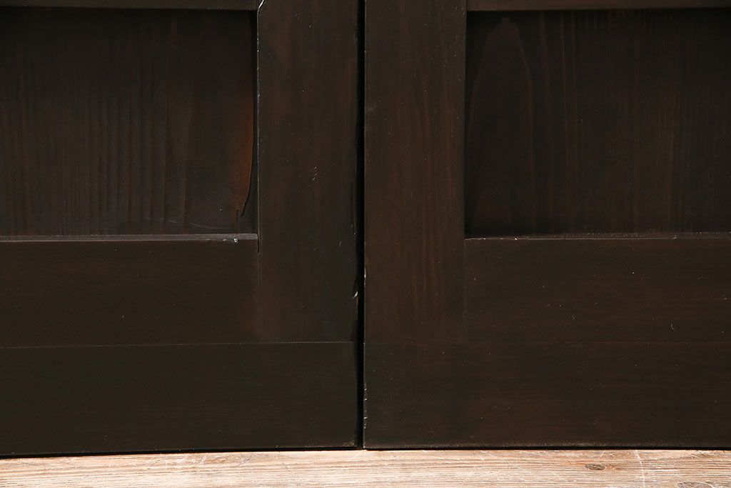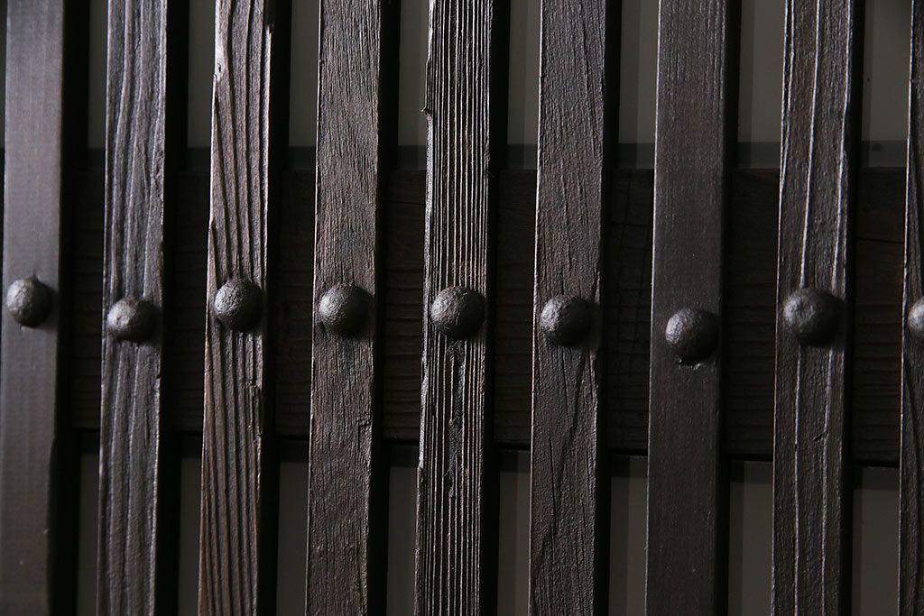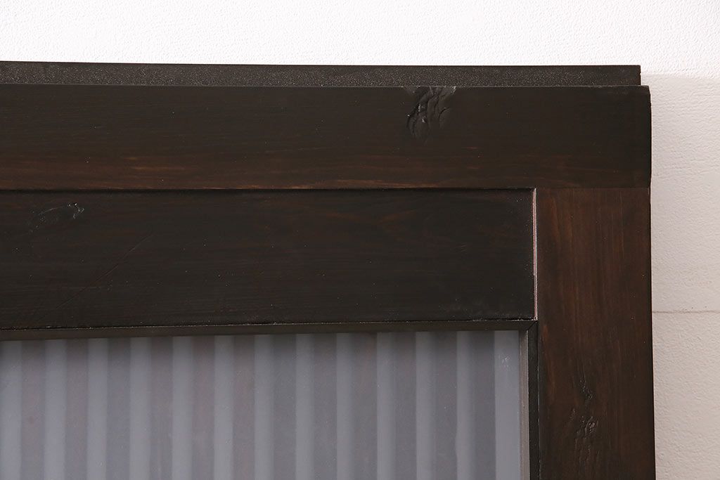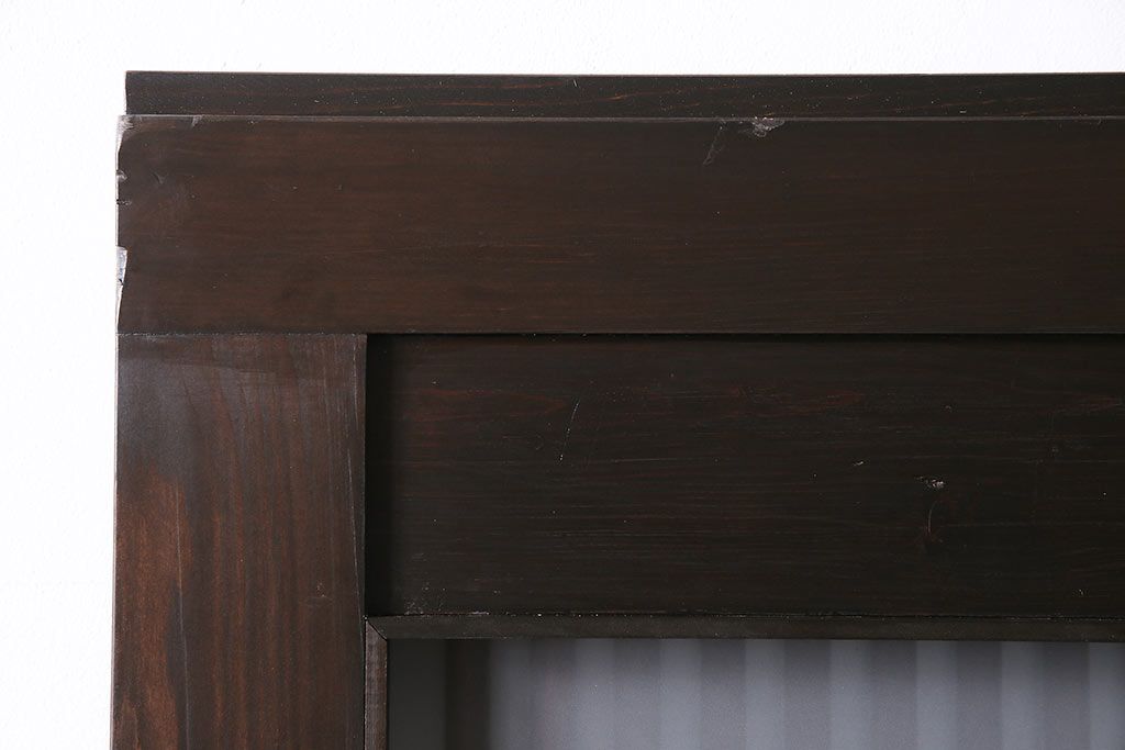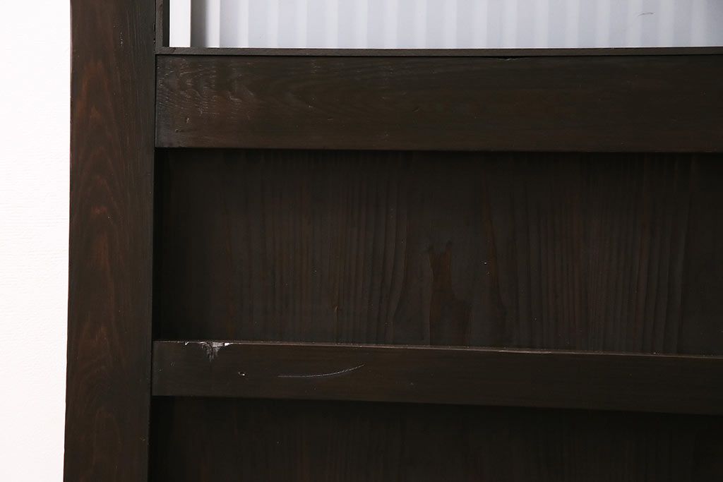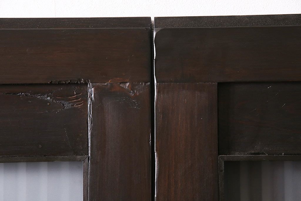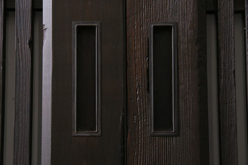 明治大正期の蔵戸をリペア&カスタム!2枚に分割。設置場所に合わせてリサイズ。戸車、引き手を取り付け。すりガラスを組み入れ。外部用塗装で仕上げ。(玄関戸、引き戸、建具)