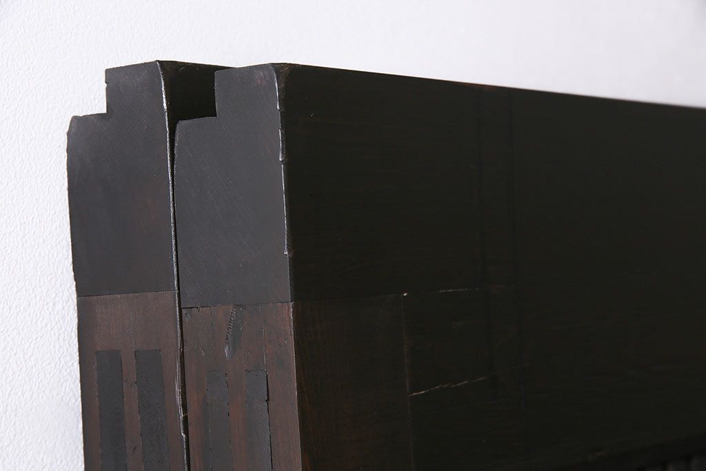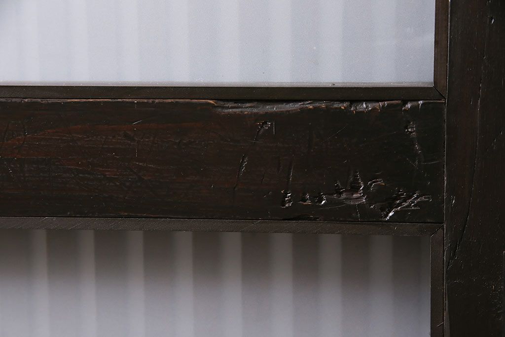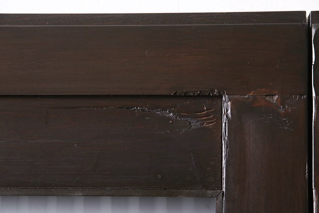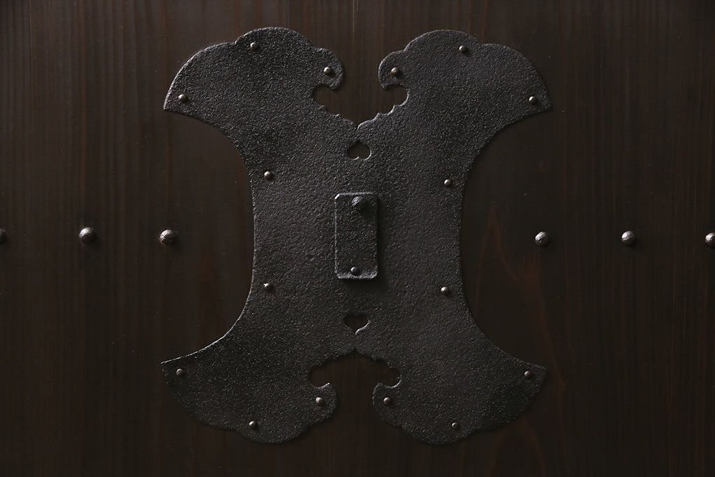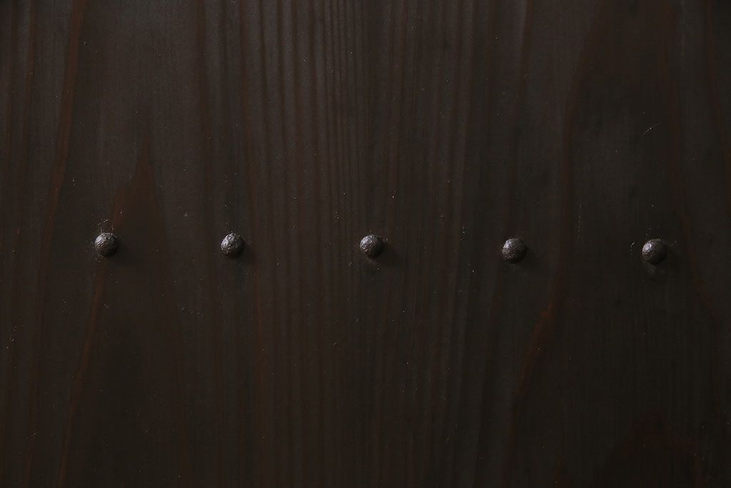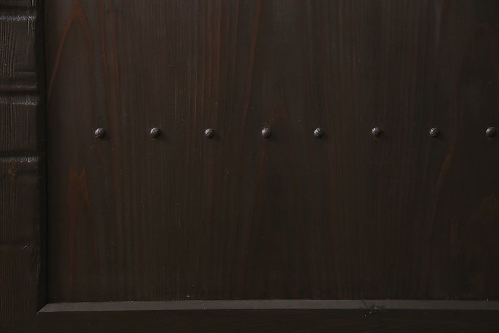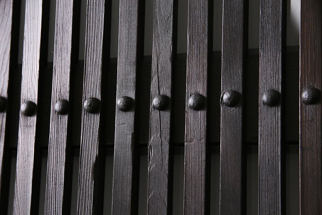 明治大正期の蔵戸をリペア&カスタム!2枚に分割。設置場所に合わせてリサイズ。戸車、引き手を取り付け。すりガラスを組み入れ。外部用塗装で仕上げ。(玄関戸、引き戸、建具)