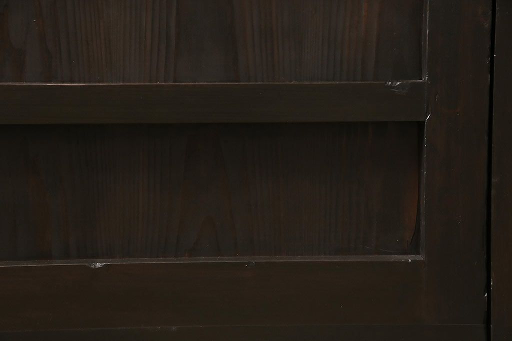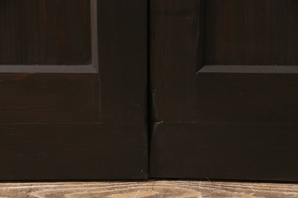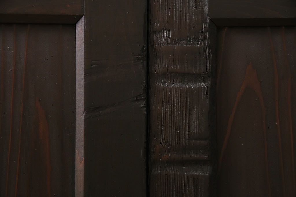 ドア・建具> 蔵戸 > 明治大正期の蔵戸をリペア&カスタム!2枚に分割。設置場所に合わせてリサイズ。戸車、引き手を取り付け。すりガラスを組み入れ。外部用塗装で仕上げ。(玄関戸、引き戸、建具)