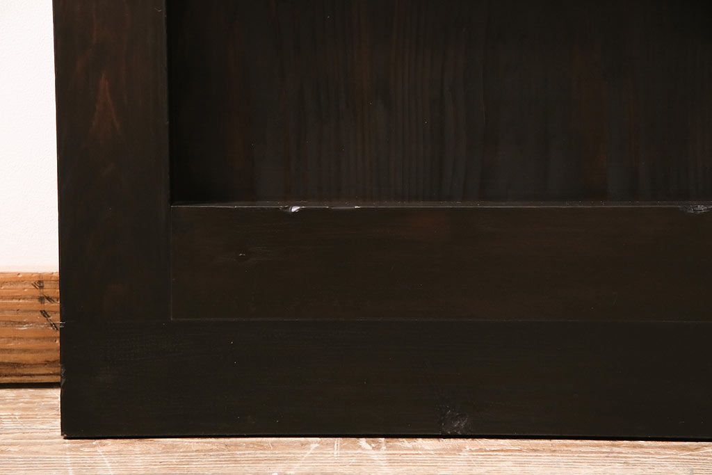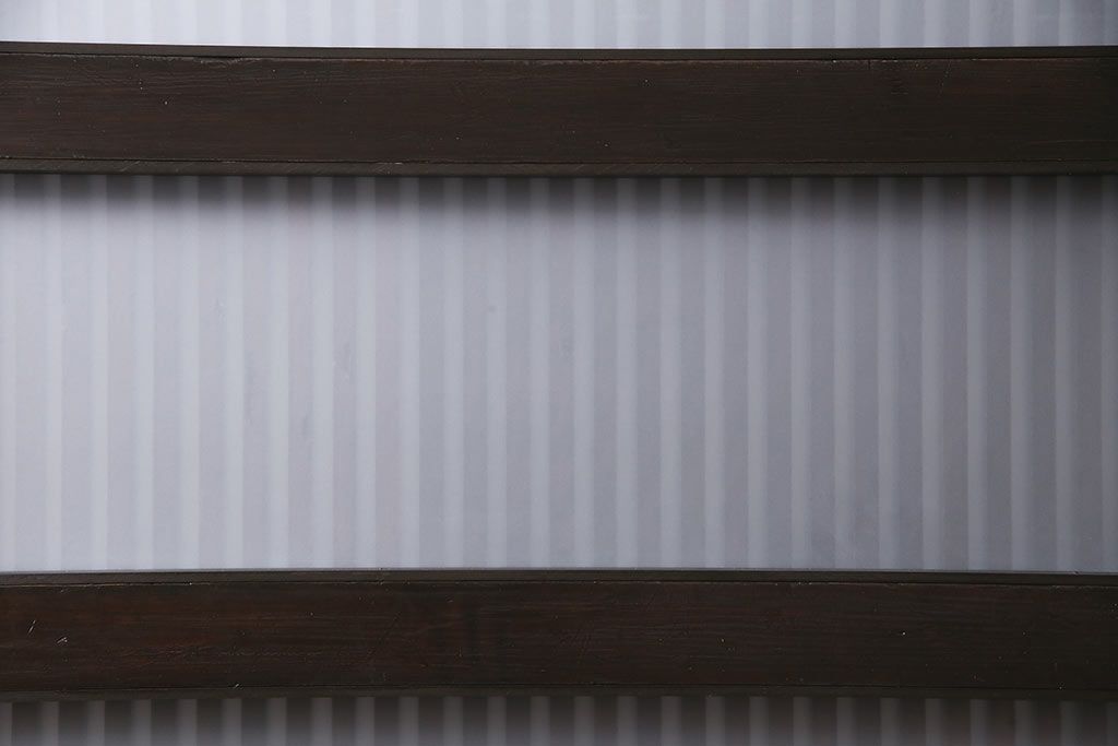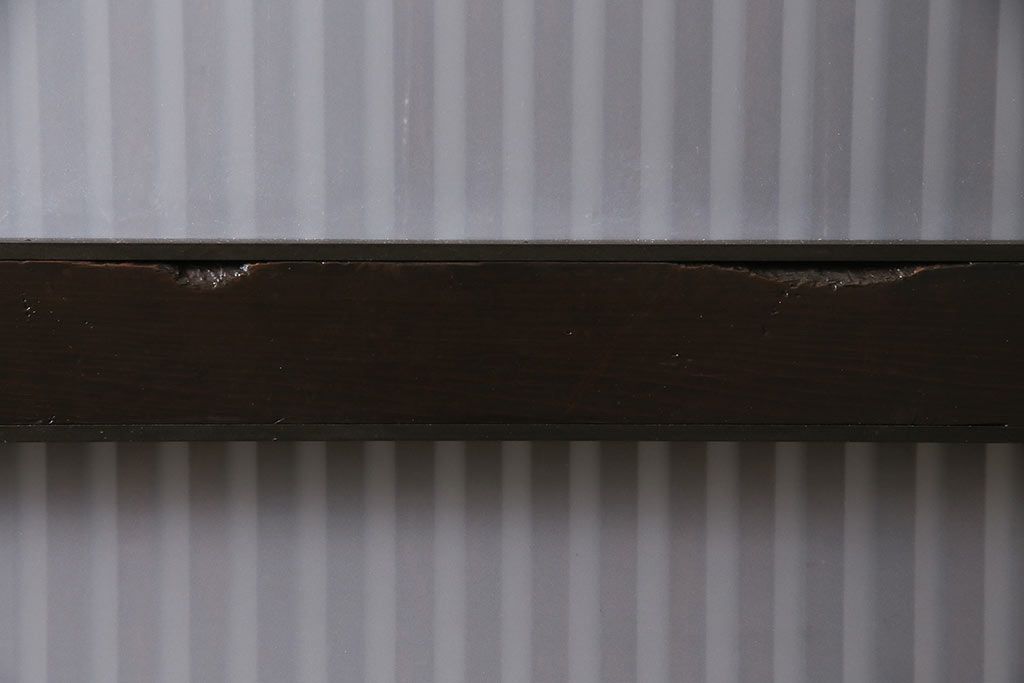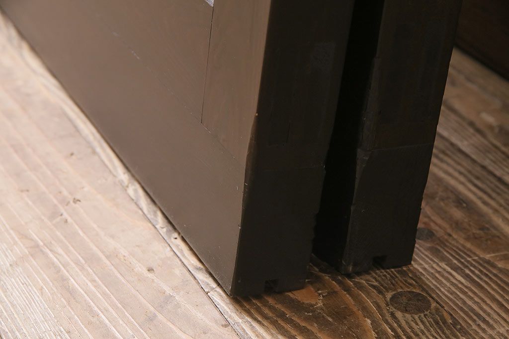 セミオーダー家具実績 > 明治大正期の蔵戸をリペア&カスタム!2枚に分割。設置場所に合わせてリサイズ。戸車、引き手を取り付け。すりガラスを組み入れ。外部用塗装で仕上げ。(玄関戸、引き戸、建具)