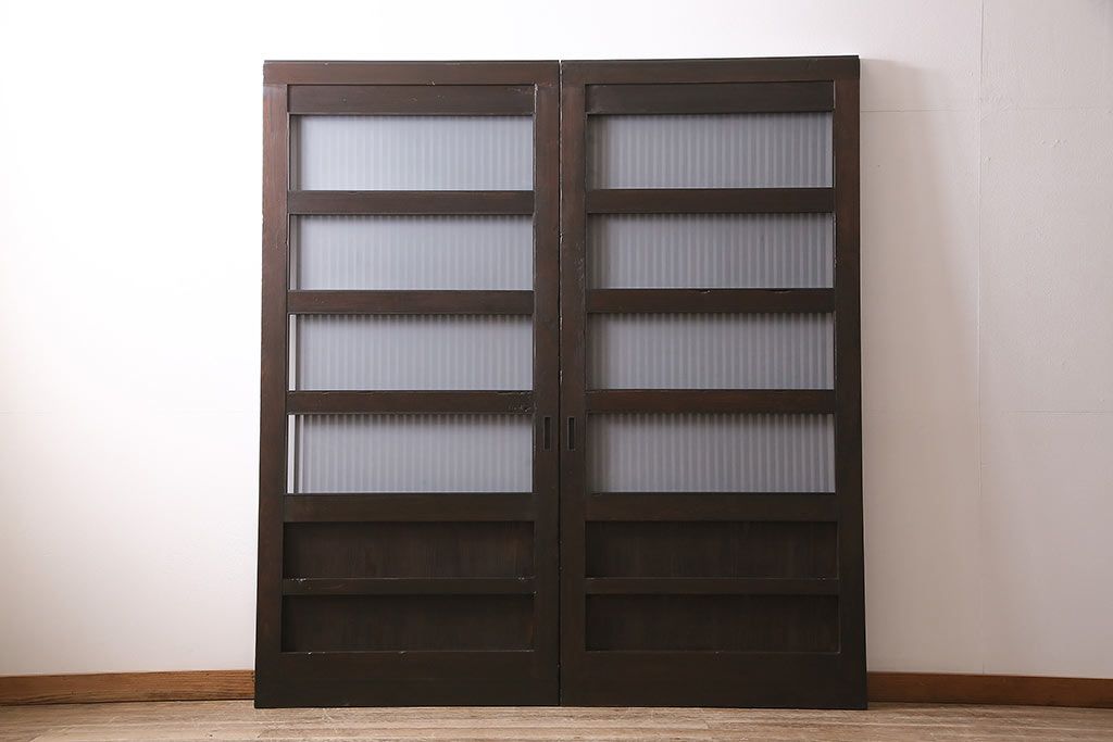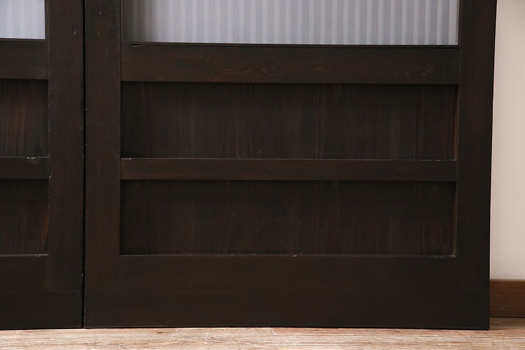 ドア・建具> 2枚・3枚セット > 明治大正期の蔵戸をリペア&カスタム!2枚に分割。設置場所に合わせてリサイズ。戸車、引き手を取り付け。すりガラスを組み入れ。外部用塗装で仕上げ。(玄関戸、引き戸、建具)