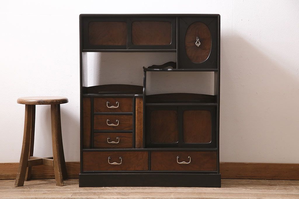 大正期の茶棚の見た目を変えずに綺麗にリペア!可動部の調整。木部の補修。(茶箪笥、収納棚、戸棚)