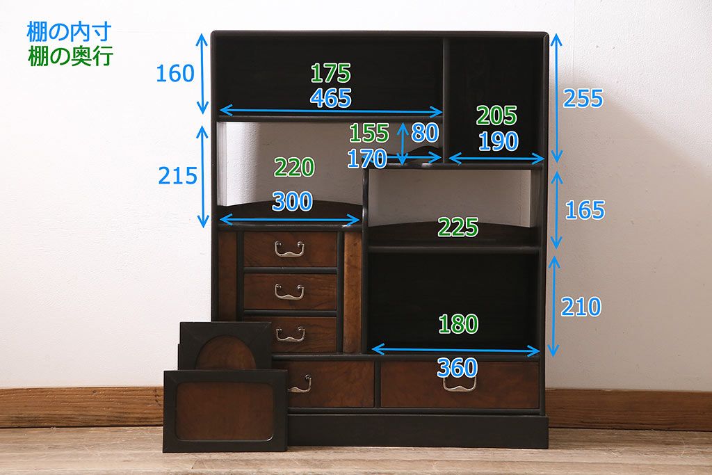 ■引き出しの内寸(大) 各 深さ90mm/幅305mm/奥行210mm