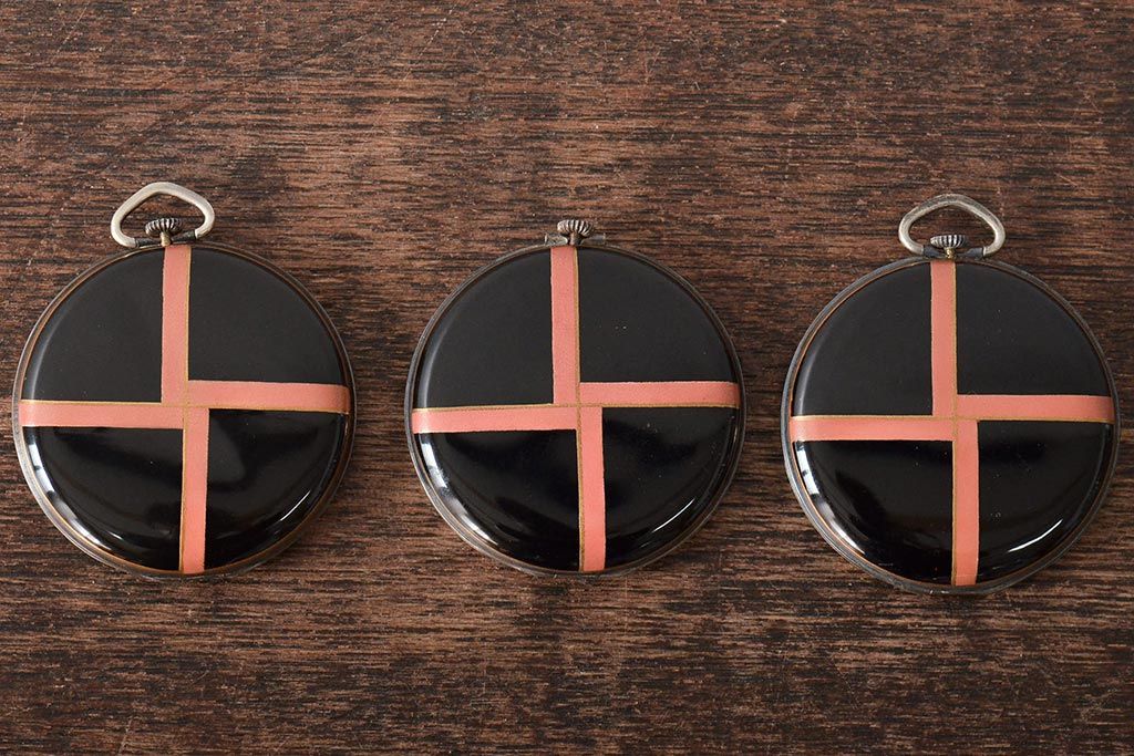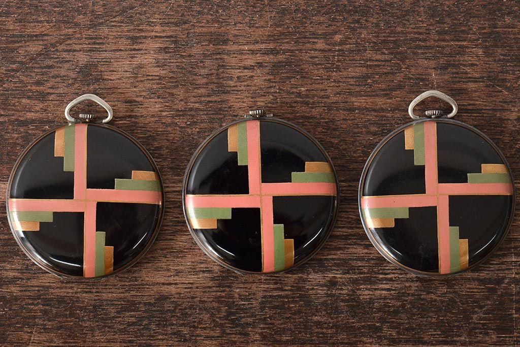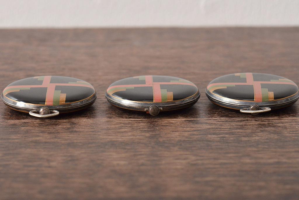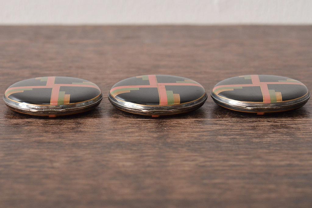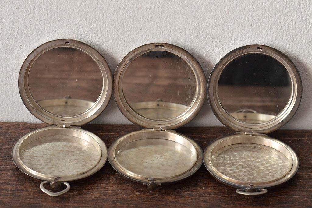 昭和初期 懐中時計型 コンパクト3個(アールデコ、ミラー、シルバー950)(R-046166)