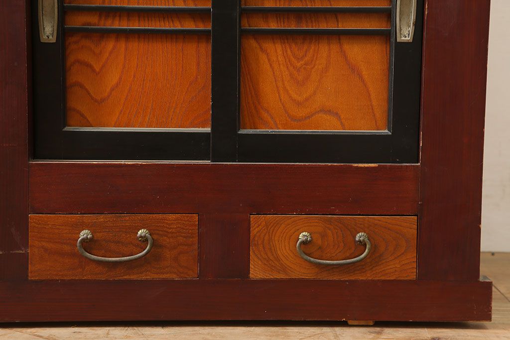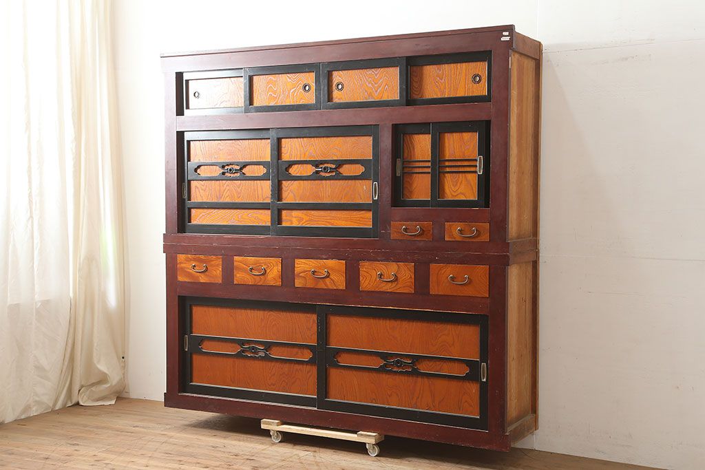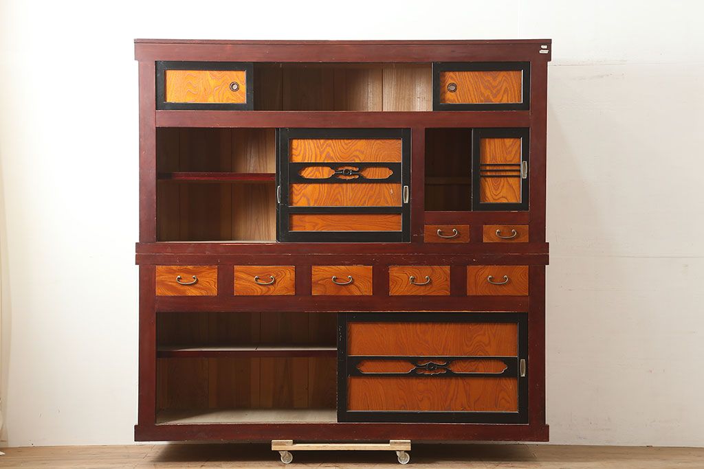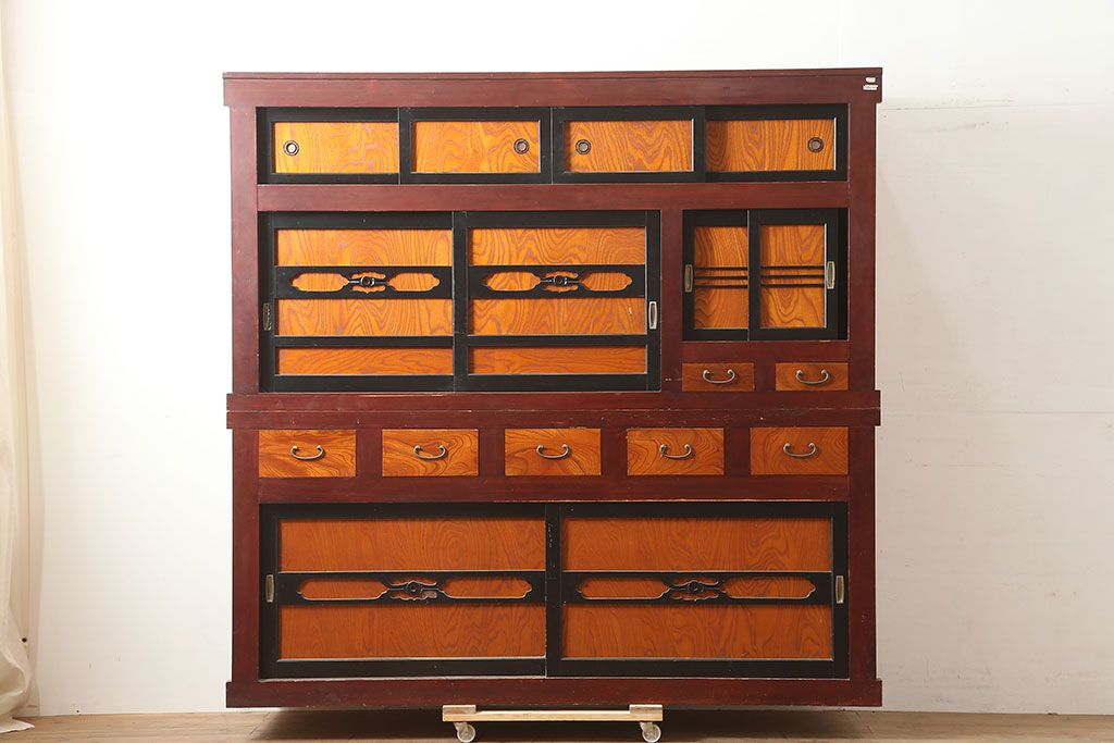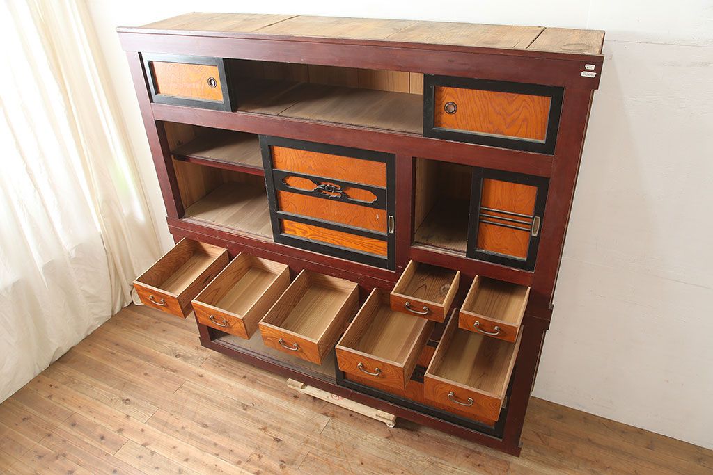 和製アンティーク 昭和初期 純和風のお部屋にぴったりの水屋箪笥・重ね(重ね箪笥、収納棚、戸棚、食器棚)(R-046267)です。