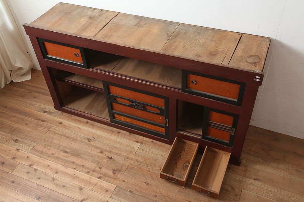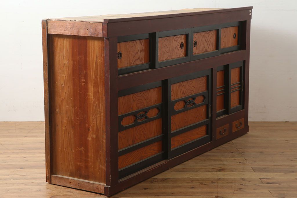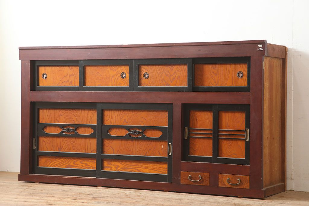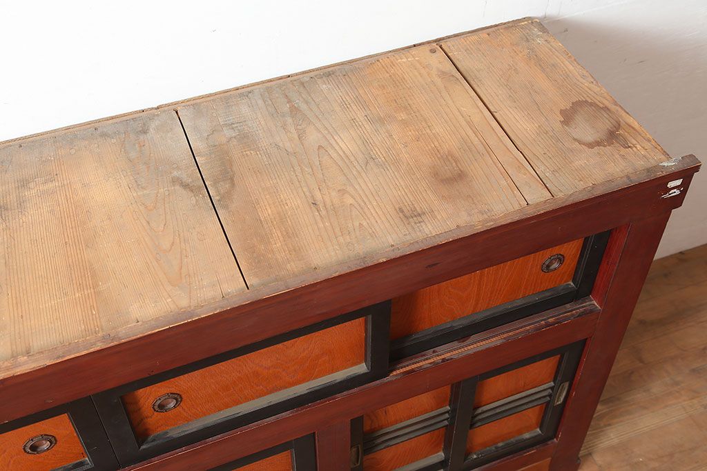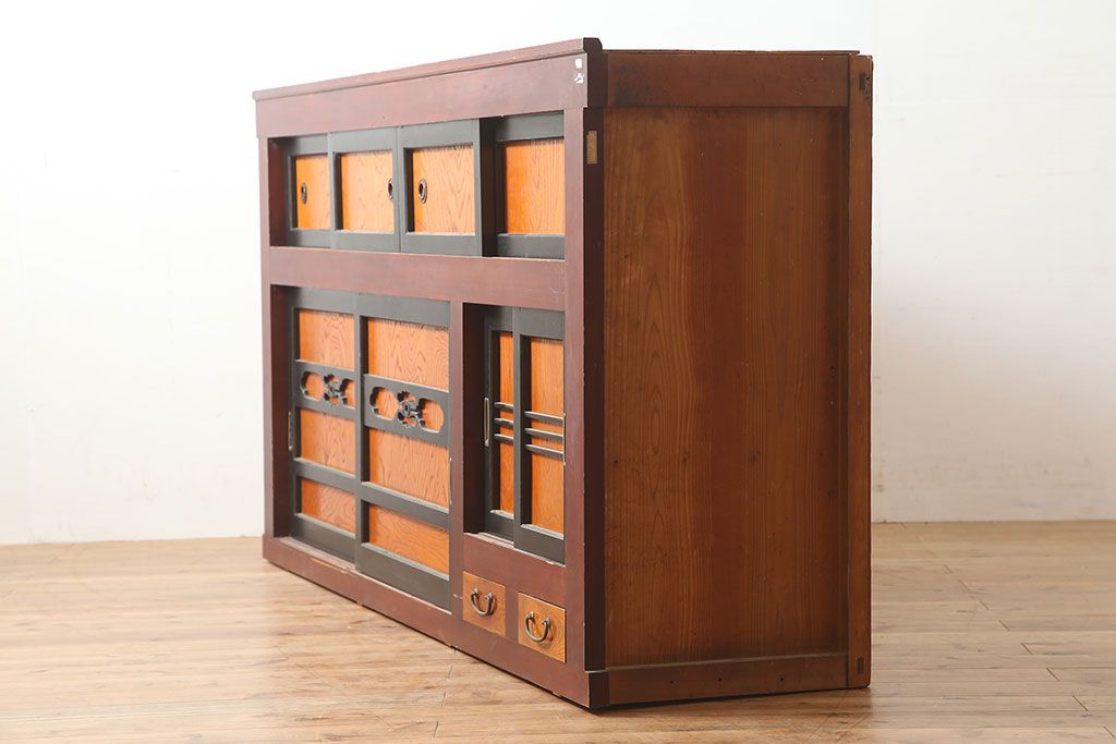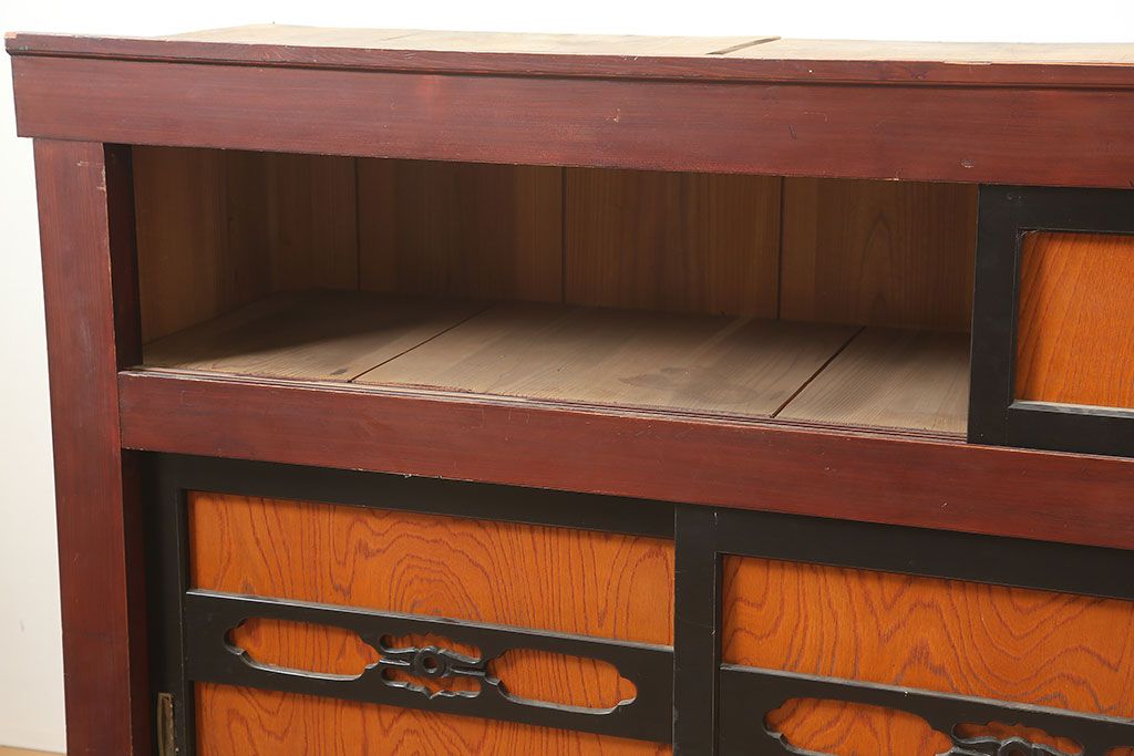 和箪笥> 水屋箪笥 > 【簡易リペア限定品】和製アンティーク 昭和初期 純和風のお部屋にぴったりの水屋箪笥・上段(重ね箪笥、収納棚、戸棚、食器棚)(R-046268)