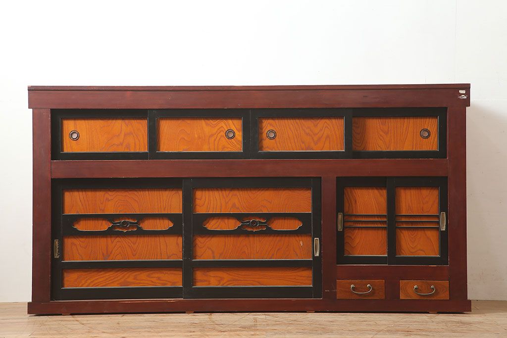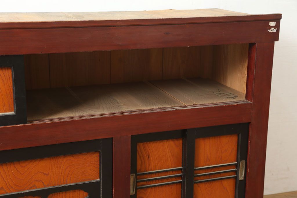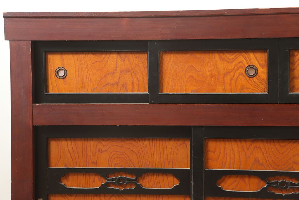キャビネット・戸棚> 食器棚・カップボード > 【簡易リペア限定品】和製アンティーク 昭和初期 純和風のお部屋にぴったりの水屋箪笥・上段(重ね箪笥、収納棚、戸棚、食器棚)(R-046268)