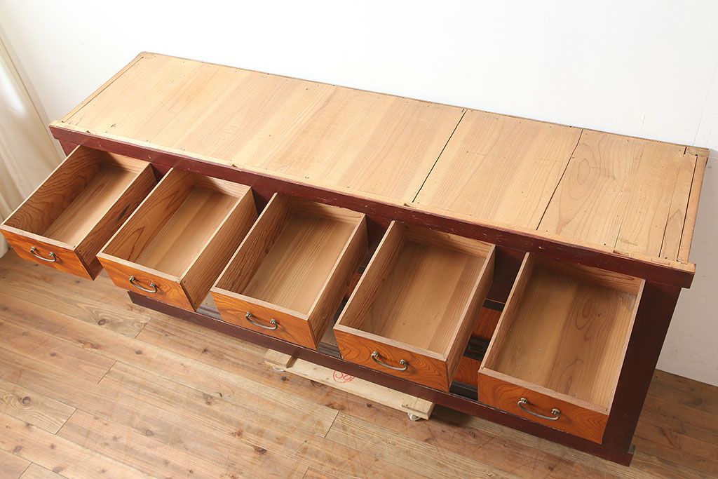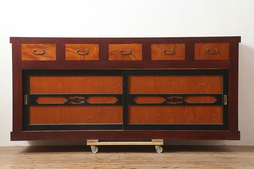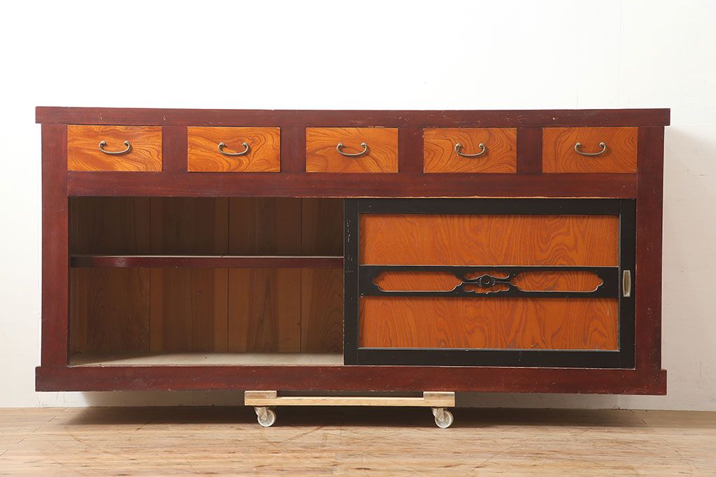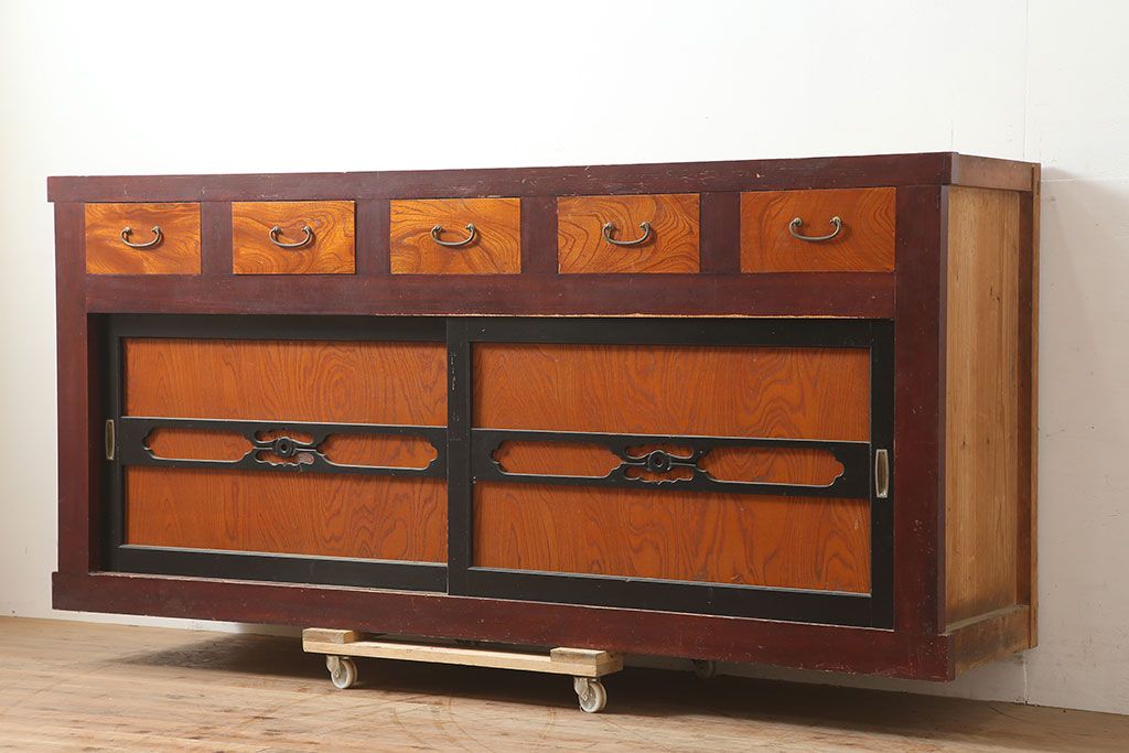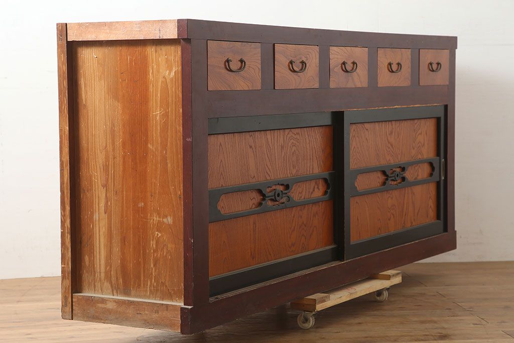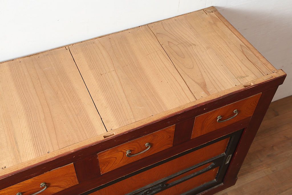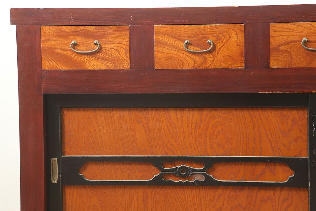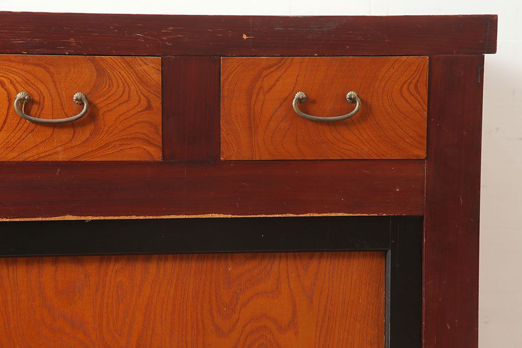 キャビネット・戸棚> 食器棚・カップボード > 【簡易リペア限定品】和製アンティーク 昭和初期 純和風のお部屋にぴったりの水屋箪笥・下段(重ね箪笥、収納棚、戸棚、食器棚)(R-046269)