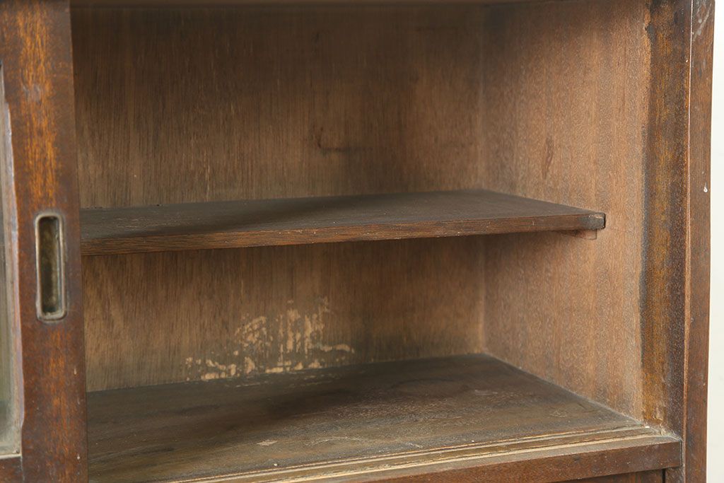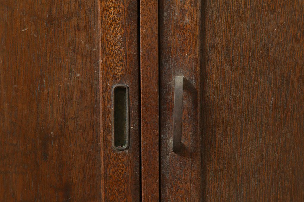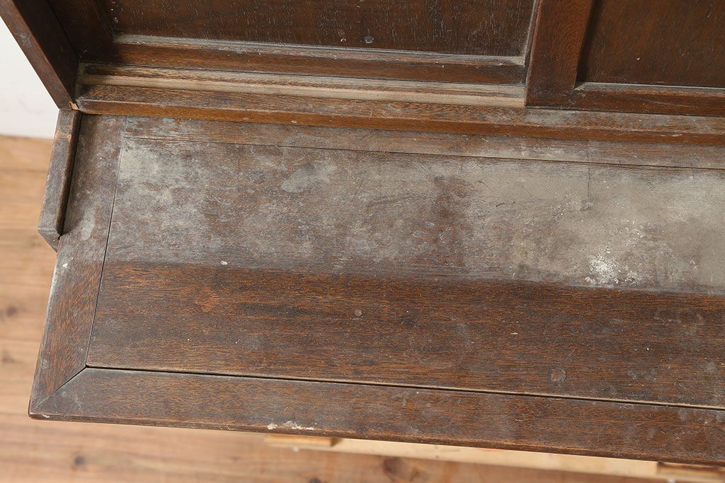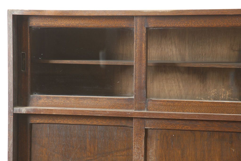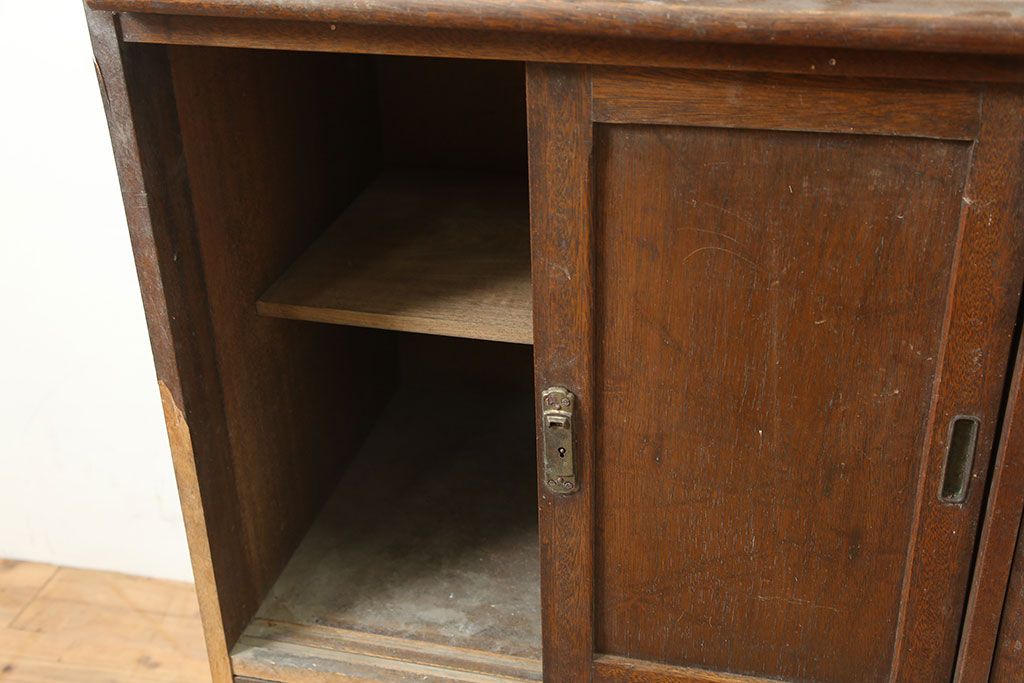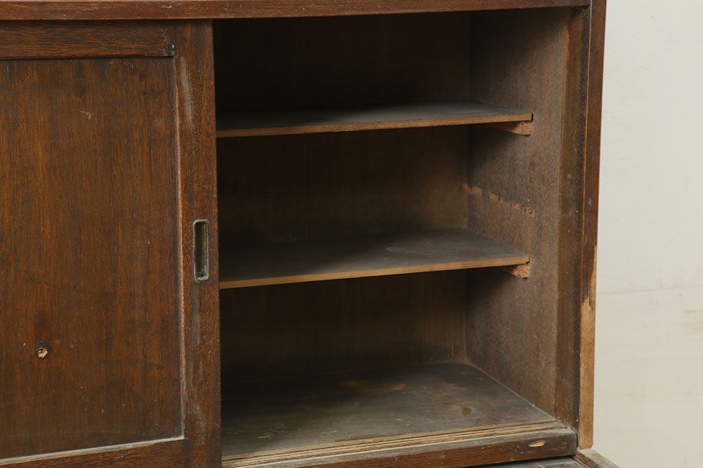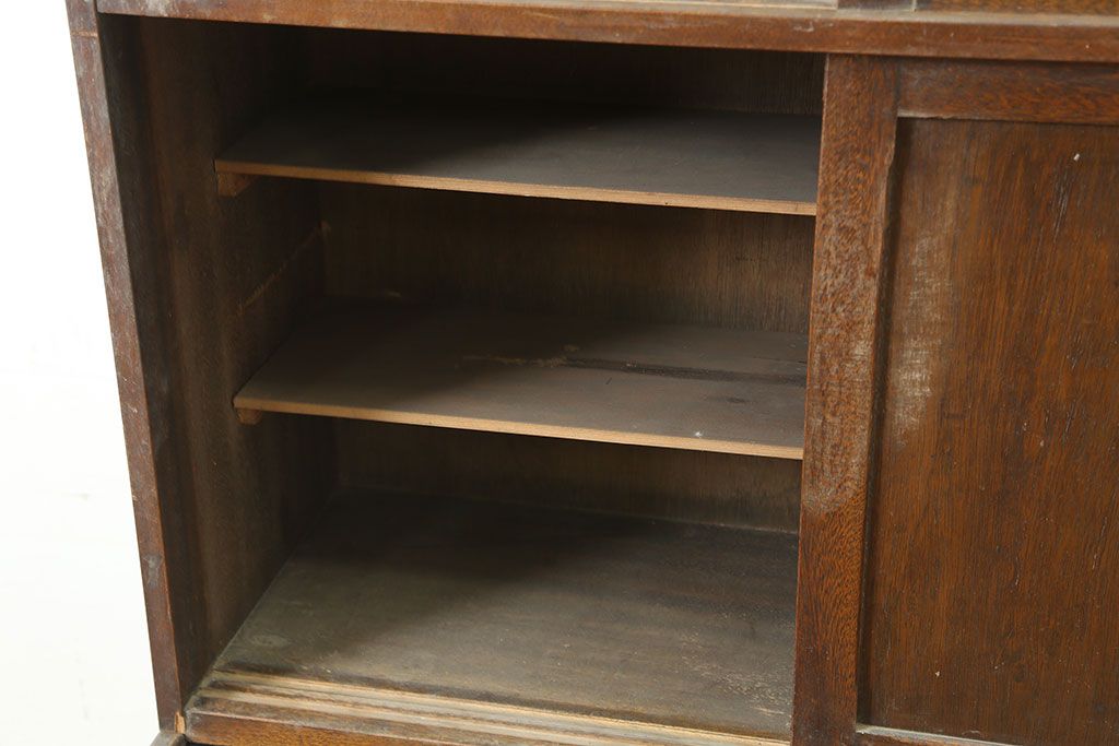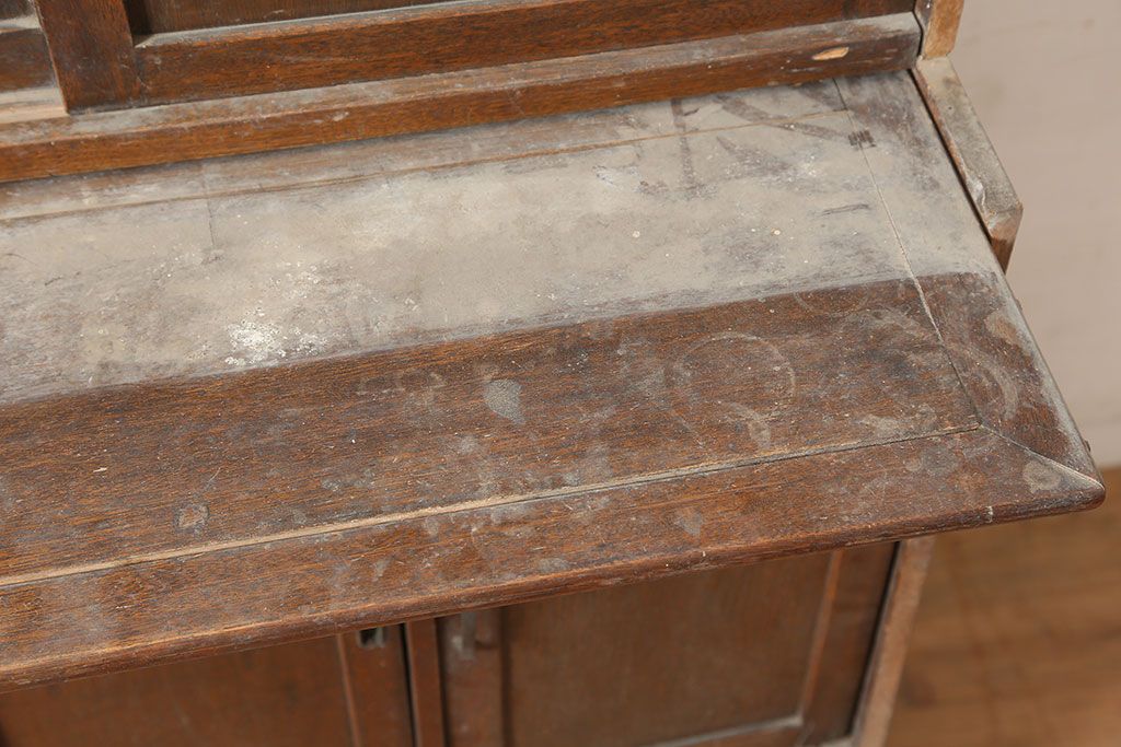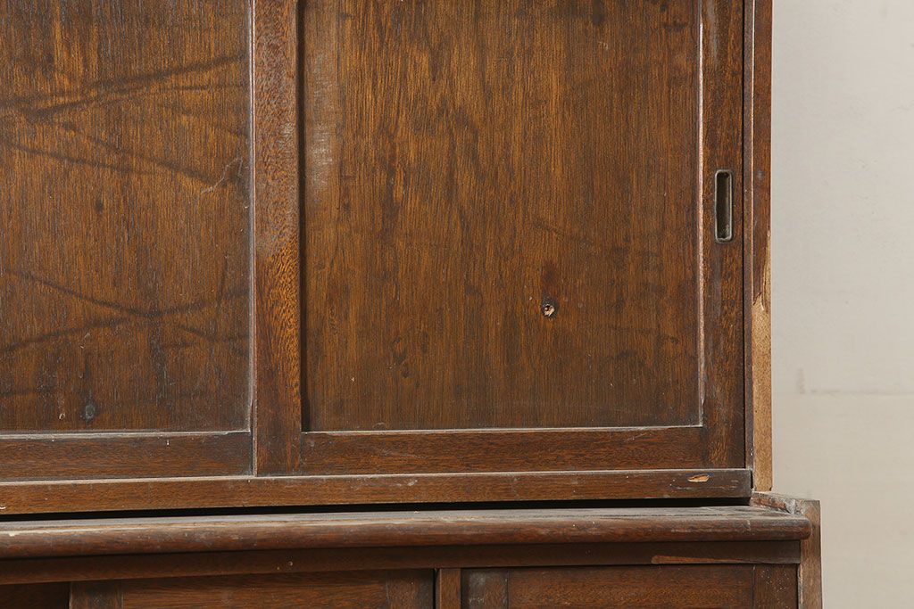 和製アンティーク 昭和中期 ワラン材 作業台付き たっぷり収納できる昭和レトロな木製食器棚(カップボード、収納棚、戸棚)(R-039888)です。