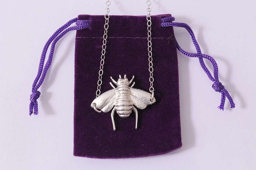 ヴィンテージアクセサリー シルバー 蜂モチーフのネックレス(ハチ、ペンダント、ビンテージ)(R-044704)