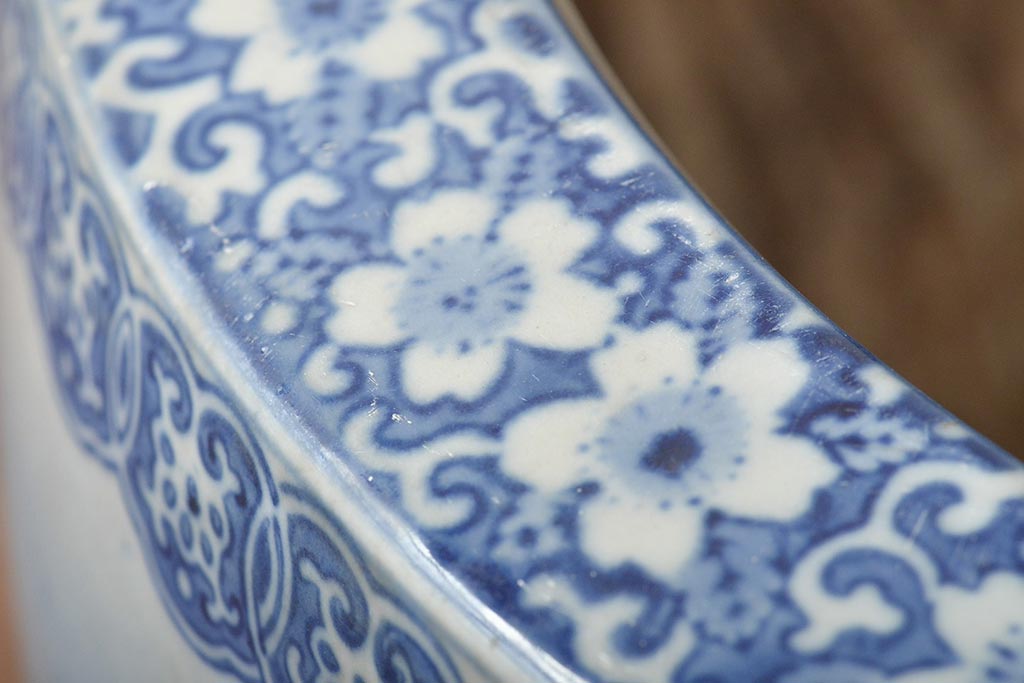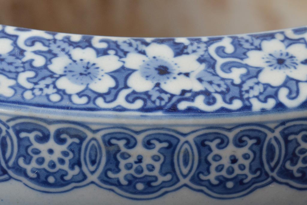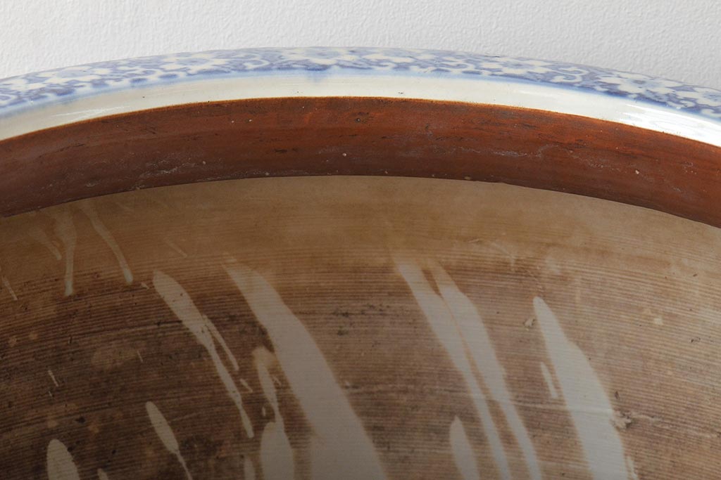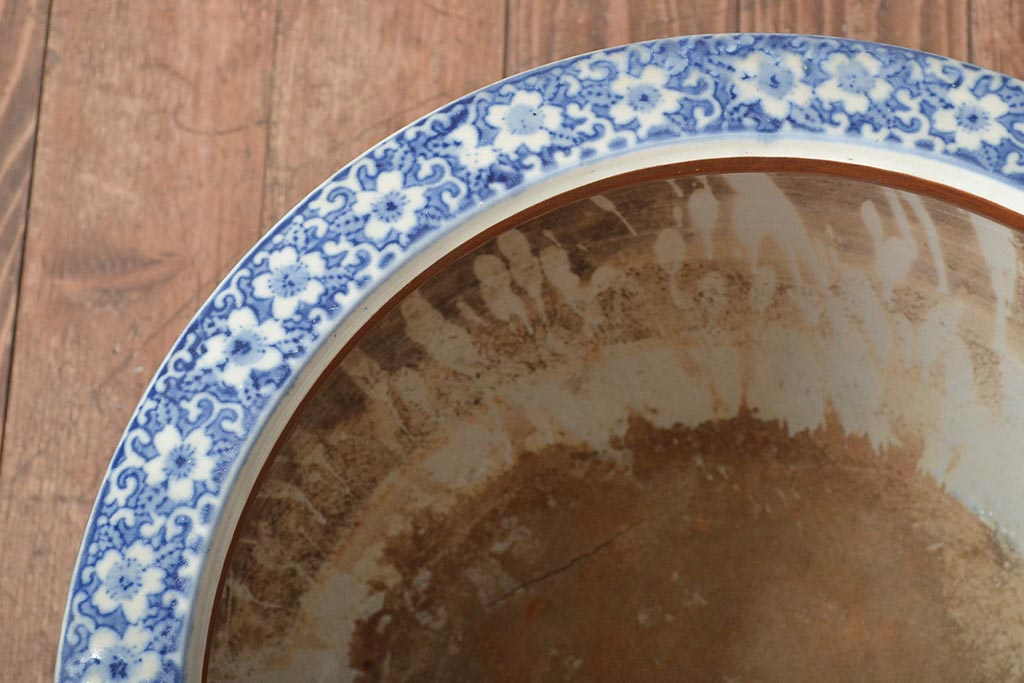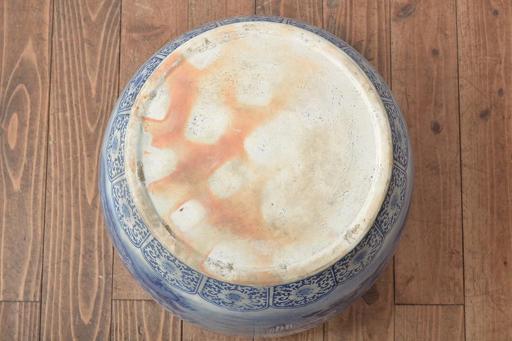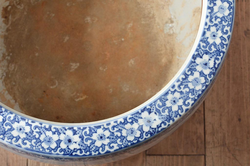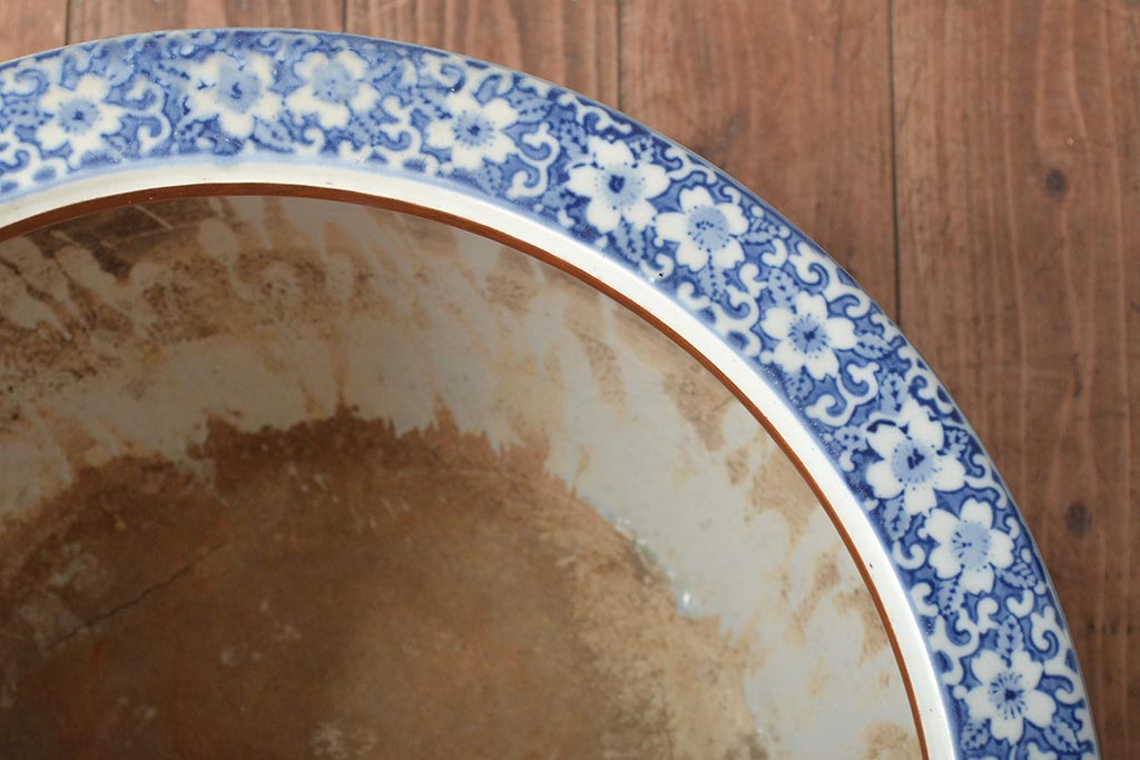 火鉢> 瀬戸火鉢 > 大正〜昭和初期 富士山・松・山水・桜の図 染付 瀬戸火鉢(鉢カバー、傘立て)(R-046419)