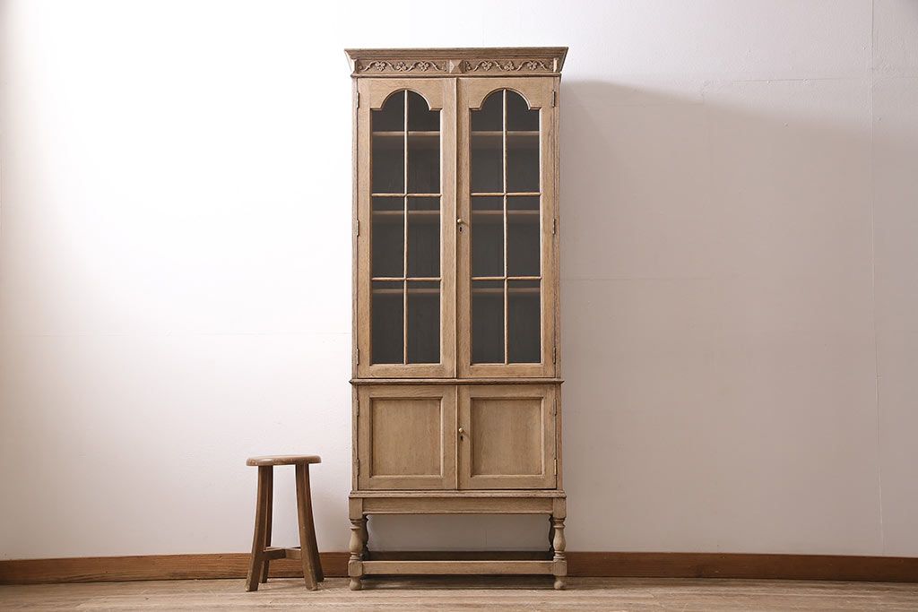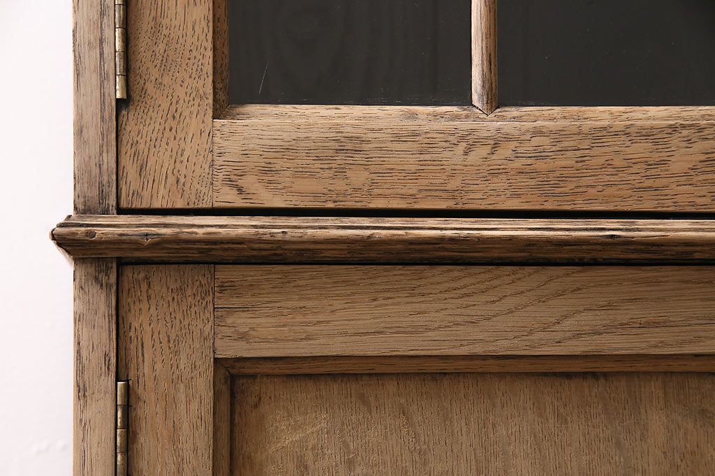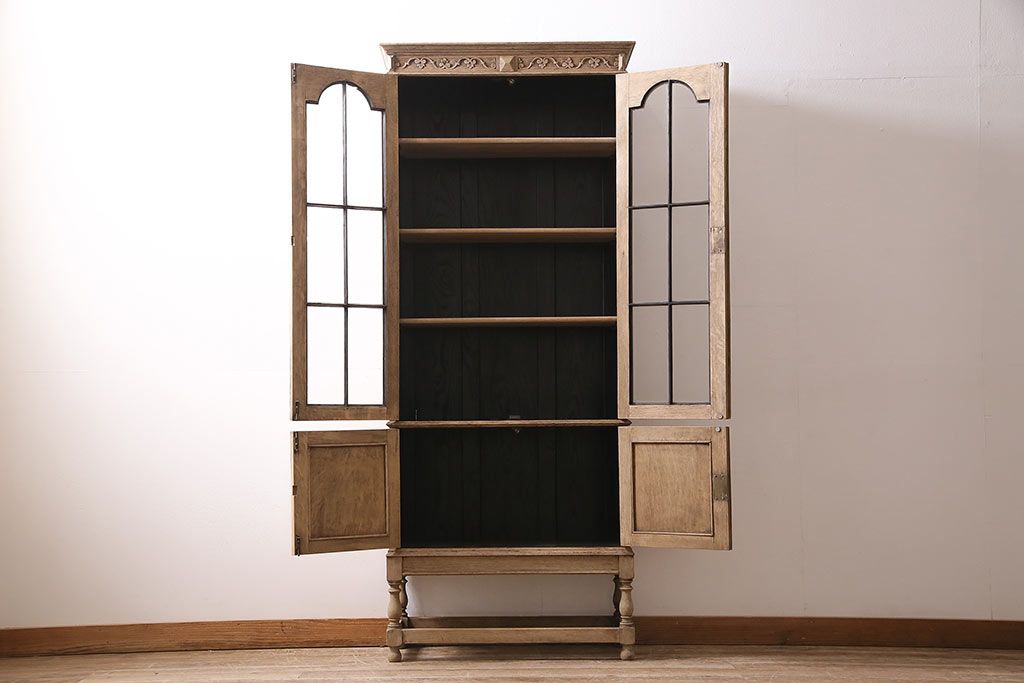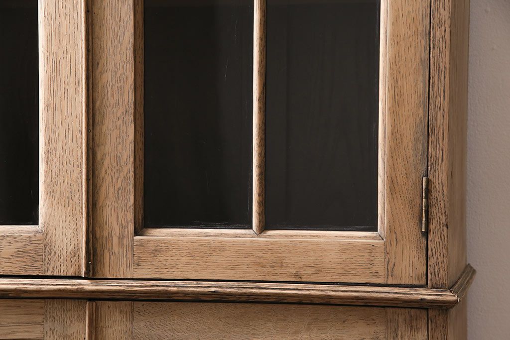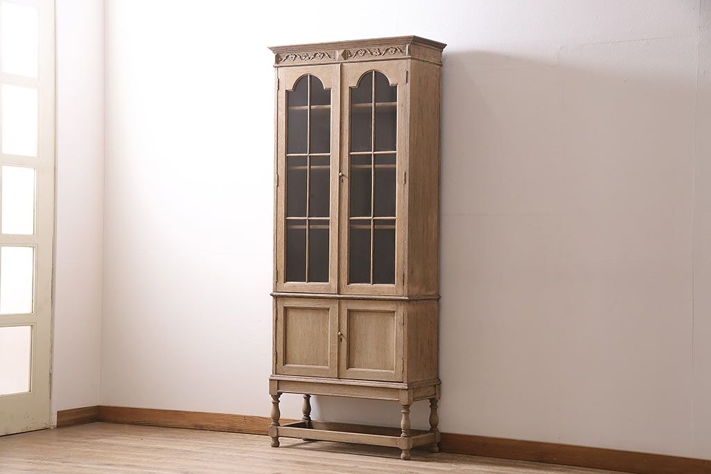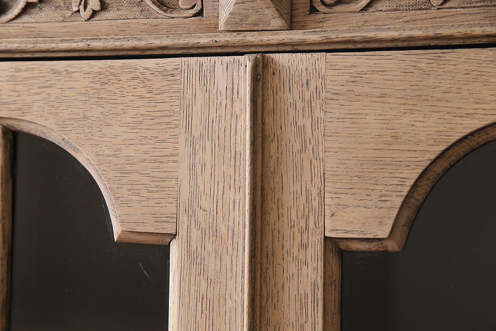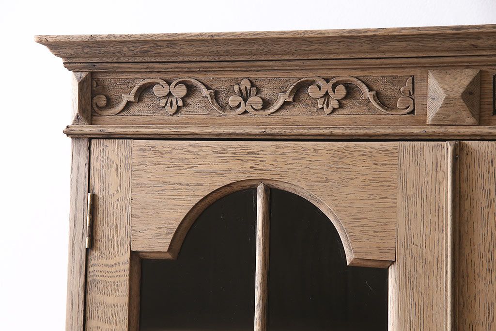 アンティーク家具 ストリップド(剥離) オーク材 装飾がおしゃれなキャビネット(本箱、食器棚、カップボード)(R-046446)