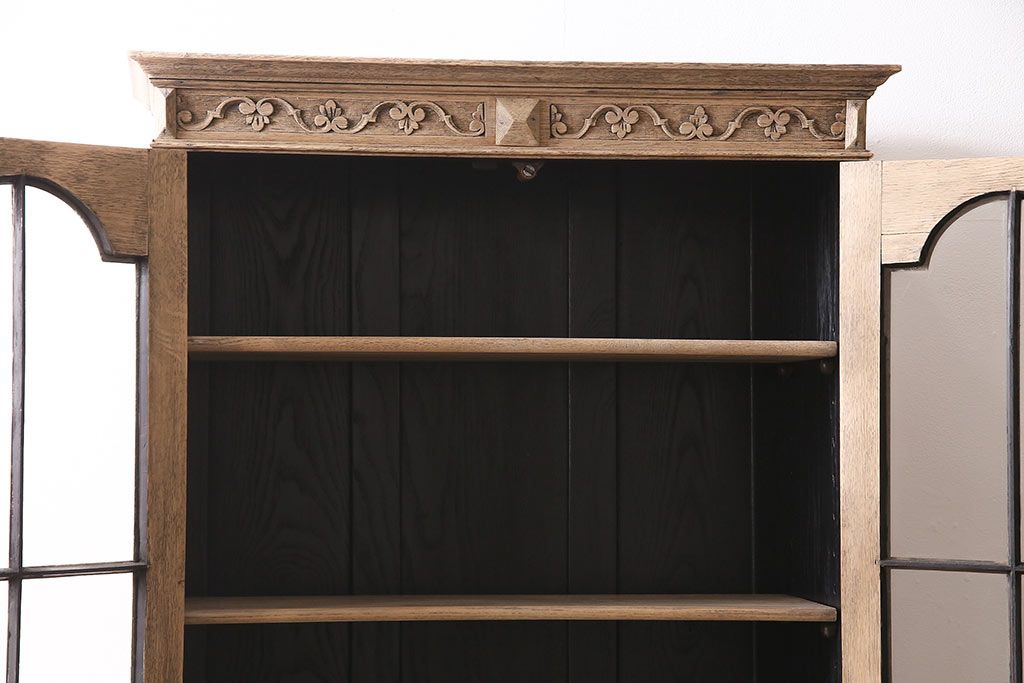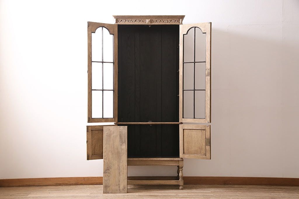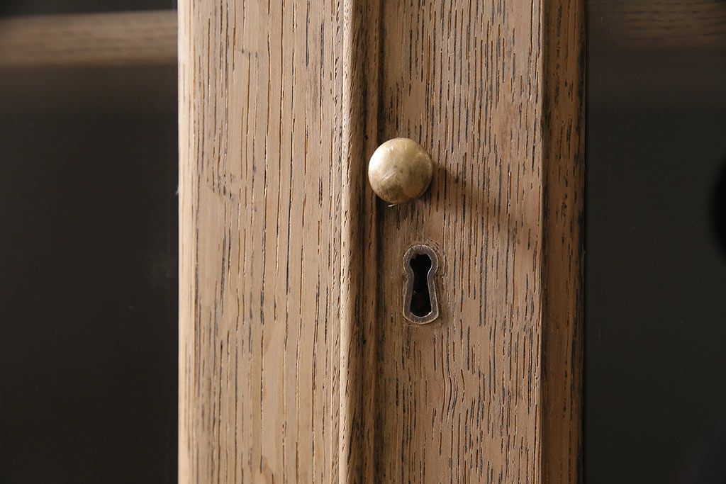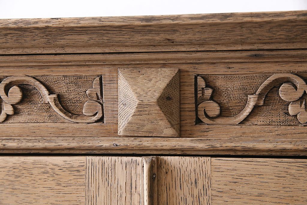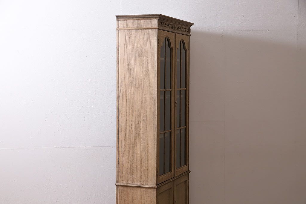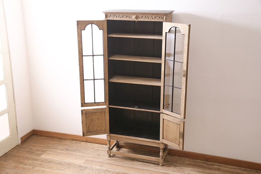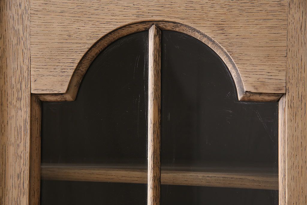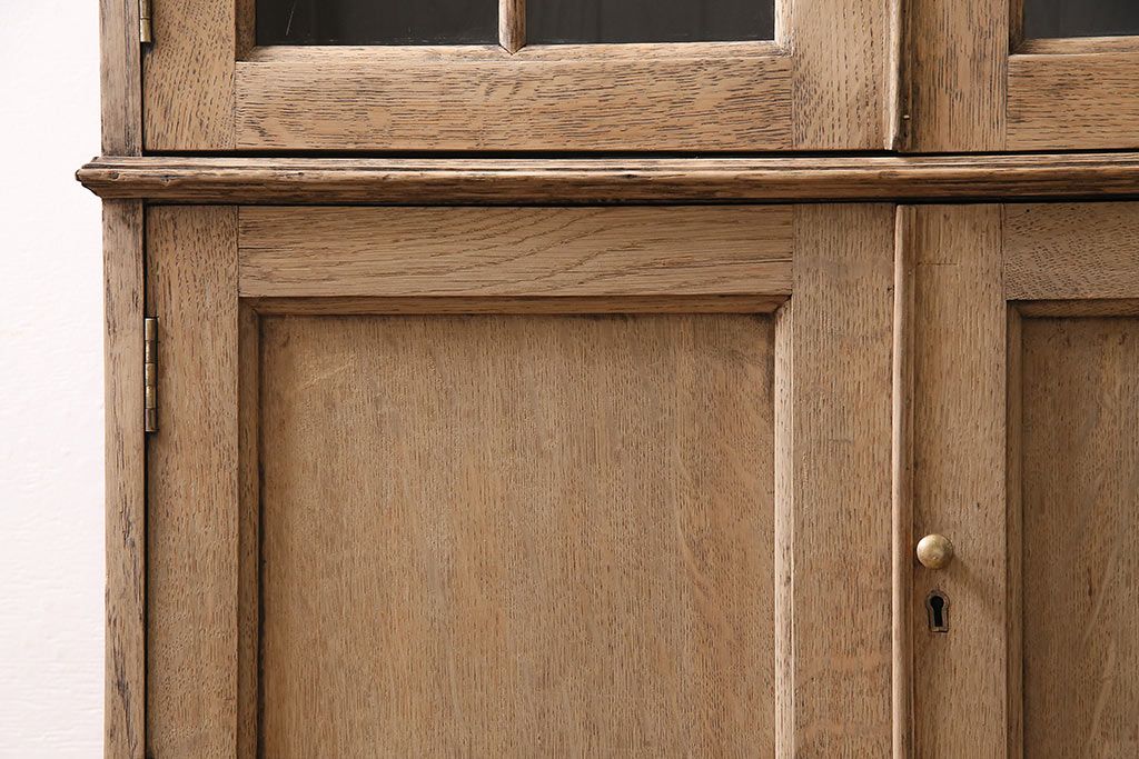 アンティーク家具 ストリップド(剥離) オーク材 装飾がおしゃれなキャビネット(本箱、食器棚、カップボード)(R-046446)