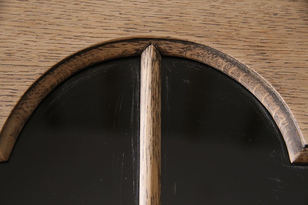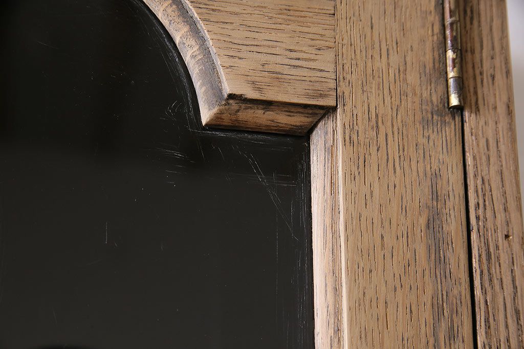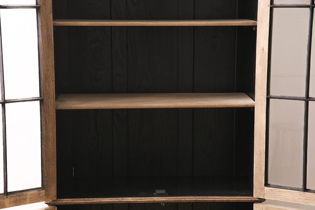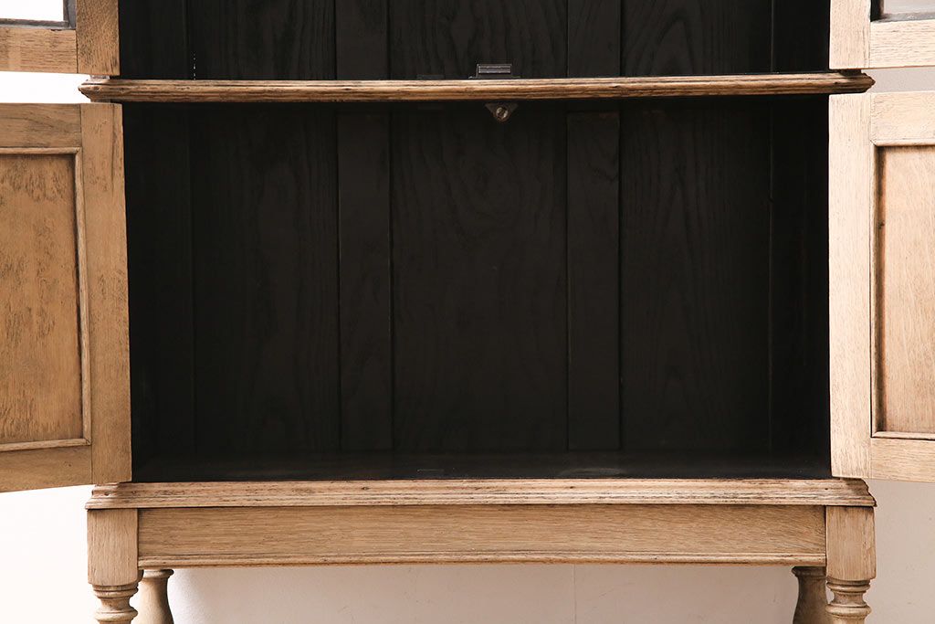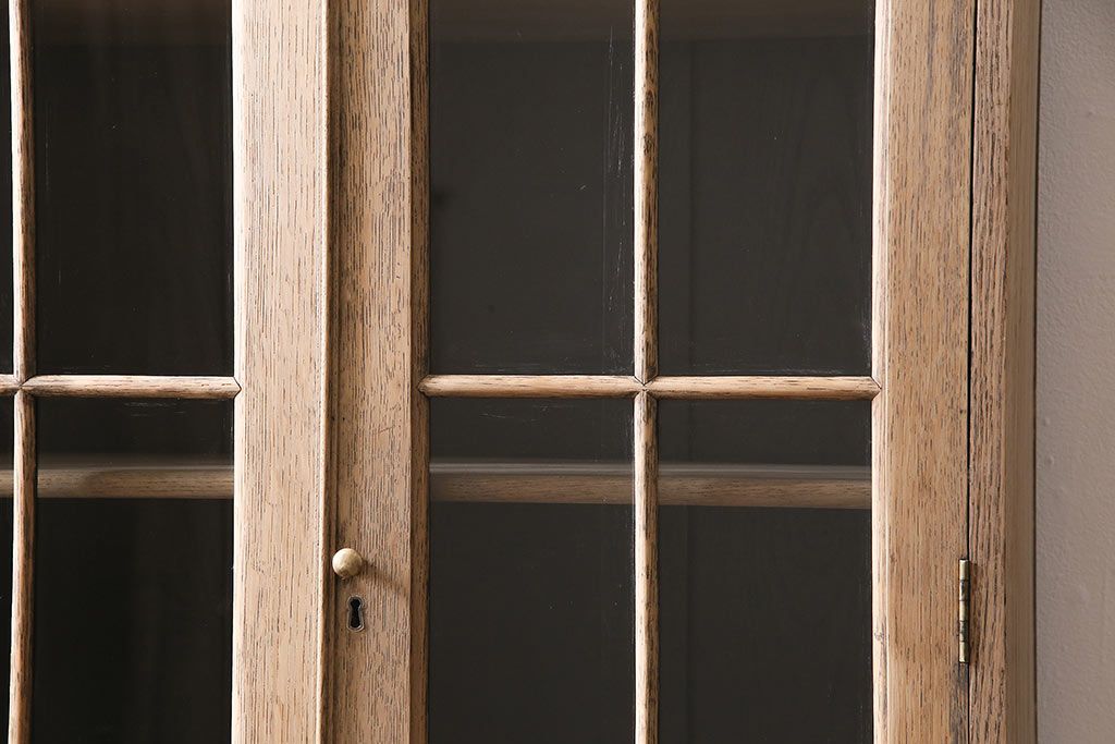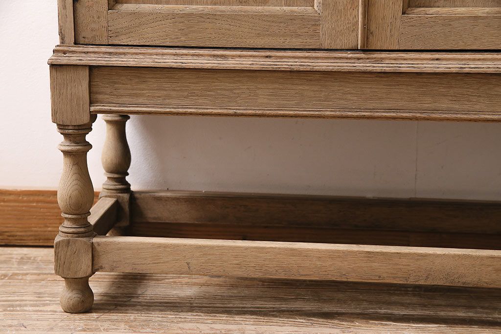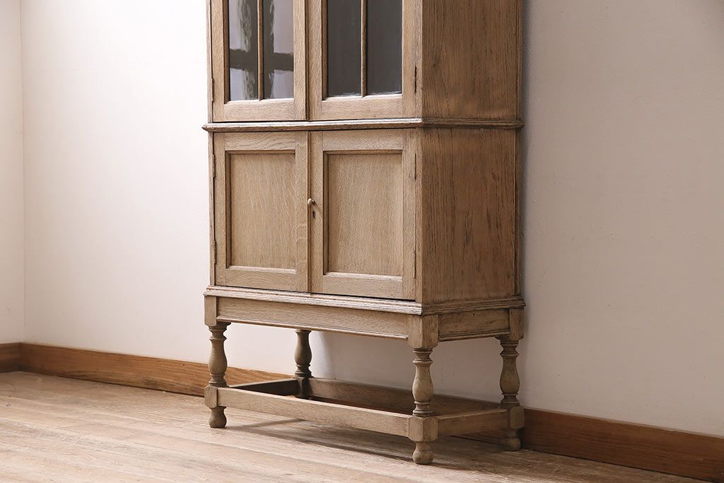 アンティーク家具 ストリップド(剥離) オーク材 装飾がおしゃれなキャビネット(本箱、食器棚、カップボード)(R-046446)