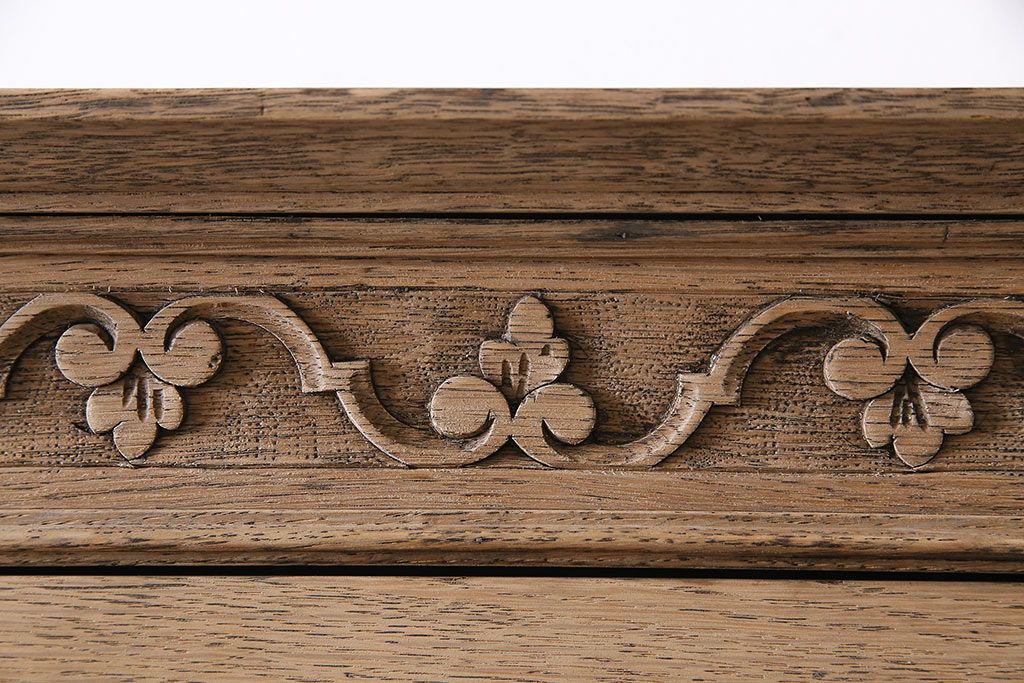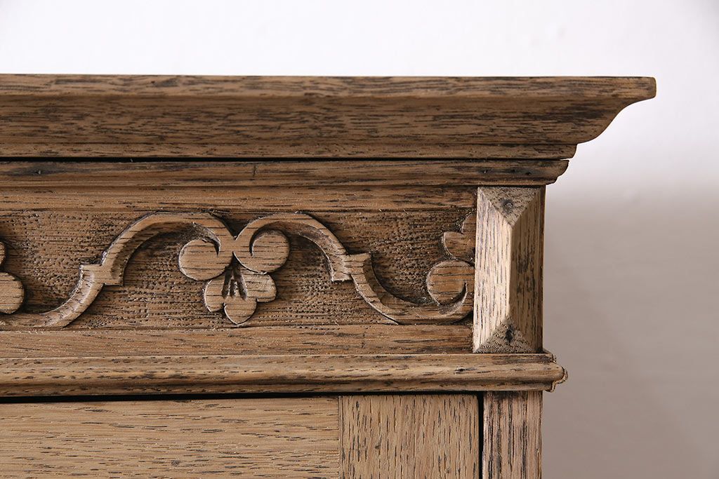 アンティーク家具 ストリップド(剥離) オーク材 装飾がおしゃれなキャビネット(本箱、食器棚、カップボード)(R-046446)です。