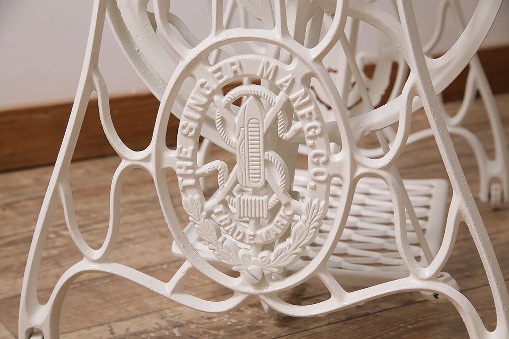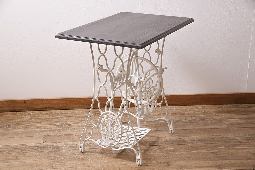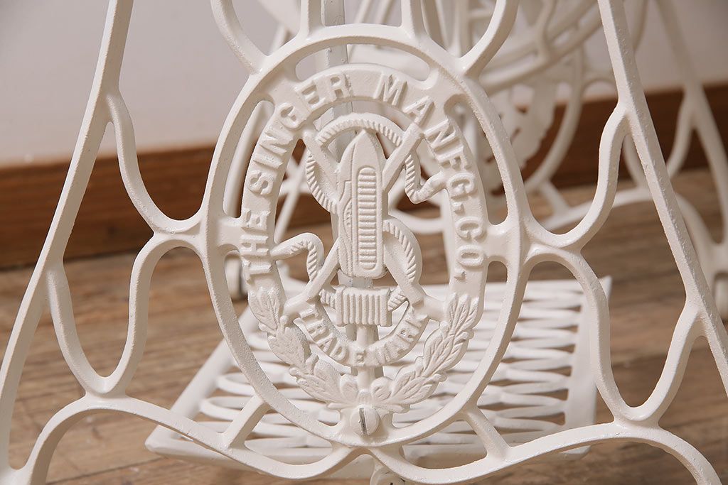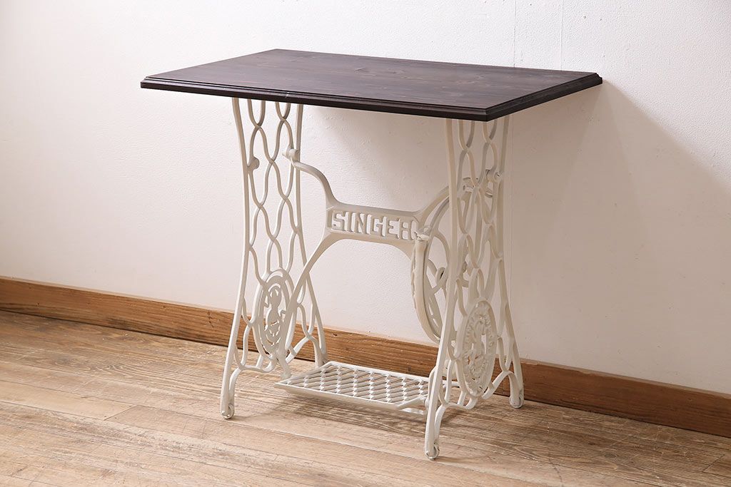 テーブル> ミシンテーブル > リメイク家具 シンガー社(SINGER) ヒノキ材 ナチュラルなペイントミシンテーブル(シンガーミシン、サイドテーブル、カフェテーブル、ミシン台)(R-046362)