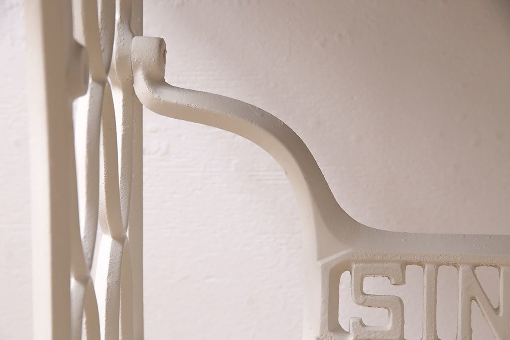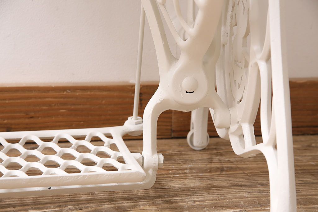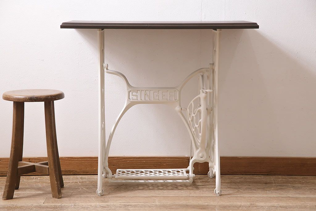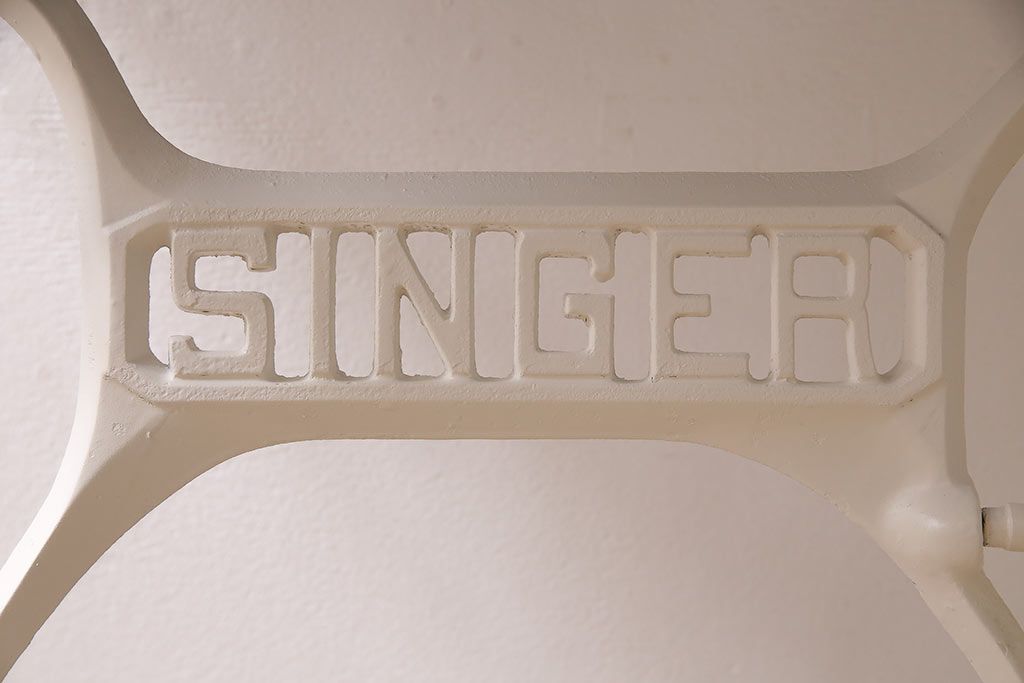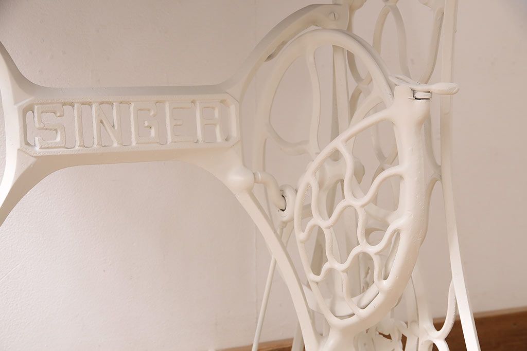テーブル> ミシンテーブル > リメイク家具 シンガー社(SINGER) ヒノキ材 ナチュラルなペイントミシンテーブル(シンガーミシン、サイドテーブル、カフェテーブル、ミシン台)(R-046362)