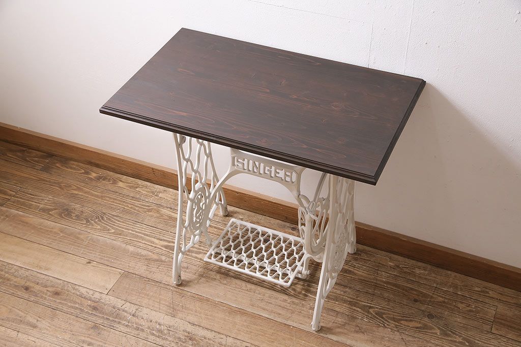 テーブル> カフェテーブル・コーヒーテーブル > リメイク家具 シンガー社(SINGER) ヒノキ材 ナチュラルなペイントミシンテーブル(シンガーミシン、サイドテーブル、カフェテーブル、ミシン台)(R-046362)