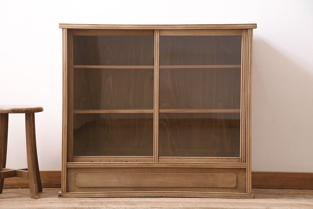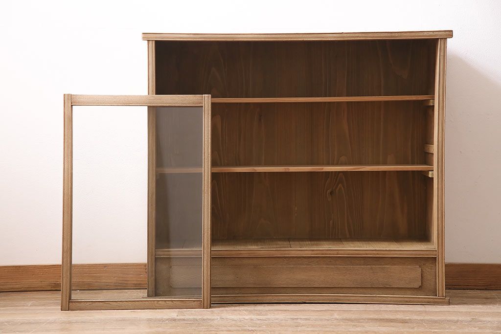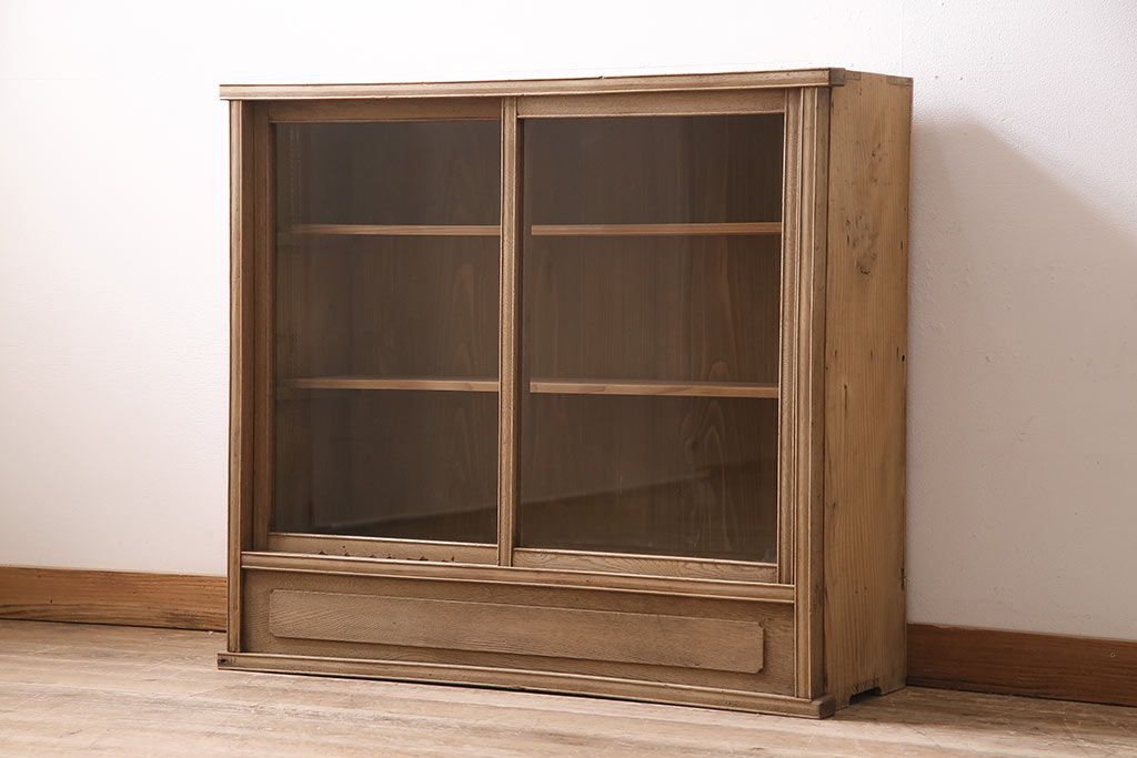 アンティーク家具 前面栗材 品の良い意匠が魅力的なガラス戸の戸棚(収納棚、飾り棚、キャビネット)(R-046427)