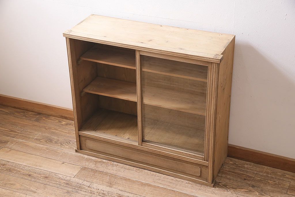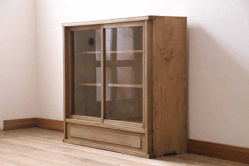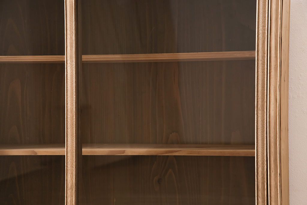 アンティーク家具 前面栗材 品の良い意匠が魅力的なガラス戸の戸棚(収納棚、飾り棚、キャビネット)(R-046427)です。