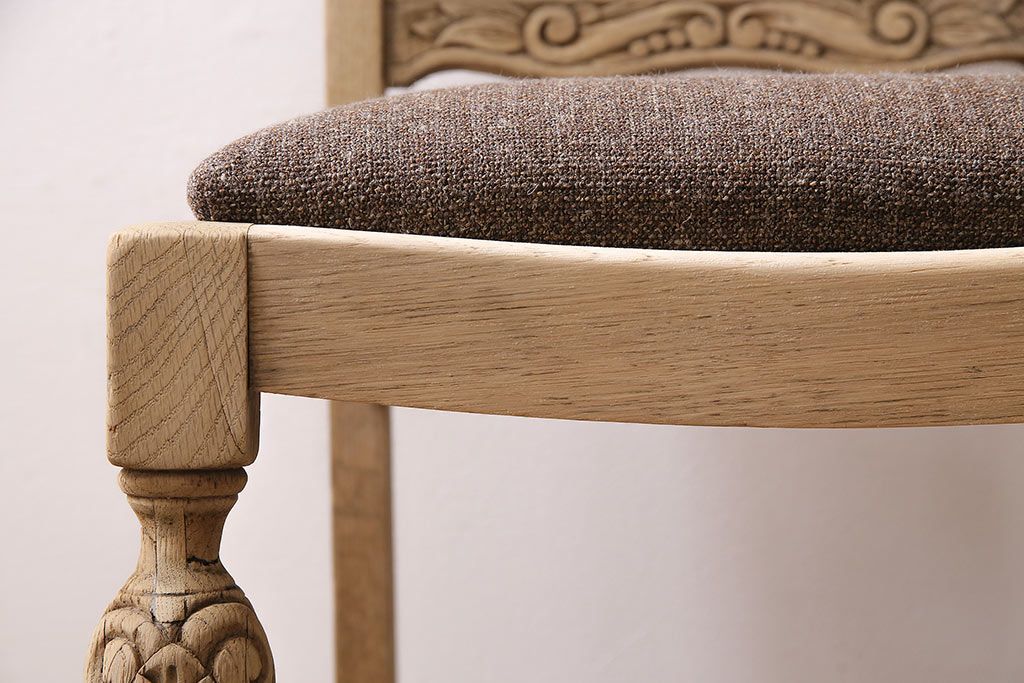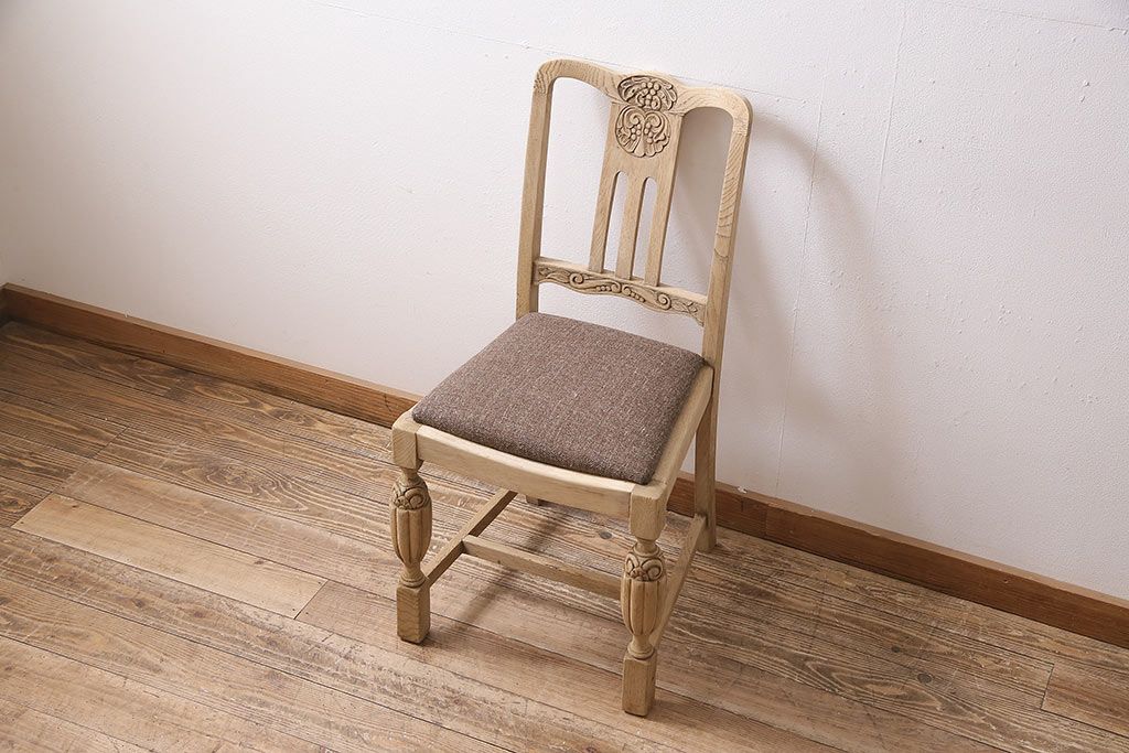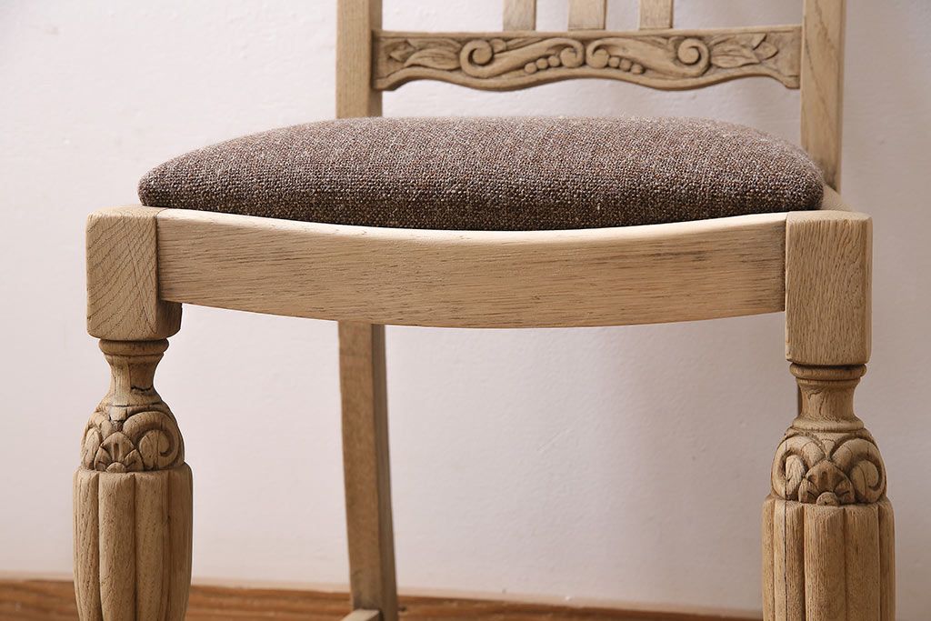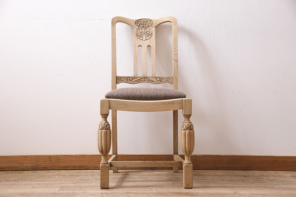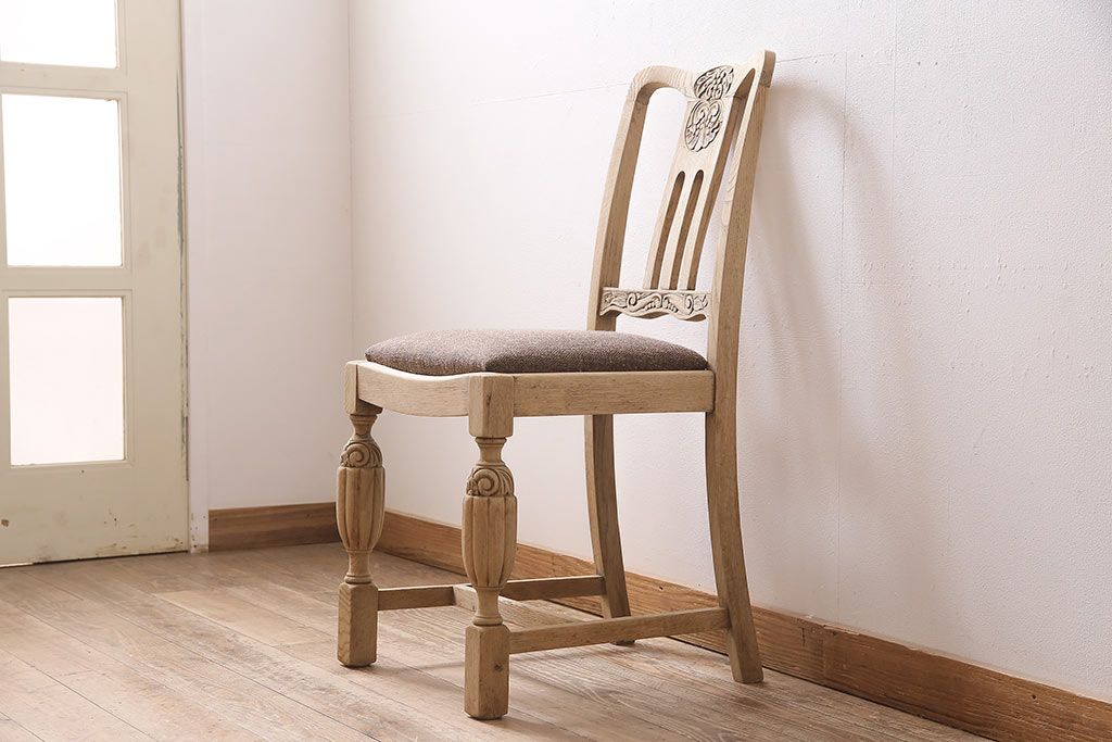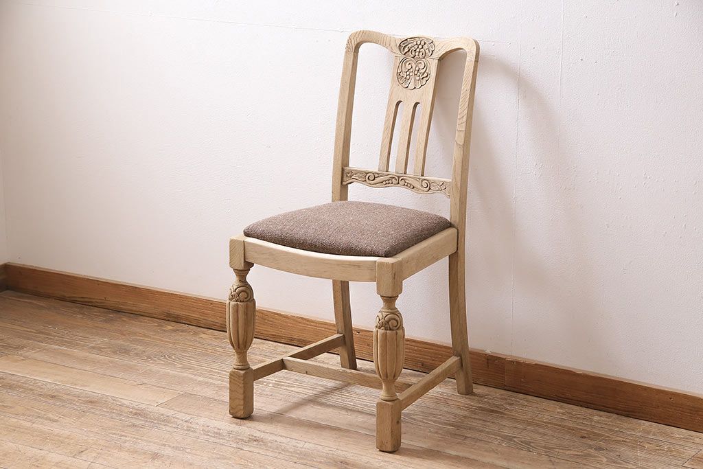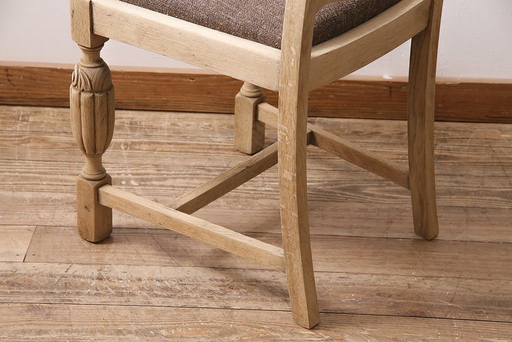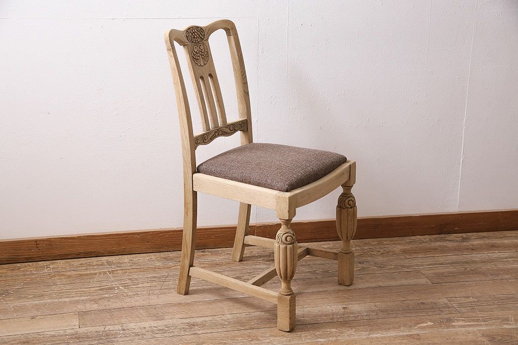 ラフジュ工房> 椅子・ベンチ> ダイニングチェア > アンティーク家具 イギリスアンティーク ストリップド(剥離) オーク材 バルボスレッグのダイニングチェア(椅子)(R-046426)