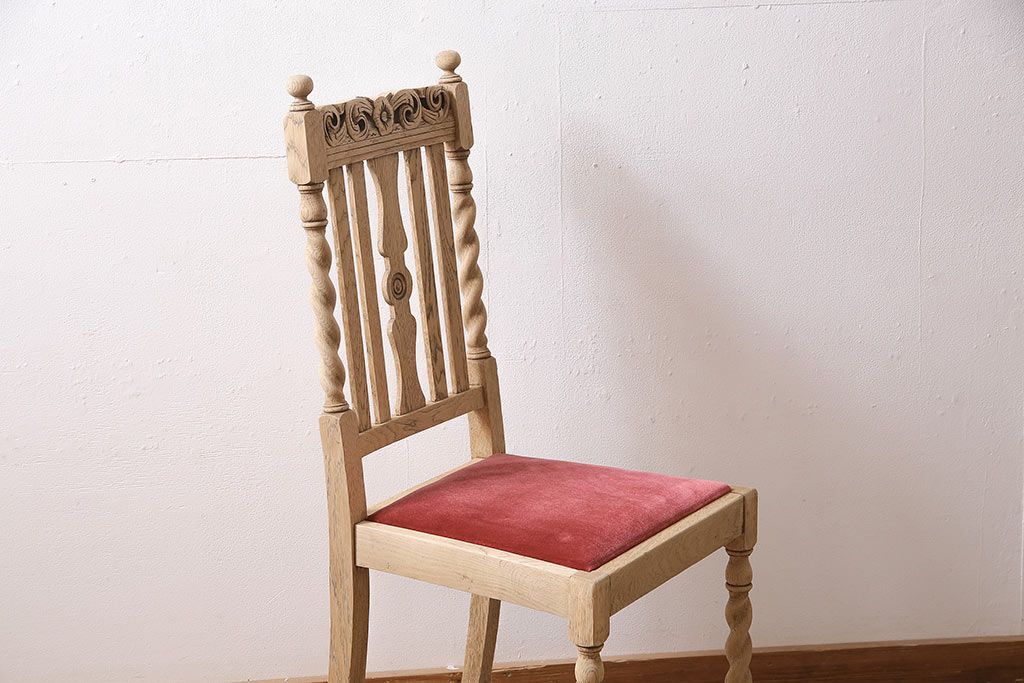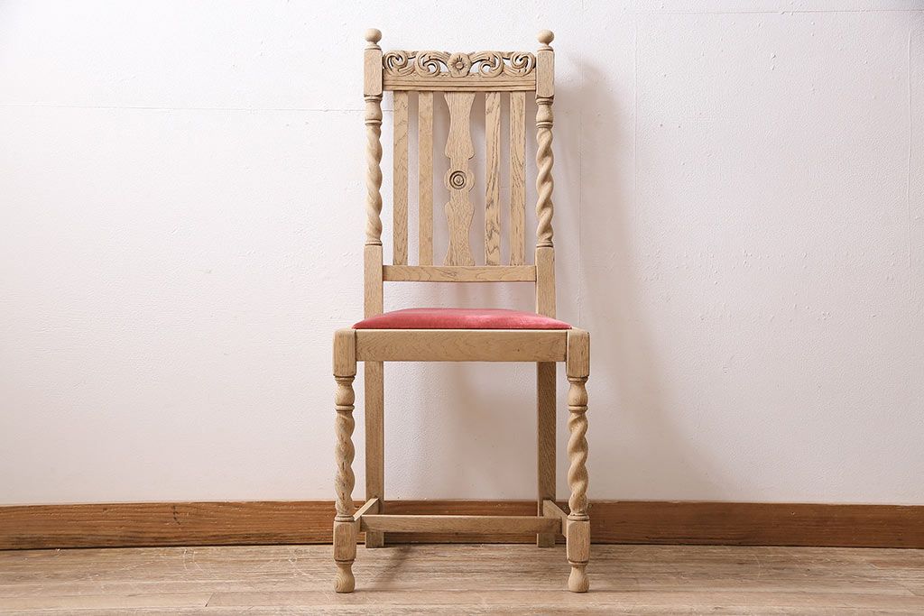 アンティーク家具 イギリスアンティーク ストリップド(剥離) オーク材 ツイストレッグのダイニングチェア(椅子)(R-046428)