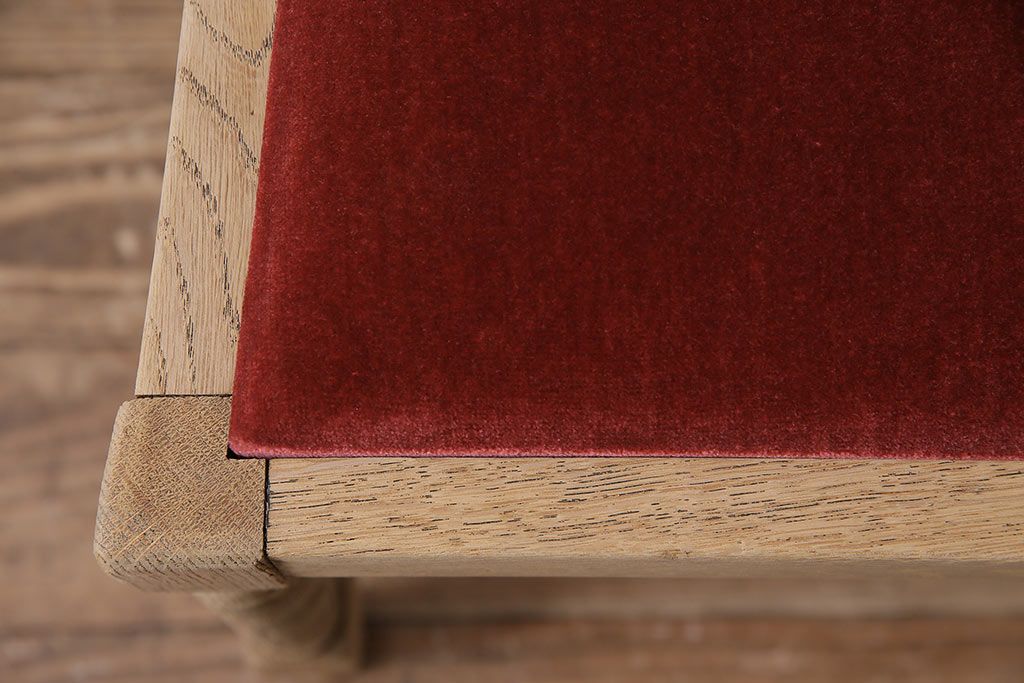 座面生地とクッション(座面内スポンジ)は当店にて張り替えておりますので、しっかりとしております。